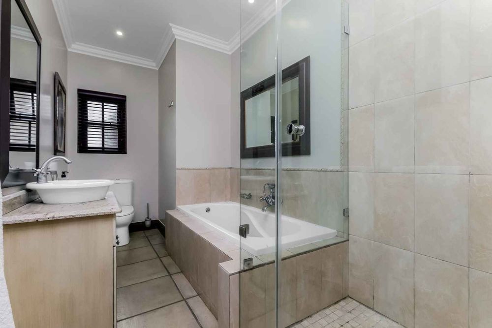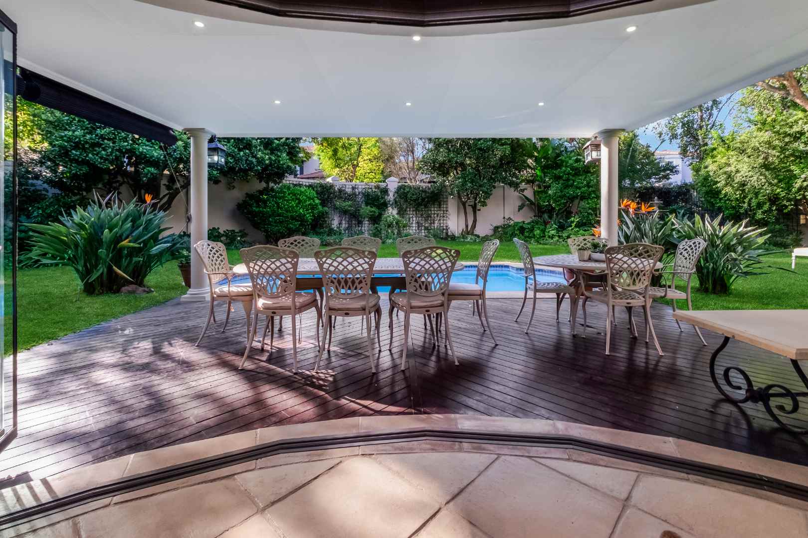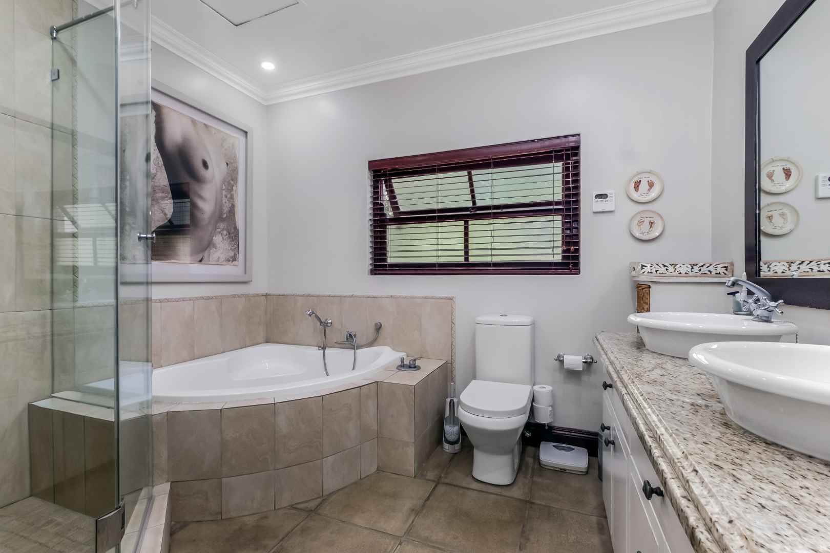 For those who require a quiet work space, there is a private study downstairs and, a guest cloakroom. The 3 garages lead straight into the house and there is additional space for a trailer or golf cart in the garage. The solar system is rented from Go Solar and there are 3 gas geysers. This beautiful home extends to the outdoors with the lovely garden space all around the home. The staff room is 5 star with a kitchenette and bathroom.