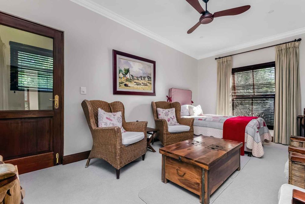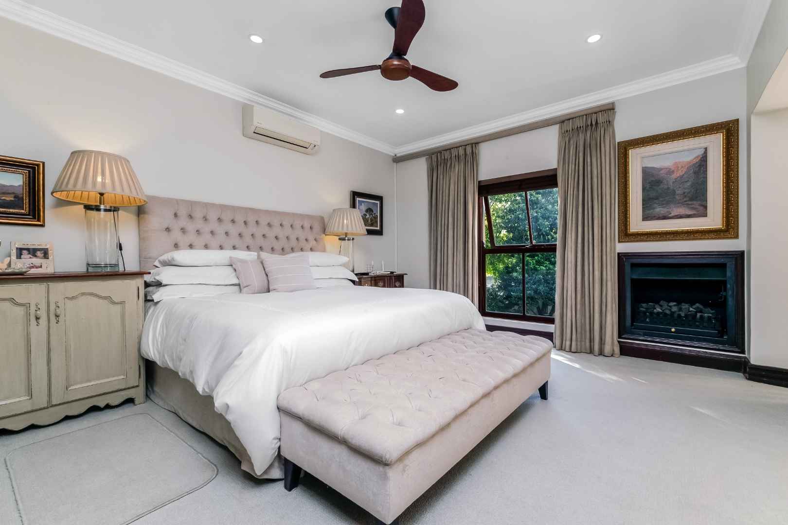 The kitchen is very welcoming, with a central fireplace and, a large eat in area to enjoy family gatherings. The central island is great for prepping and, there is a big walk-in pantry and separate scullery. The doors onto the back garden from the kitchen add to the charm. The family room shares the fireplace with the kitchen, and there is a French door to the garden. This is a very child friendly home as there is lovely TV lounge with a built-in unit next to the kitchen.