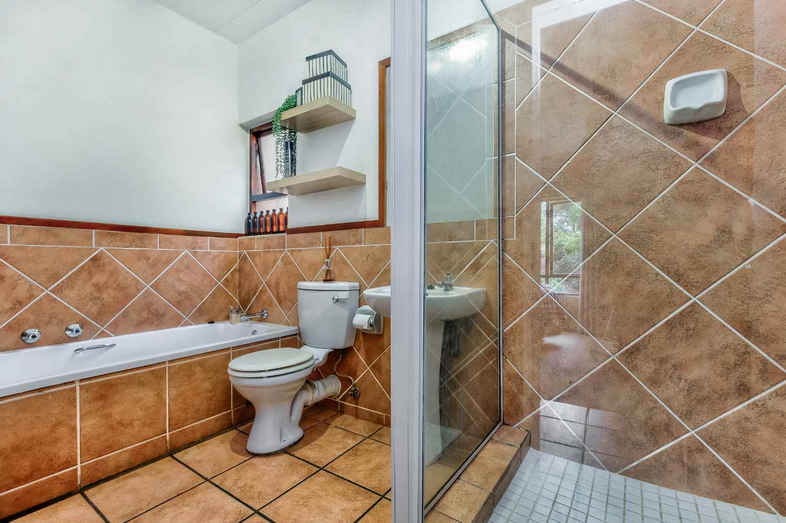 The Bedroom is practical and has sufficient Cupboard space. The view from the Bedroom makes you feel like you’re up in the trees.