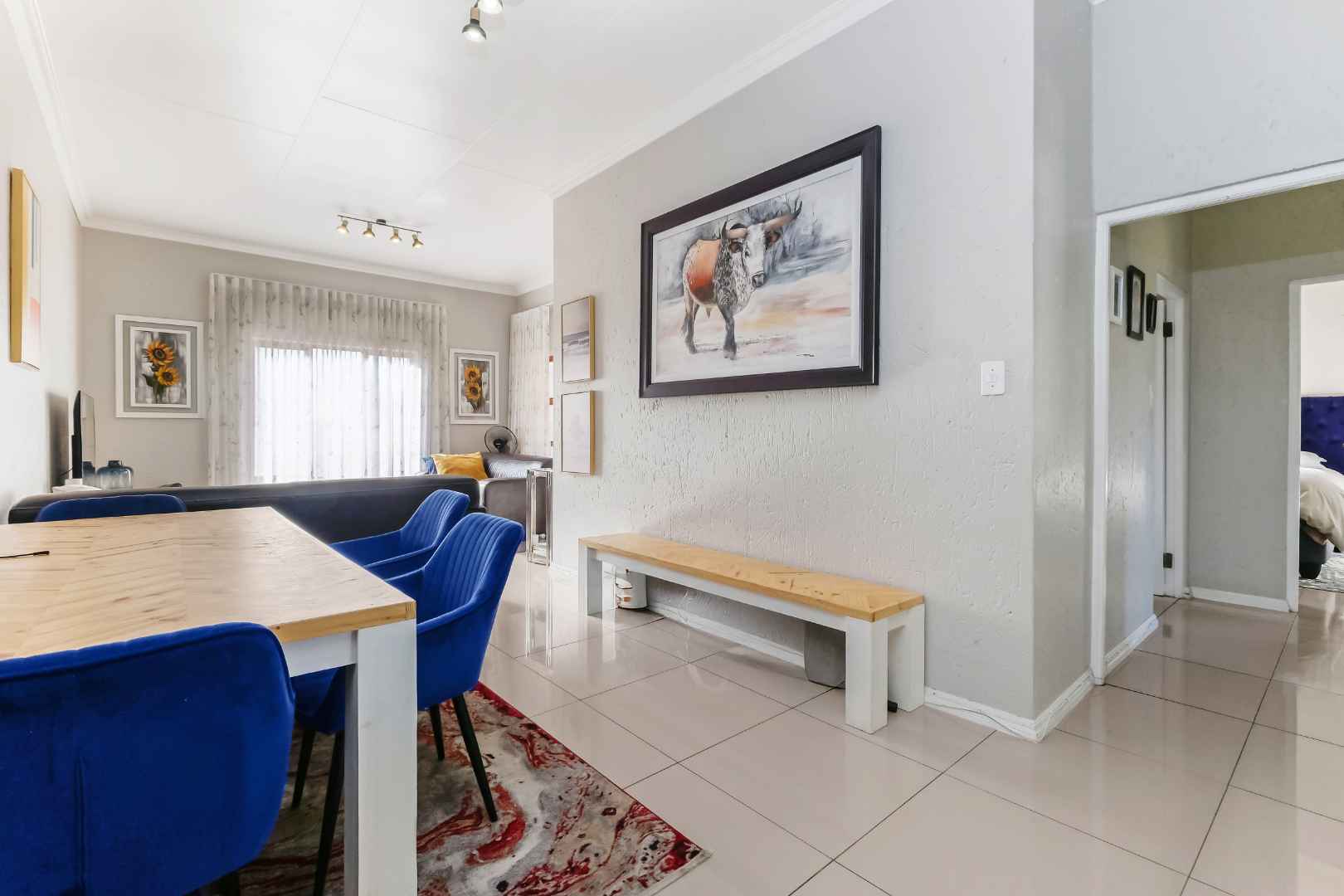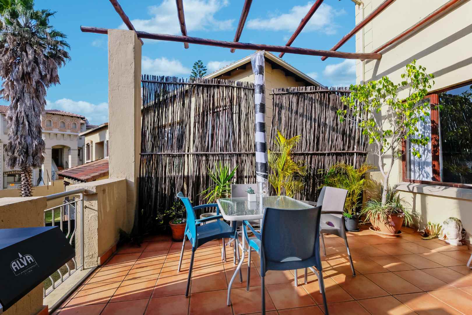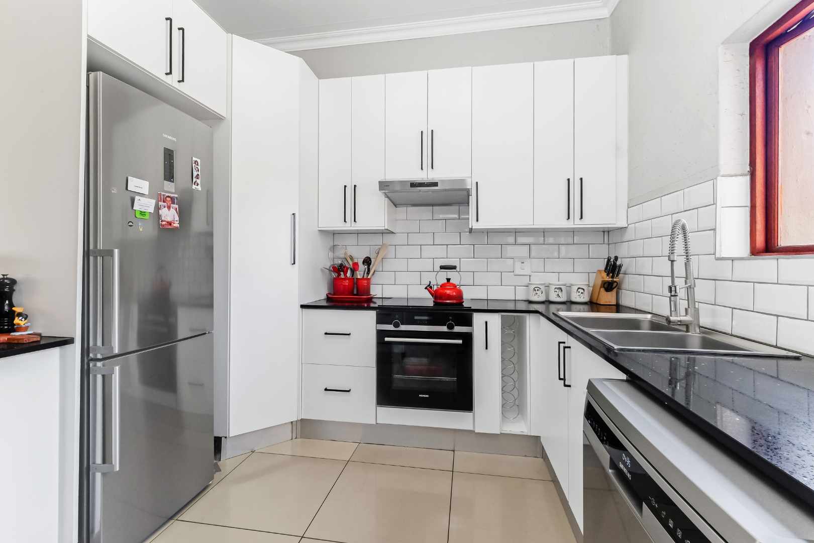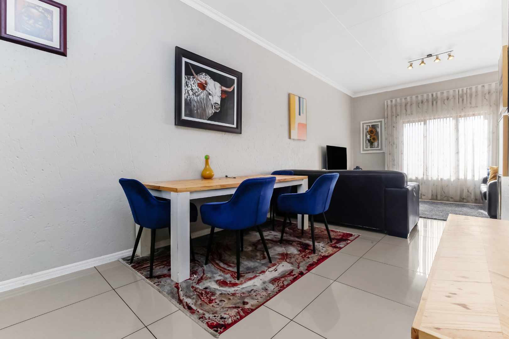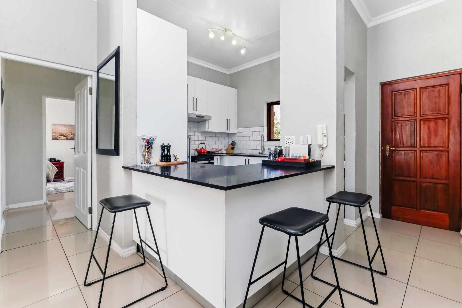 Situated in a sought after secure estate in Douglasdale this light-filled home offers an airy , open feel thanks to its high ceilings and spacious design. The expansive living area seamlessly flows onto a large balcony – the perfect setting for entertaining or relaxing. The well-appointed modern kitchen features an electric hob, granite countertops, a breakfast bar, ample cupboard storage and space for two appliances.