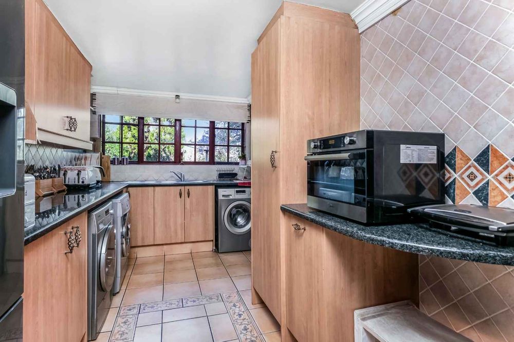 This secure residence offers the following: Double automated garage with direct access into the kitchen scullery, staff accommodation which can also be utilised as a 5th bedroom option, storage space, a generator that can assist during power outages, a gas geyser for 2 of the 4 bathrooms, beams and alarm system, solar powered electric gate plus the home is fibre enabled.