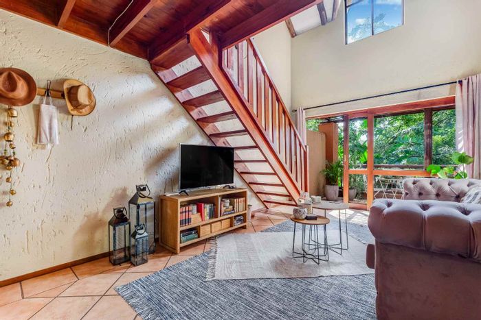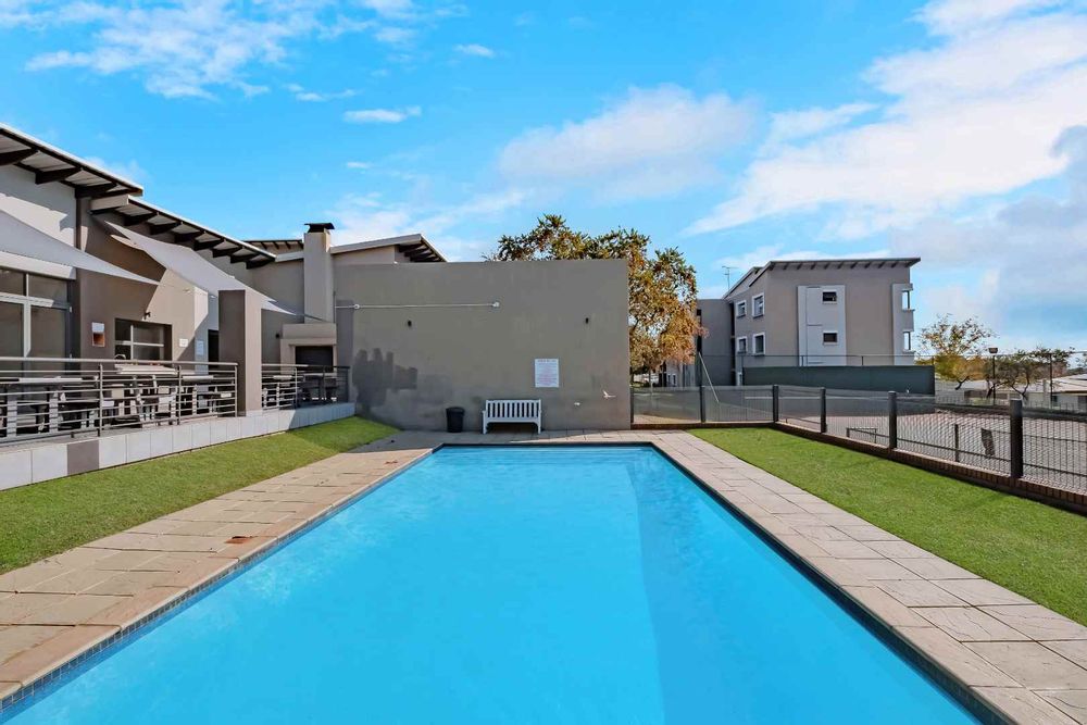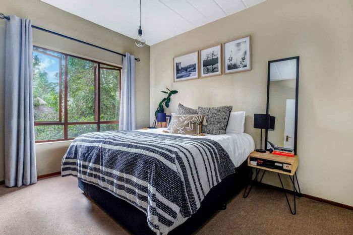 A contemporary 2-bedroom ground floor apartment featuring an open-plan layout that maximizes space and natural light in a secure 24-hour complex situated behind Dainfern Square. The living area opens to a covered patio overlooking a quaint garden. The open plan kitchen has lots of cupboard storage, breakfast bar and space for 1 appliance.