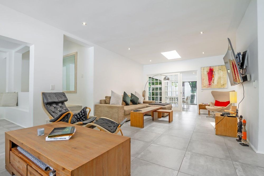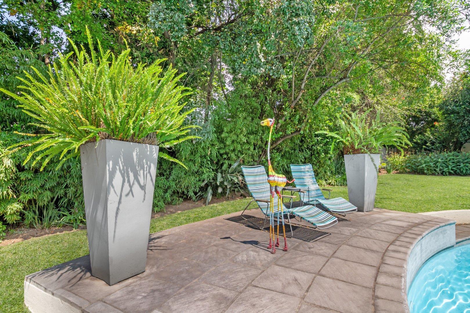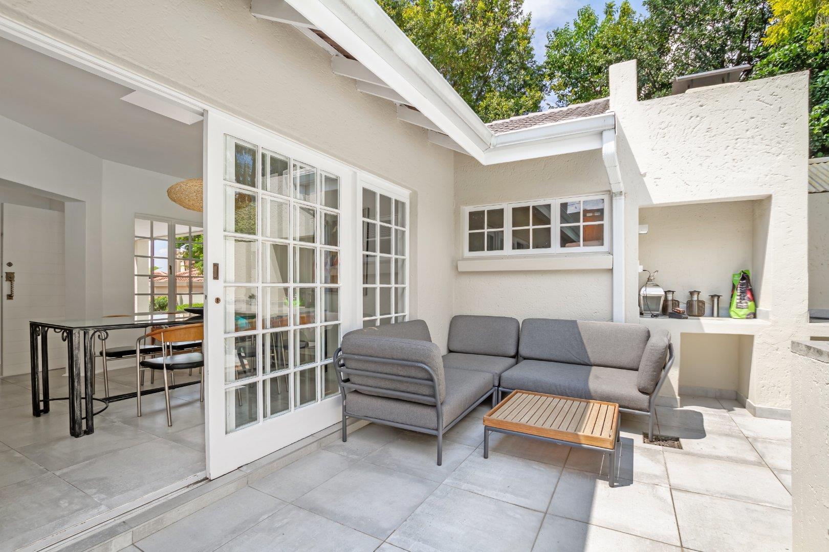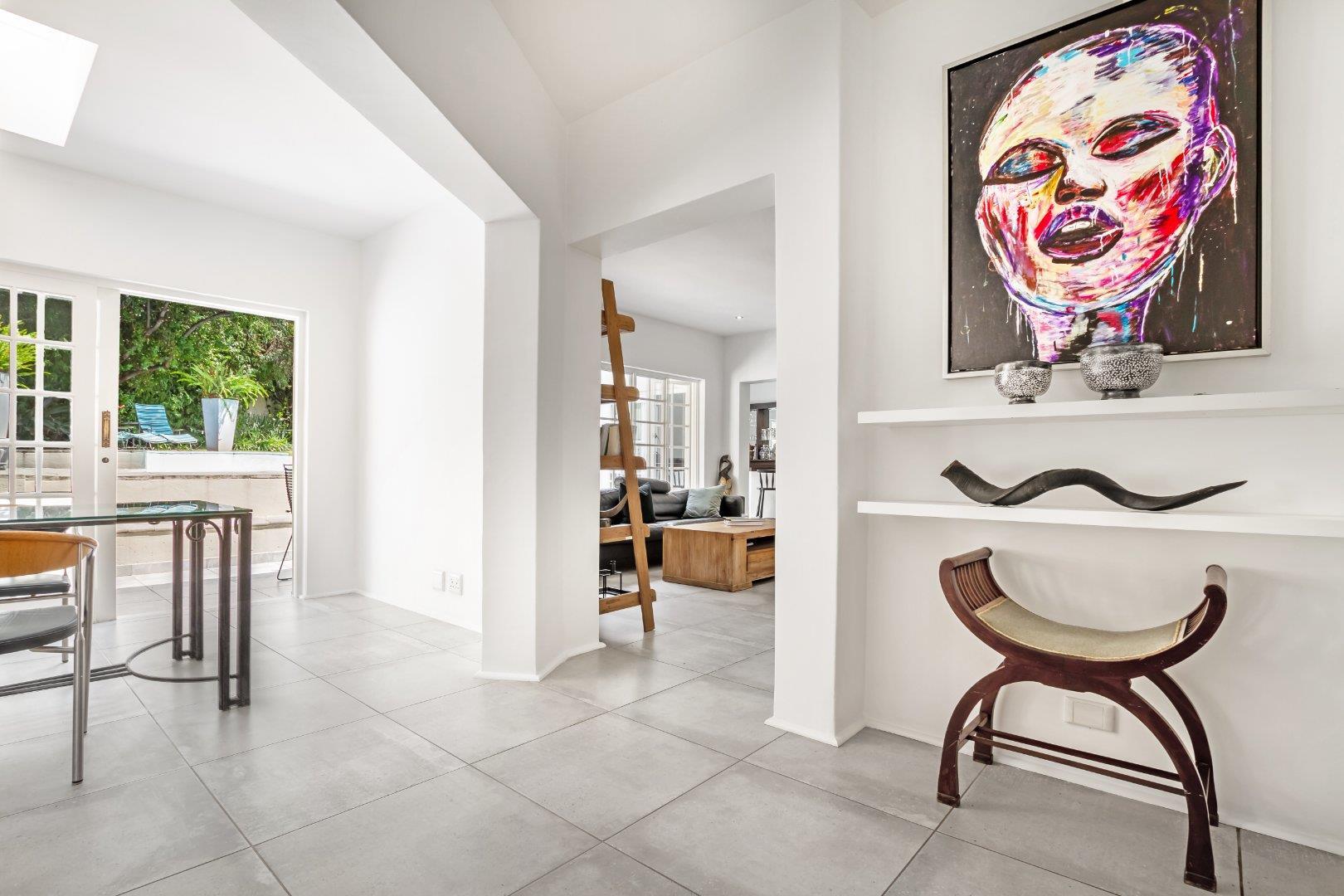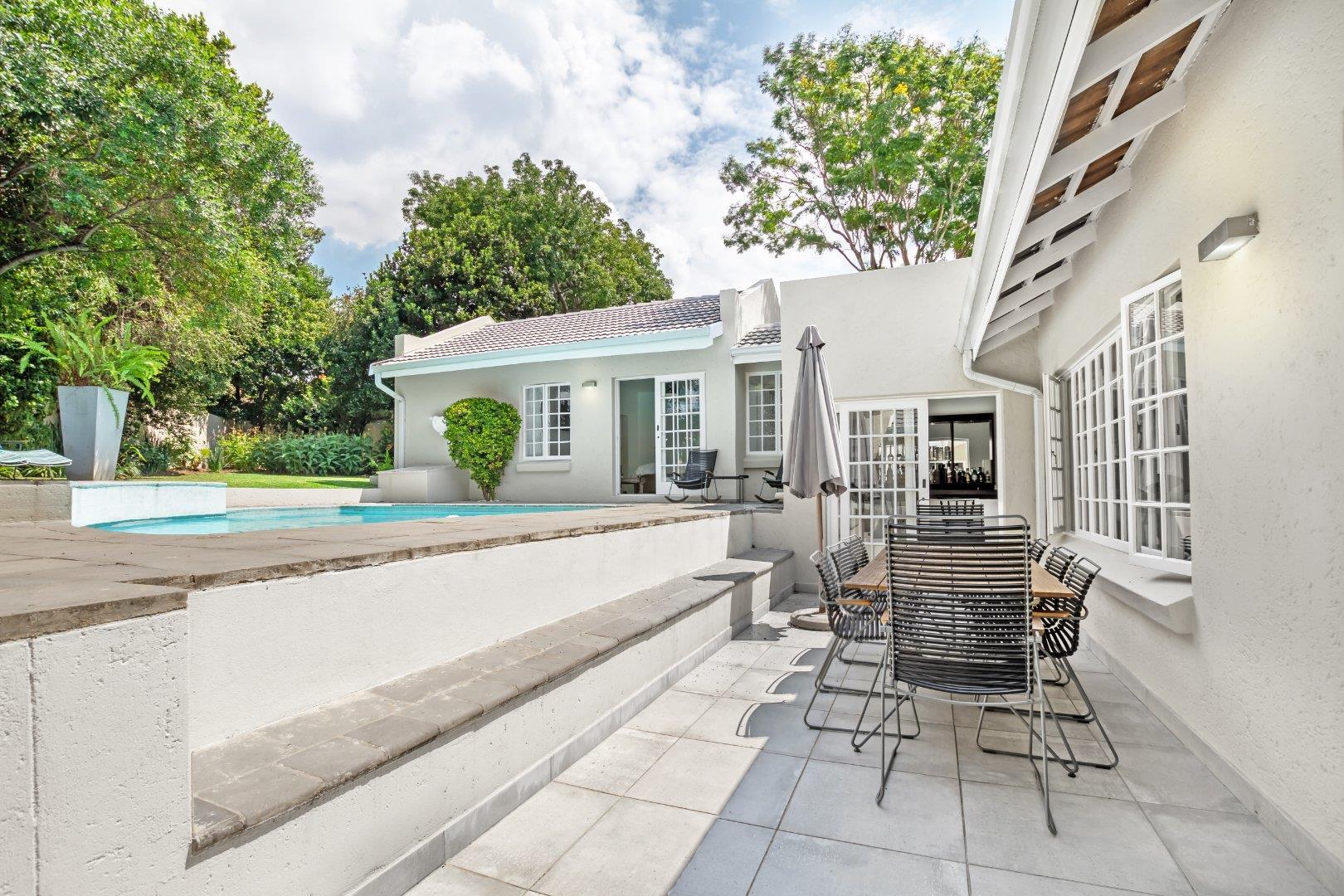 Gorgeous upon approach and, upon entry, prepare to be surprised! Lovely, light home with clean lines and a modern flair throughout. Good vibes in this home bringing you the right energy to make this your happy place! Lovely entrance with a light and airy dining room. The lounge has a feature bar with seating for large gatherings. The lounge is large and could fit an additional dining area in it. The family den is adjacent to the kitchen. Very nice kitchen with a view around the home. There are 3 bedrooms and 2 new bathrooms plus a guest cloakroom. The patio and braai area overlooks the back garden and feature pool. There is a double garage. This is set up a private panhandle and makes a lovely home for those who enjoy the lifestyle of Fourways Gardens.