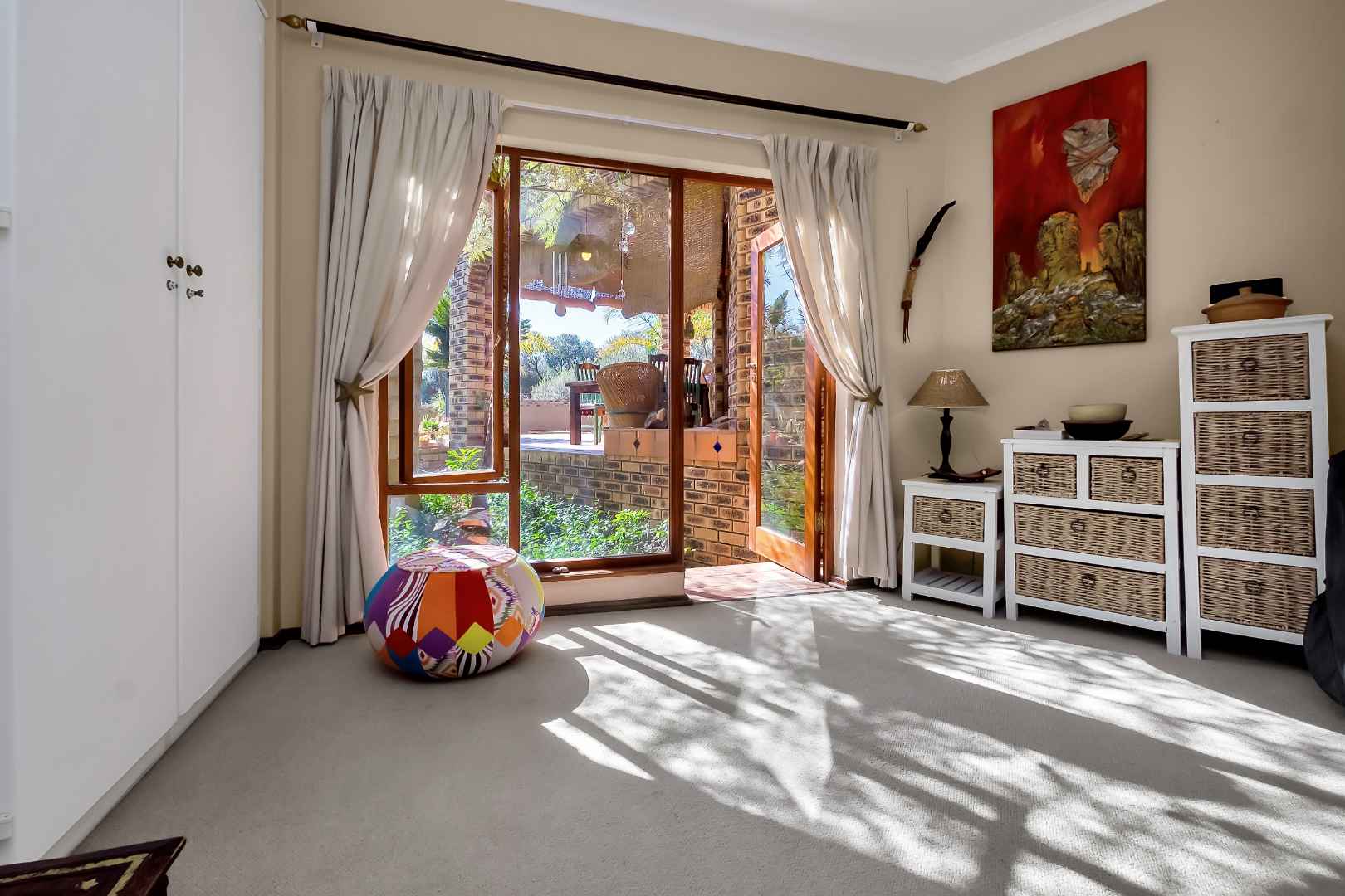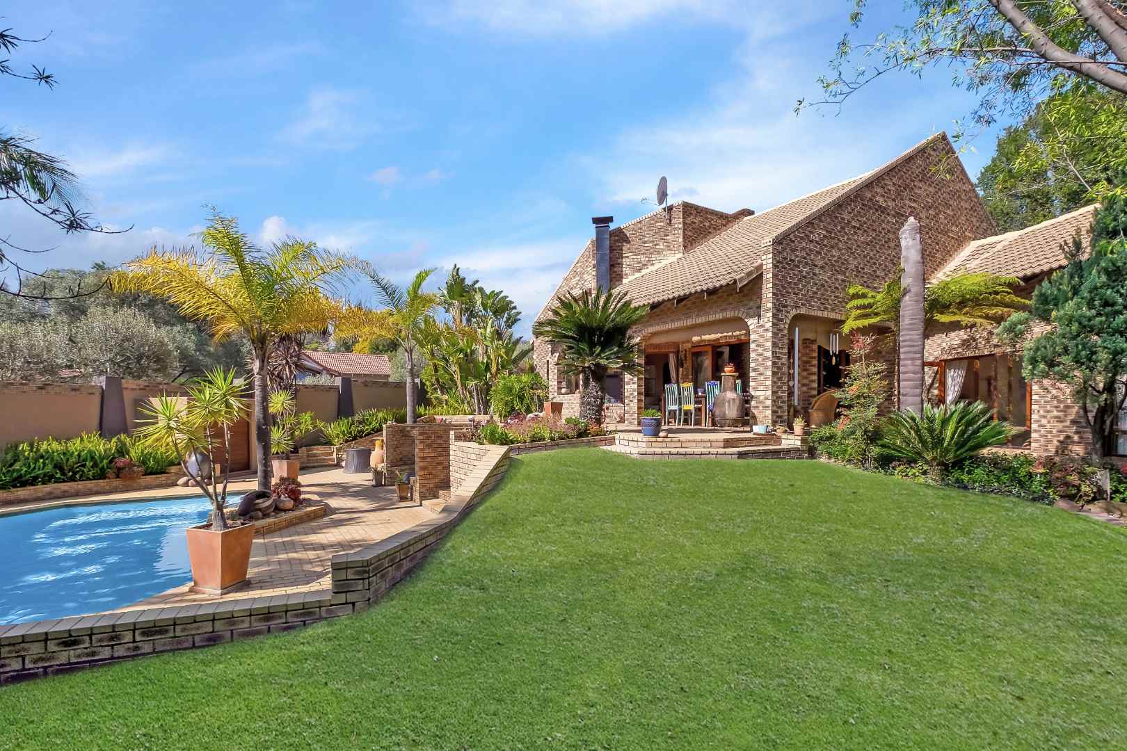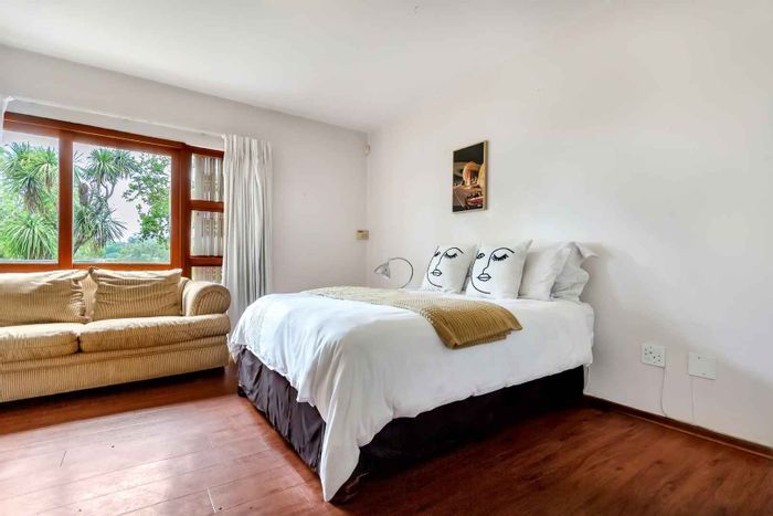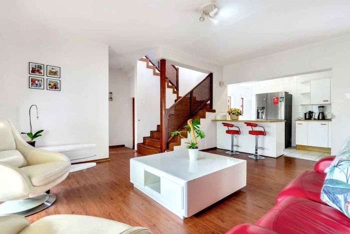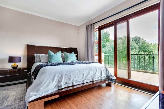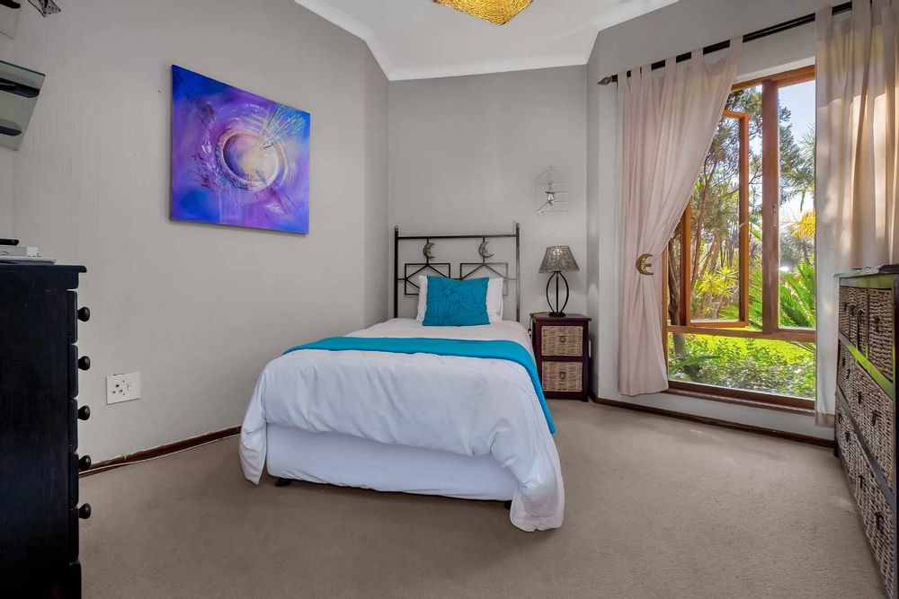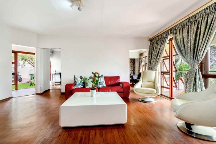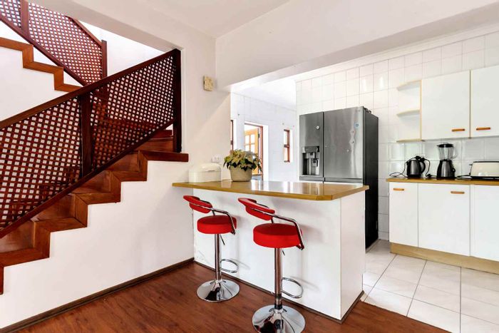 This beautiful home will get your energy up and running! Just the most gorgeous “feel good” house to enjoy and entertain in. Set in a picturesque garden, with space and special features like a firepit and sun deck, for lazy days at the pool. An oasis in a suburban lifestyle. Fourways Gardens offers security, parks and an incredible social calendar for young and old. A striking and unique entrance sets the tone for a lovely walk through into this welcoming home. The lounge has high ceilings and a view over the pool and garden. The dining room is cozy for intimate dinner parties. The family room has a wood burning fireplace and is open plan to a large contemporary kitchen, with separate scullery. The covered patio is elevated and very private with a built in braai. Stunning garden for bird life and kids to play in. There is another PJ lounge and a large studio or 4th bedroom upstairs. The other 3 bedrooms and 2 bathrooms are downstairs. The main bathroom is gorgeous with a lovely courtyard garden for all year enjoyment. Features also include the pizza oven, Velux skylights, the 100 year old front door, staff toilet, custom made cushion storage room near the pool, wine store, computerized irrigation and a bidet in the main bathroom. There are two garages. An absolute must see! Call the Agents to view.