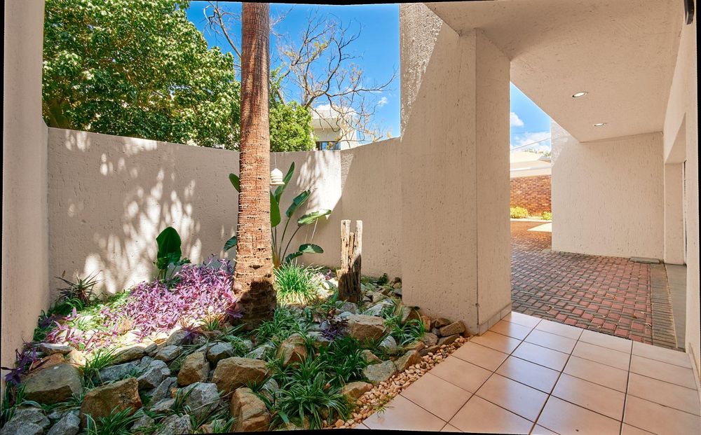 This is a unique style in Fourways Gardens and will appeal to a family with kids. Large double volume entrance all leading onto the lounge, dining room and modern kitchen. The covered patio is North facing and overlooks the garden and pool. There are 3 bedrooms and 2 bathrooms plus a guest cloakroom. The main en-suite is upstairs and it is really large and has a fabulous bathroom and dressing area. There is a nice private balcony as well. The kids bedrooms are downstairs and they share a family bathroom. The kitchen has been redone and boasts a gas/electric oven and hob and a separate scullery, with skylights to encourage natural light. There is a pantry for extra storage. There is a double garage, irrigation, a staff room and the property has back-up power. This is very good value for money and a wonderful opportunity to enter this Estate. Call the Agents to view.