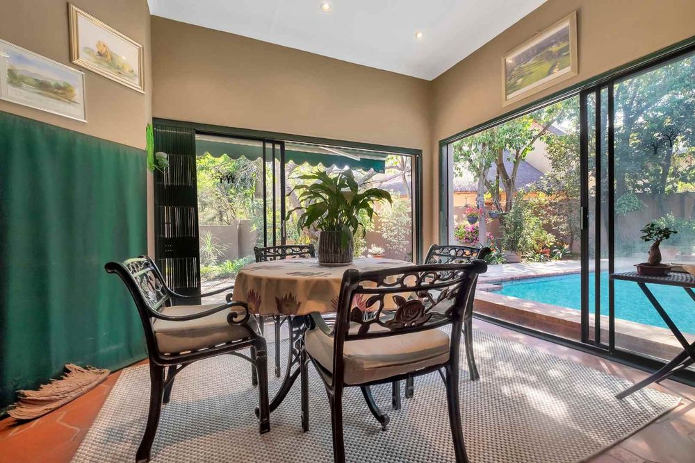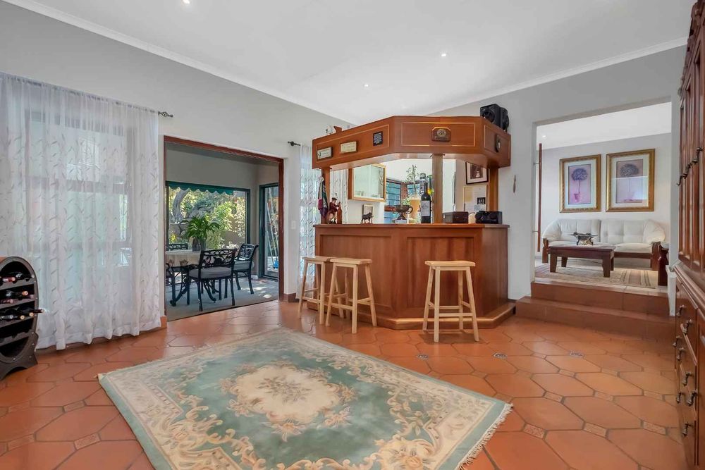 Welcome to a pretty entrance leading into a large lounge with a pub and access onto the covered patio, overlooking a gorgeous garden and pool. A feature fireplace is in the living room, now converted into a clever wine storage area. There is another lounge, and a spacious dining room, with a large oak built in server. The kitchen is contemporary in style with a glass top hob and black granite tops. The pantry cupboard is useful for grocery storage. There is space for a double fridge and two appliances. A stunning entertainment gazebo is outside in the garden, with a fabulous wood burning Jetmaster braai. Many happy parties have been hosted here.