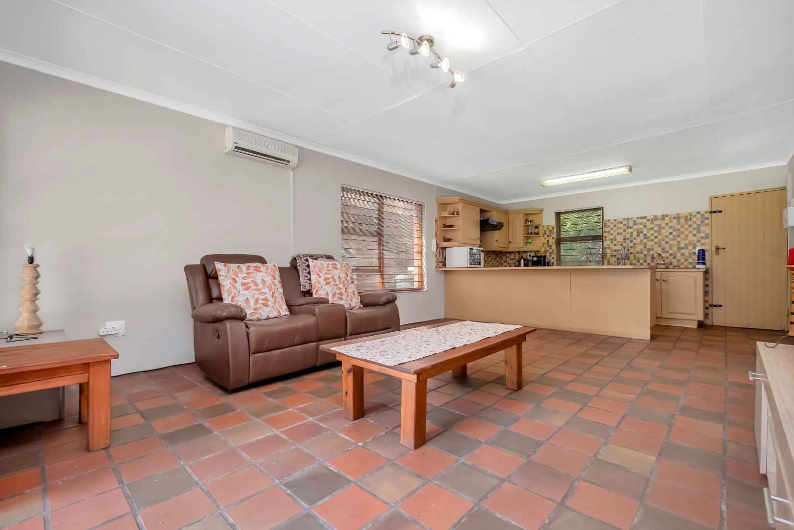 There are 4 sunny bedrooms in the main house and 2.5 bathrooms. The main bedroom is en-suite and very spacious with a lovely view of the garden. The 3 north facing bedrooms have air-conditioning. A short walk around in the garden and you will see the fabulous cottage! Wow, a separate entrance opens onto the kitchen and lounge area, covered patio and garden. There are 2 bedrooms with 1 bathroom and they are generous in size. This is such a neat, pleasant cottage for family or for rental.