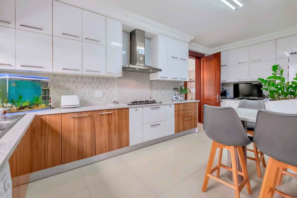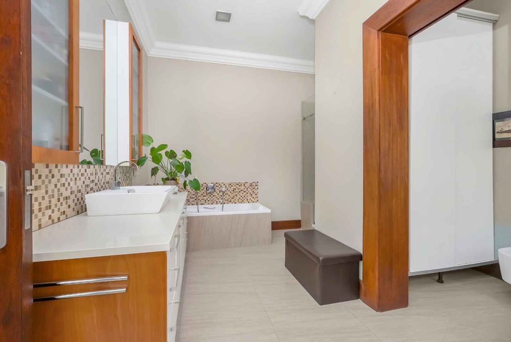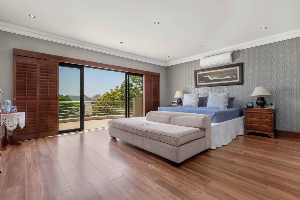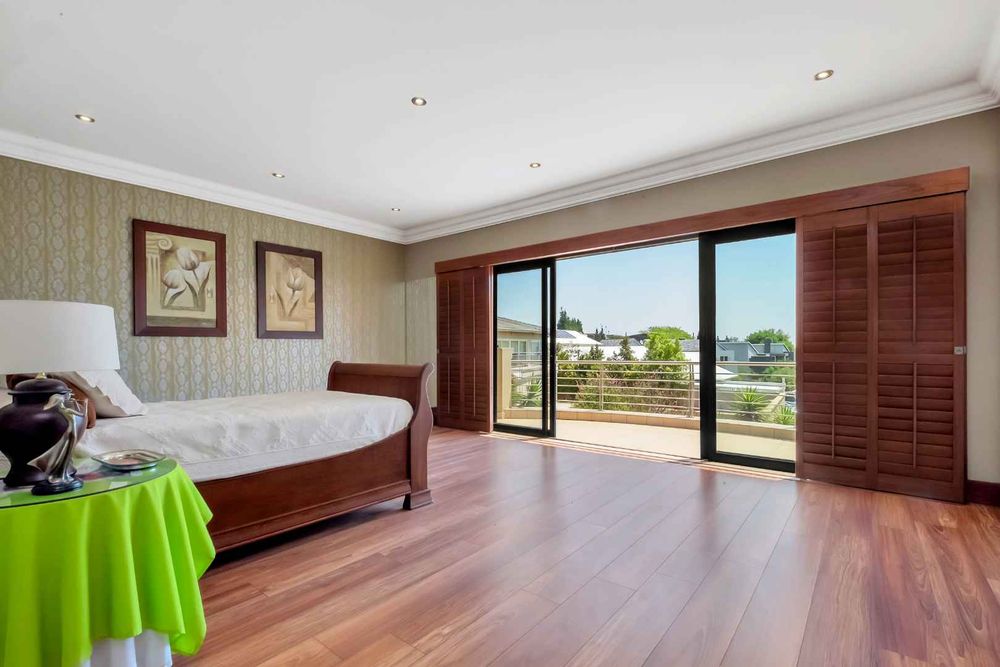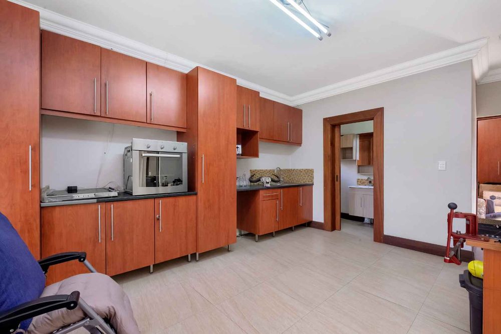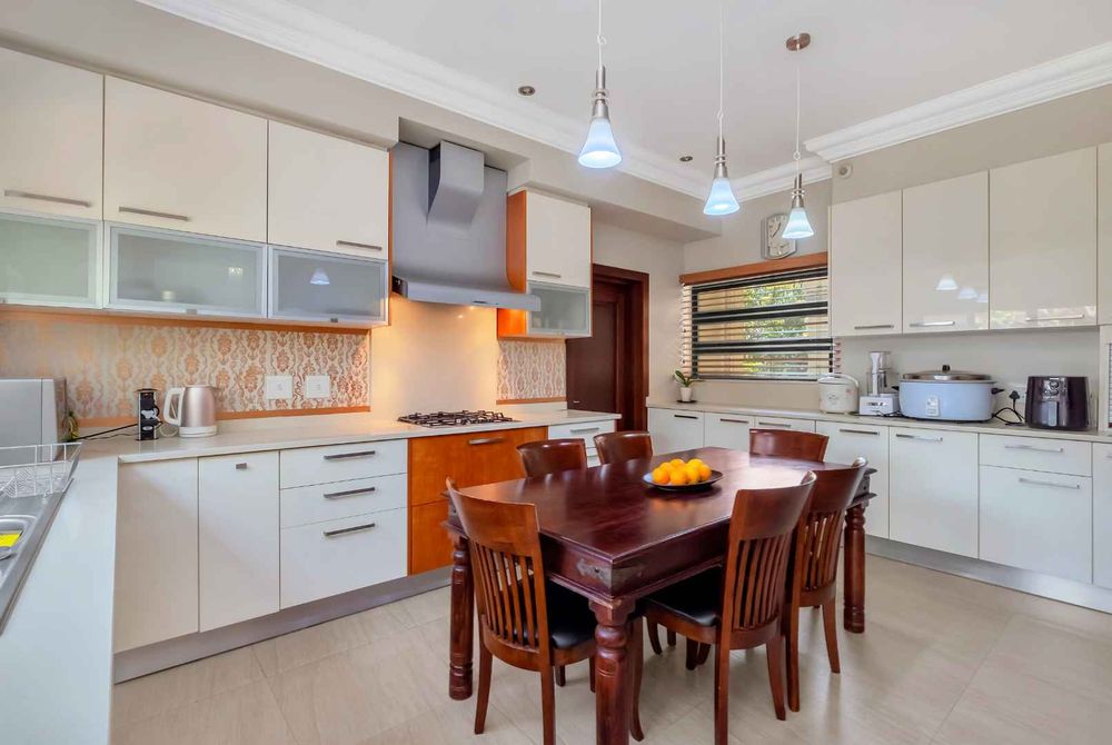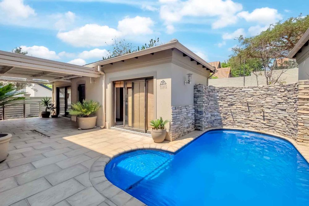 A home that has everything! Fully solar, borehole and the best in entertaining! This beautiful home has superb finishes throughout and, so many extra features designed to make your living experience so much better! A classy entrance, with a huge double volume window, allowing natural light in. The lounge, dining room, and bar are all beautifully combined to accommodate a large group of friends and family. This stunning indoor/outdoor lifestyle is what most families desire. There are two kitchens! One is for when you have a large party and the second one is for the family to gather around the eat in table and enjoy time together. There is a gas Siemens hob and deep fryer, eyelevel oven and so many cupboards. There is an integrated fridge/freezer. The laundry is completely separate and is really large. The laundry shute pops out in the laundry. Piped sound is very soothing for the entertainer mood.