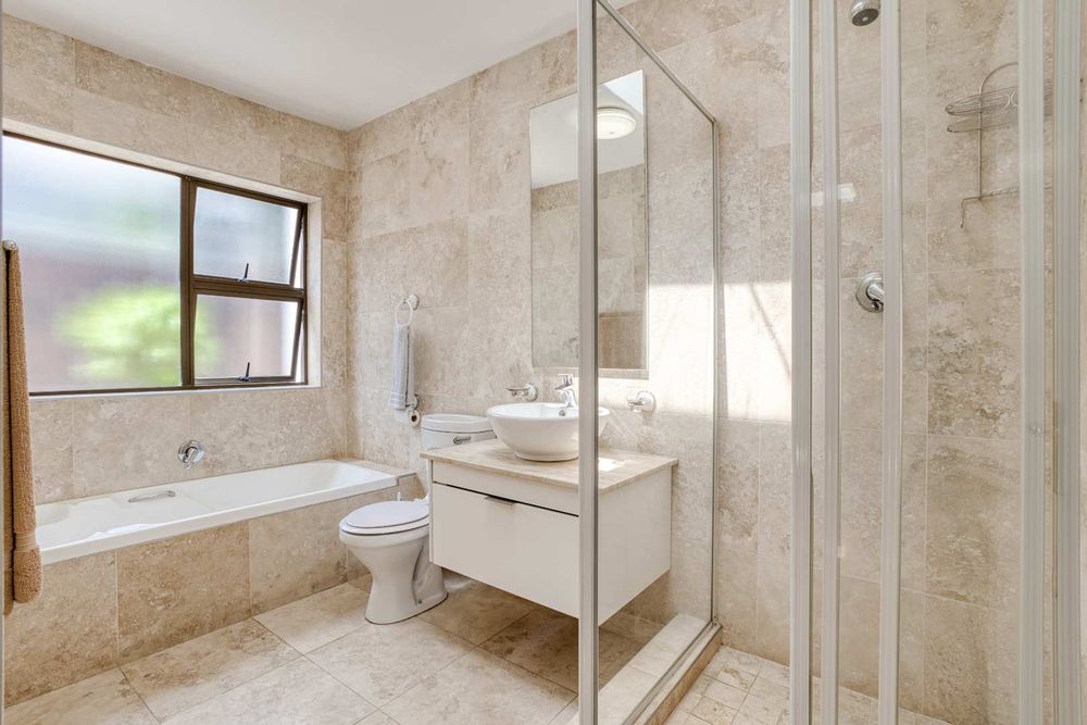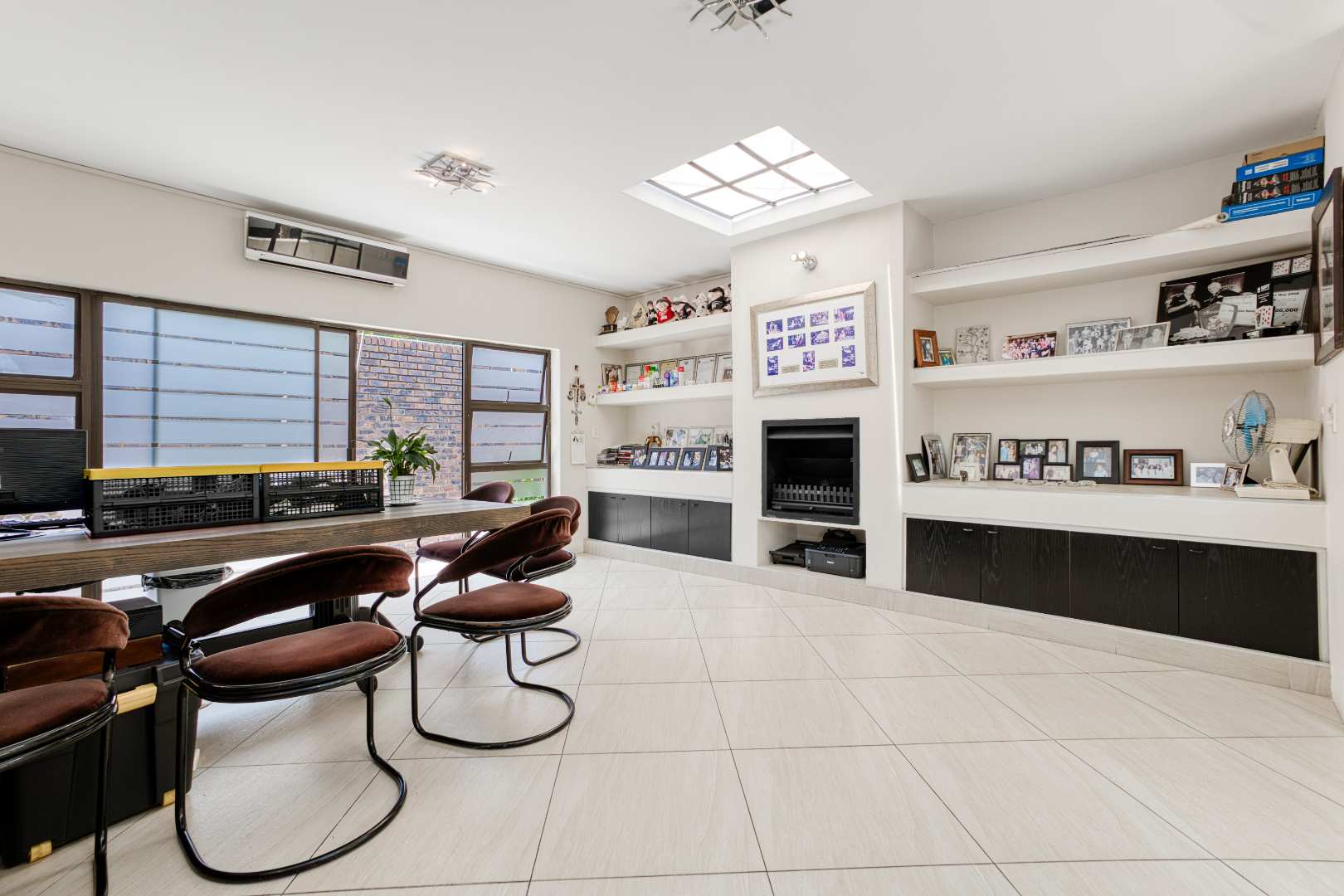 The kitchen is very nice and has a black granite top with light grey cupboards. There is space for a double fridge and the breakfast bar is very nice for the family dinners. The scullery is huge with space for 3 appliances and loads of additional cupboards. Natural light just spills into this house wherever you are. There is a staff room and a double garage.