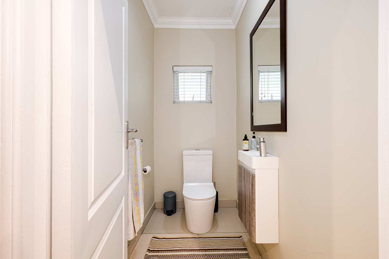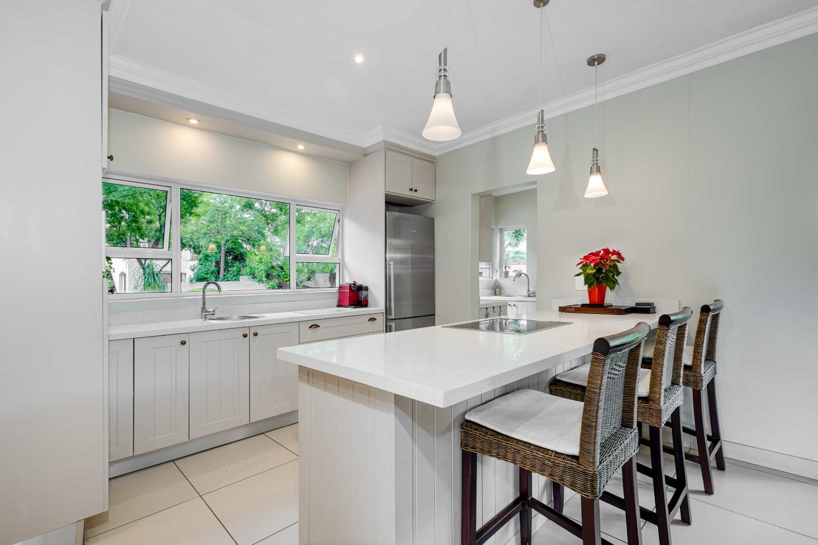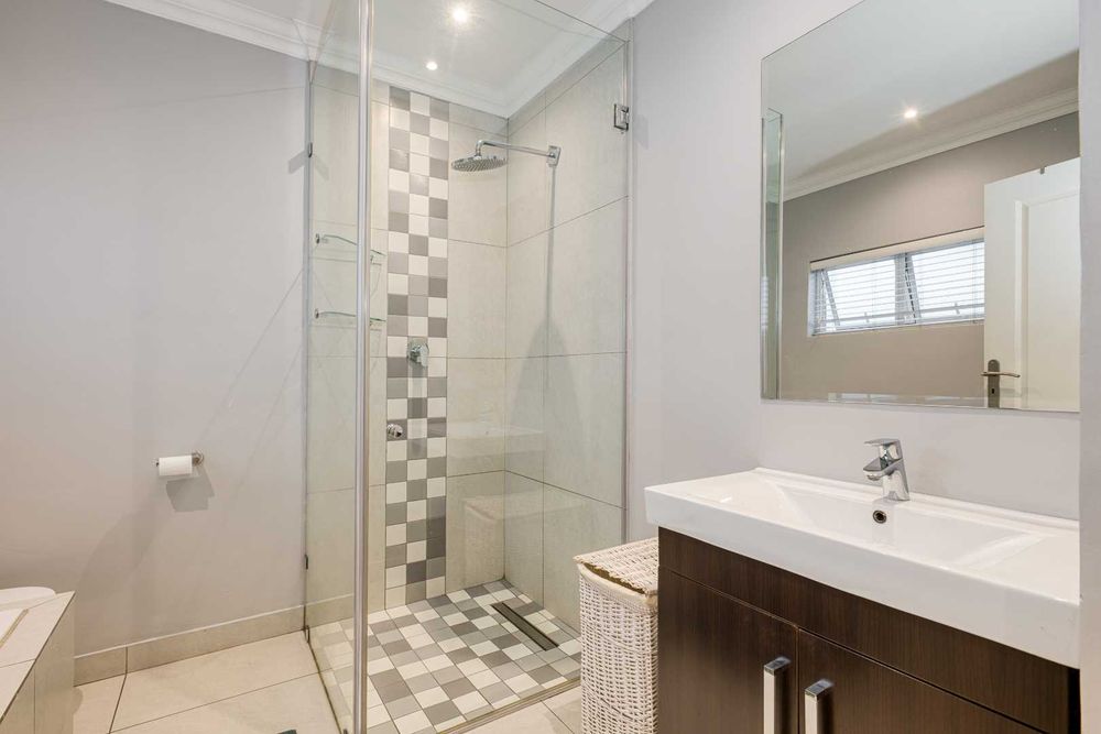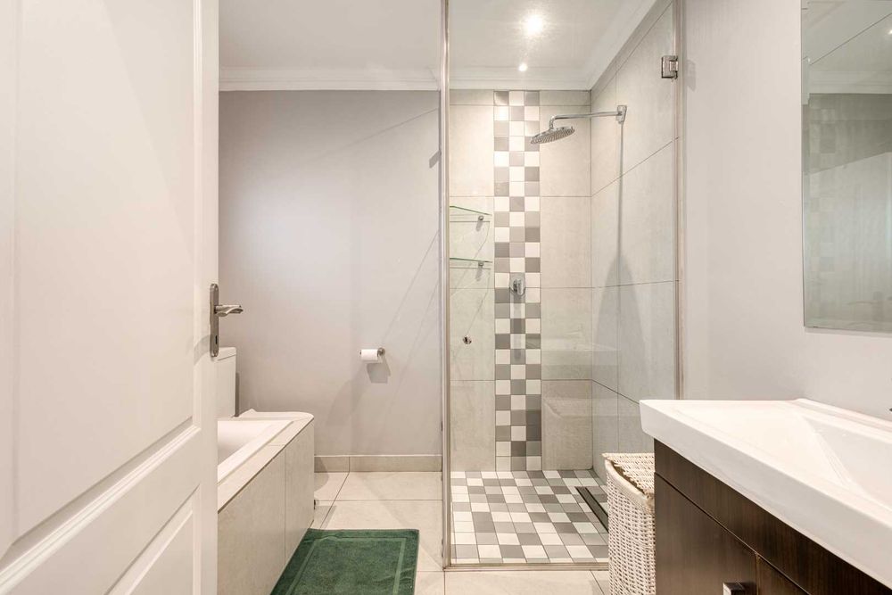 The guest cloakroom is also newly done and there is a very spacious family room for the whole family to enjoy. The main home has 3 en-suite bedrooms and a door that can be part of the house or closed off for the 4th en-suite bedroom. The main bedroom opens out onto the garden with the wrap around stoep feel, adding to the character of the home. The 4th bedroom is very large and has a separate open plan kitchen, lounge/dining and covered patio. It is one of the best flatlets we have seen in Fourways Gardens. Well designed for a separate income generator or, for extended families, who wish to keep their privacy and independence.