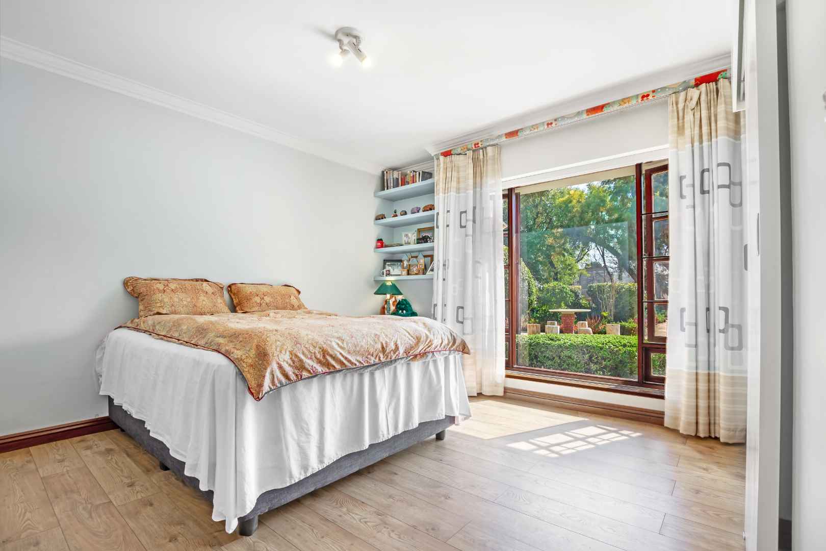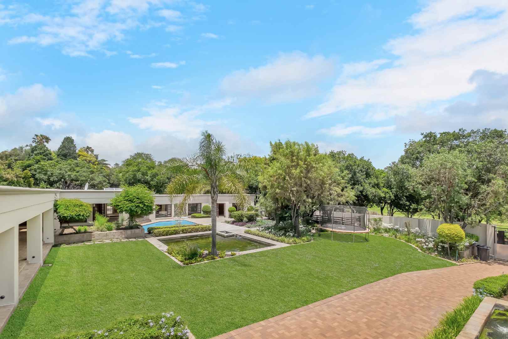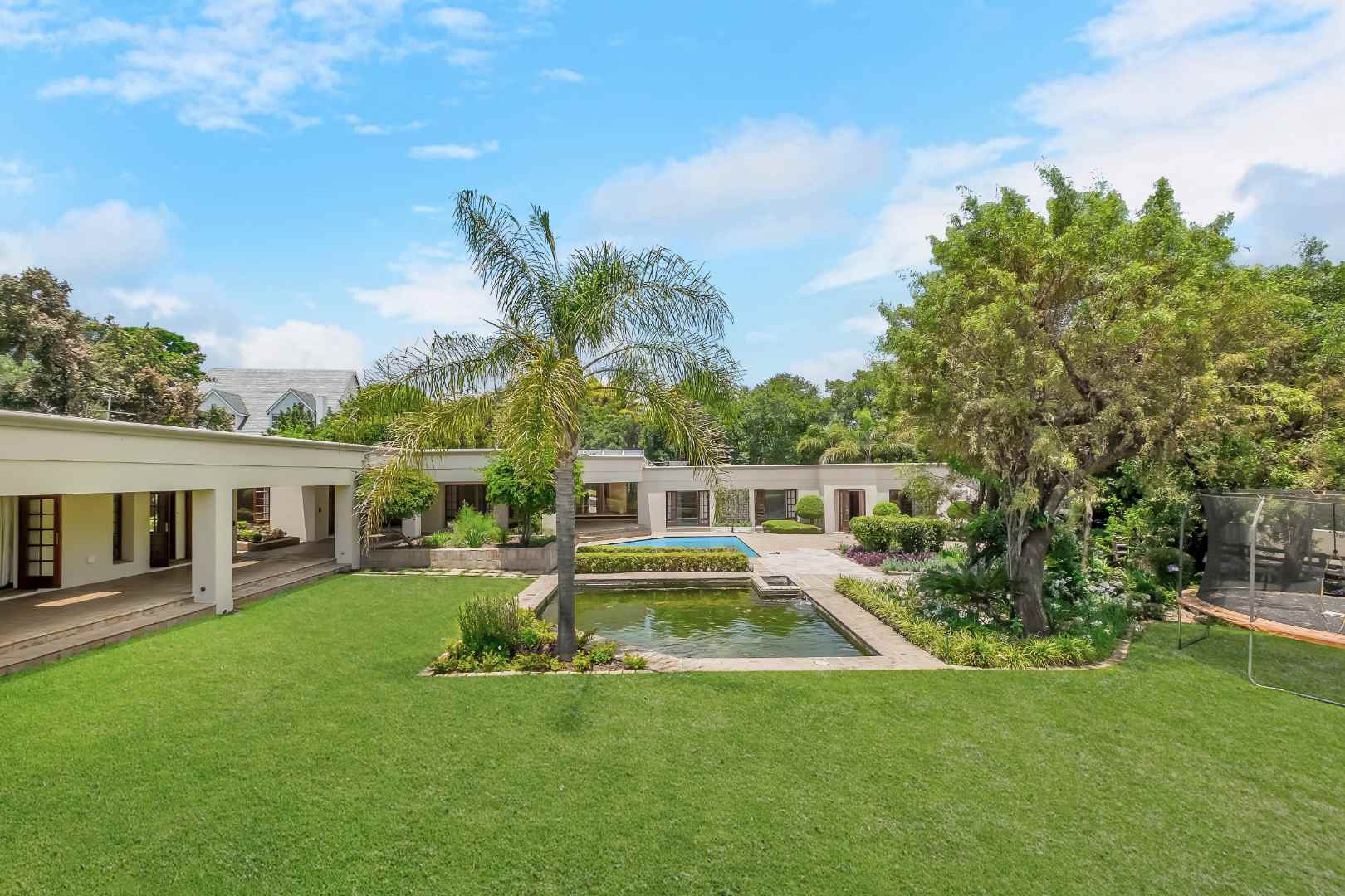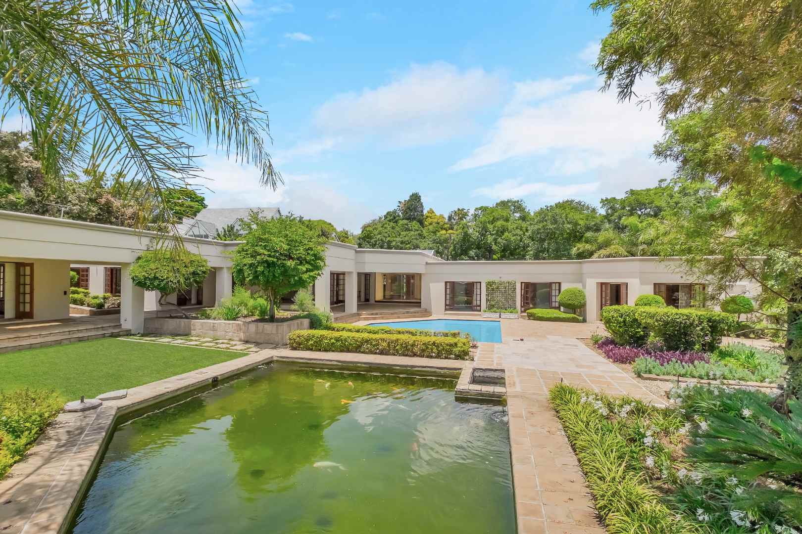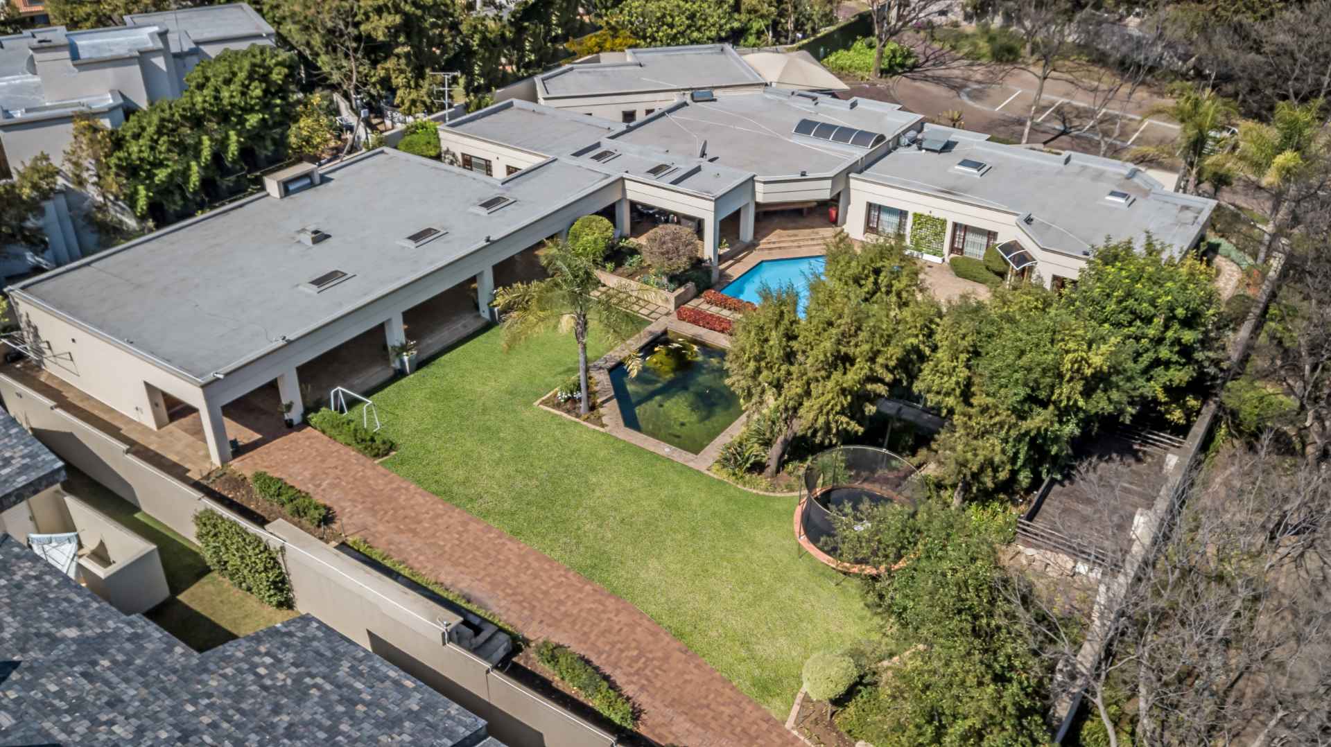 SERIOUS SELLER! TWO HOUSES on a double stand! A delight to the senses! Gorgeous single storey home on a corner double stand, adjacent to the park. This location is simply the best! Quiet with plenty of parking. Living in the secure family Estate of Fourways Gardens, and having two separate homes sharing the same garden, is truly unique. This is one of a kind in Fourways Gardens. The entrance is very elegant with natural light and a guest cloakroom. A spacious formal lounge with a wood fireplace and surround sound, overlooking the tranquil garden. The family room is very large and can accommodate a snooker table. It has a beautiful built-in cupboard and opens up onto a large, covered patio overlooking the pool and koi pond. The dining room opens onto a charming eat-in Cherrywood kitchen. There is a second “outdoor” cooking area as well as a separate laundry. The home is immaculate and there are 3 sunny bedrooms and a study/4th bedroom and 2 bathrooms. The main en-suite is very large and opens out onto the garden. The bathrooms are all classic with a high-quality finish in Cherrywood and marble. The main bedroom has a dressing room, and the other two bedrooms have walk-in closets. There is a staff room and 3 garages plus shady ports. Other features include piped sound, an inverter, an alarm system and beams, a CCTV system, a large walk-in linen cupboard, underfloor heating and partial air-conditioning.