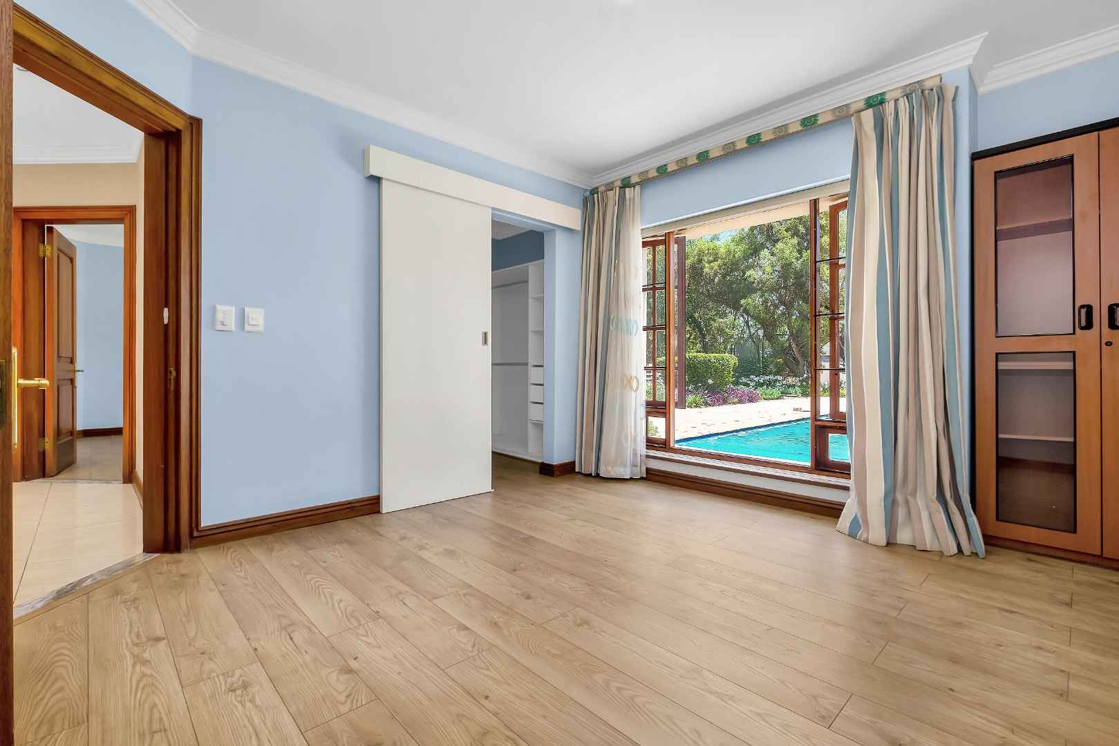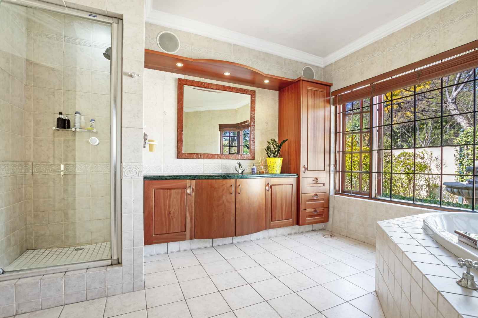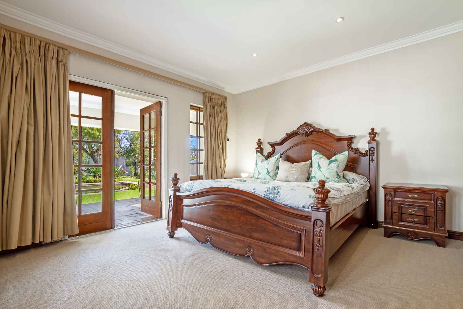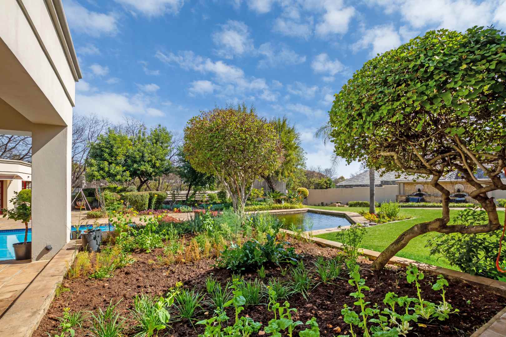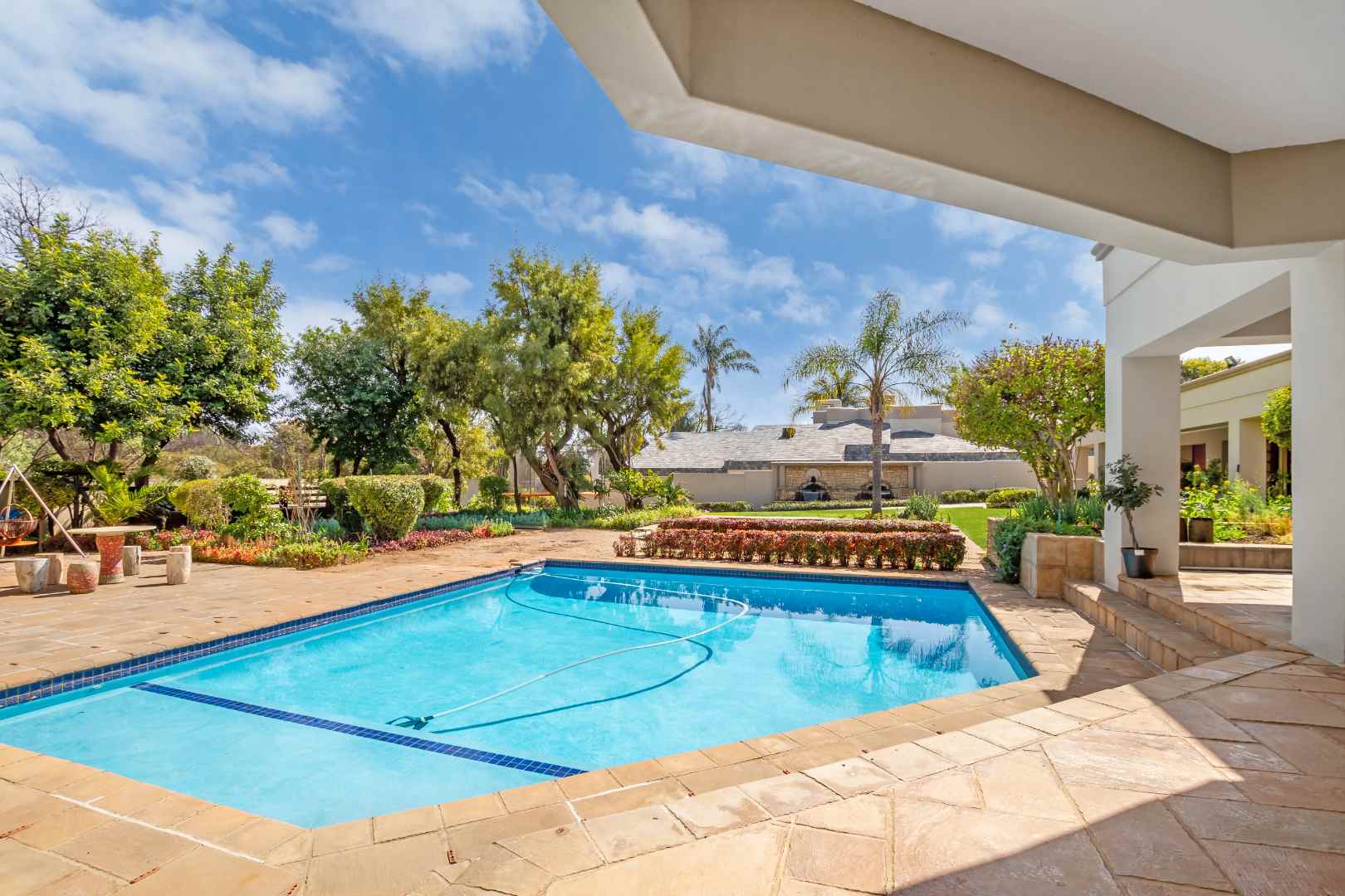 SERIOUS SELLER! TWO HOUSES on a double stand! A delight to the senses! Gorgeous single storey home on a corner double stand, adjacent to the park. This location is simply the best! Quiet with plenty of parking. Living in the secure family Estate of Fourways Gardens, and having two separate homes sharing the same garden, is truly unique. This is one of a kind in Fourways Gardens. The entrance is very elegant with natural light and a guest cloakroom. A spacious formal lounge with a wood fireplace and surround sound, overlooking the tranquil garden. The family room is very large and can accommodate a snooker table. It has a beautiful built-in cupboard and opens up onto a large, covered patio overlooking the pool and koi pond. The dining room opens onto a charming eat-in Cherrywood kitchen. There is a second “outdoor” cooking area as well as a separate laundry. The home is immaculate and there are 3 sunny bedrooms and a study/4th bedroom and 2 bathrooms. The main en-suite is very large and opens out onto the garden. The bathrooms are all classic with a high-quality finish in Cherrywood and marble. The main bedroom has a dressing room, and the other two bedrooms have walk-in closets. There is a staff room and 3 garages plus shady ports. Other features include piped sound, an inverter, an alarm system and beams, a CCTV system, a large walk-in linen cupboard, underfloor heating and partial air-conditioning.