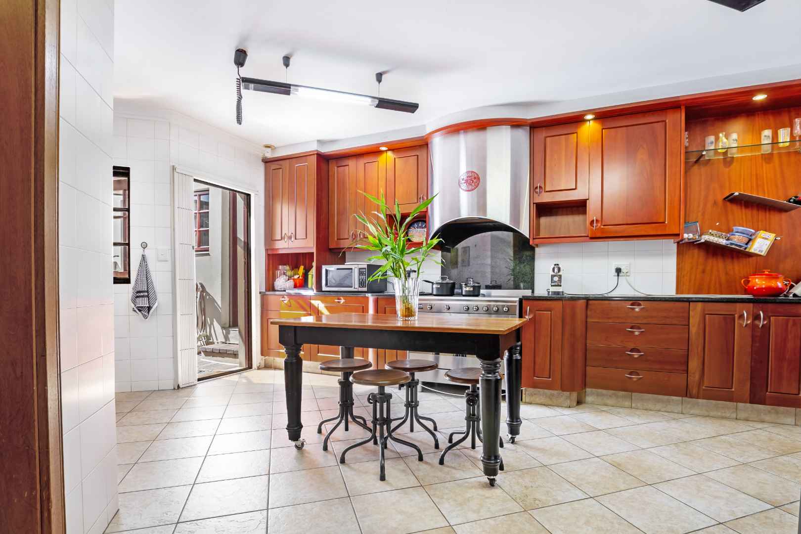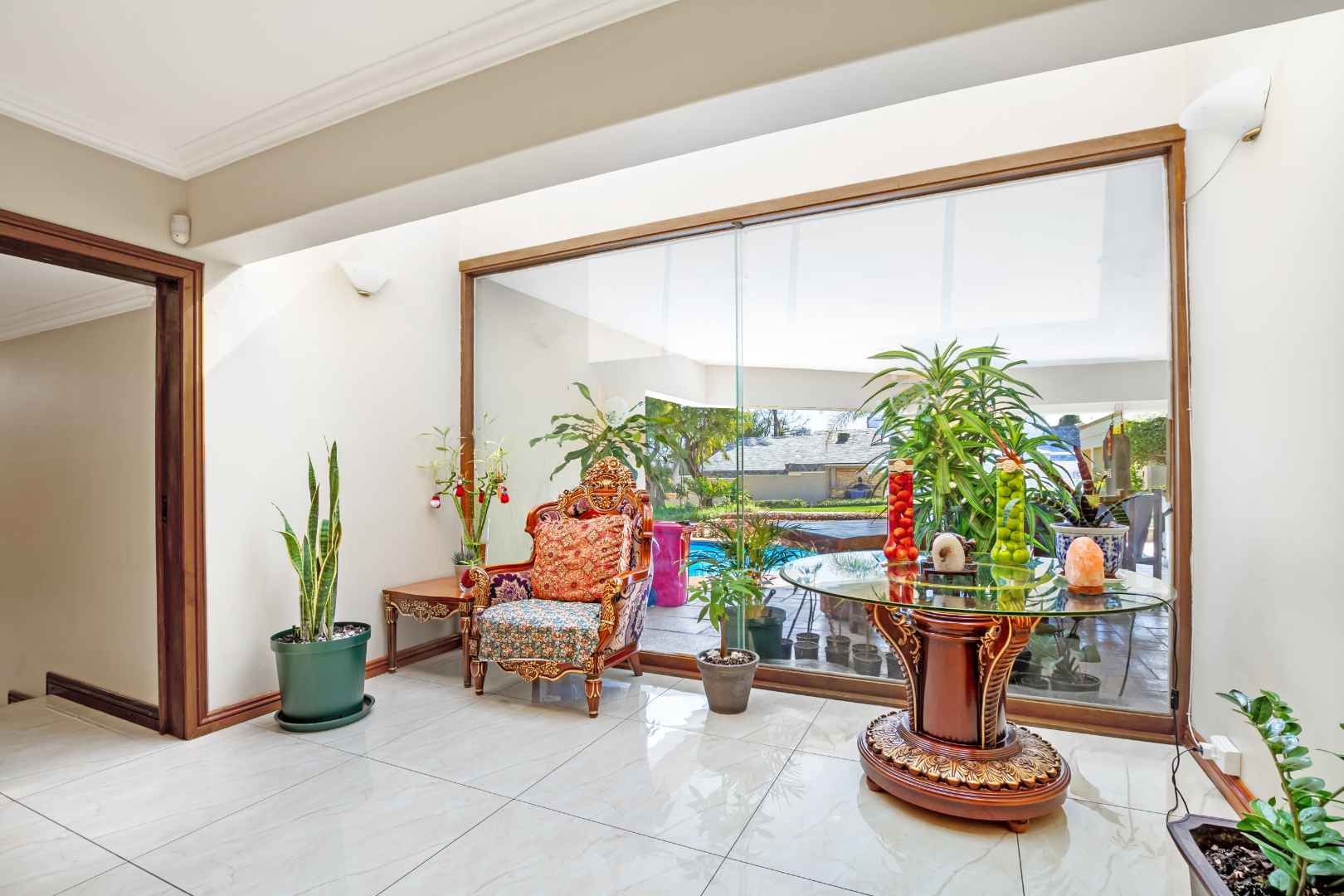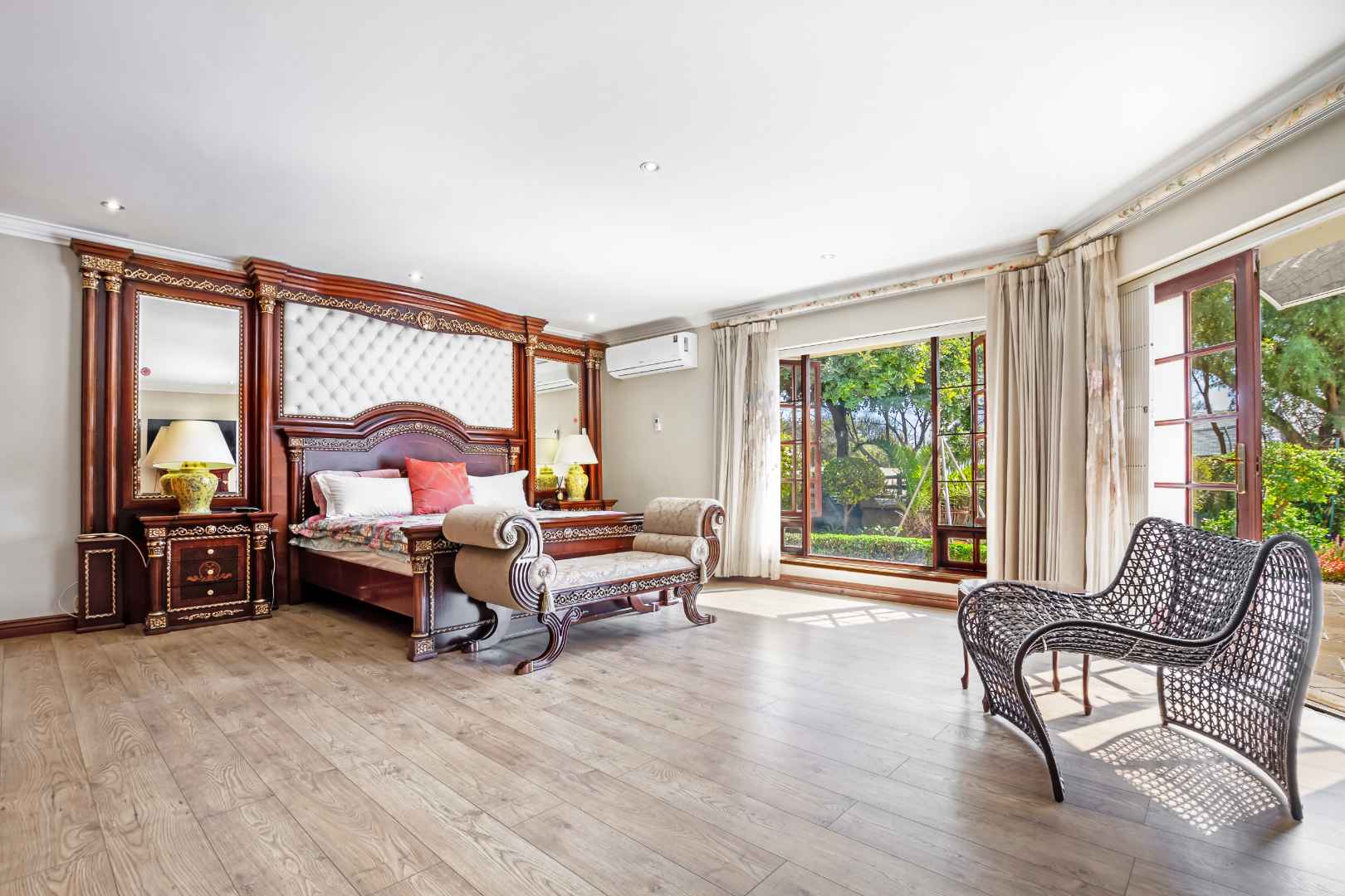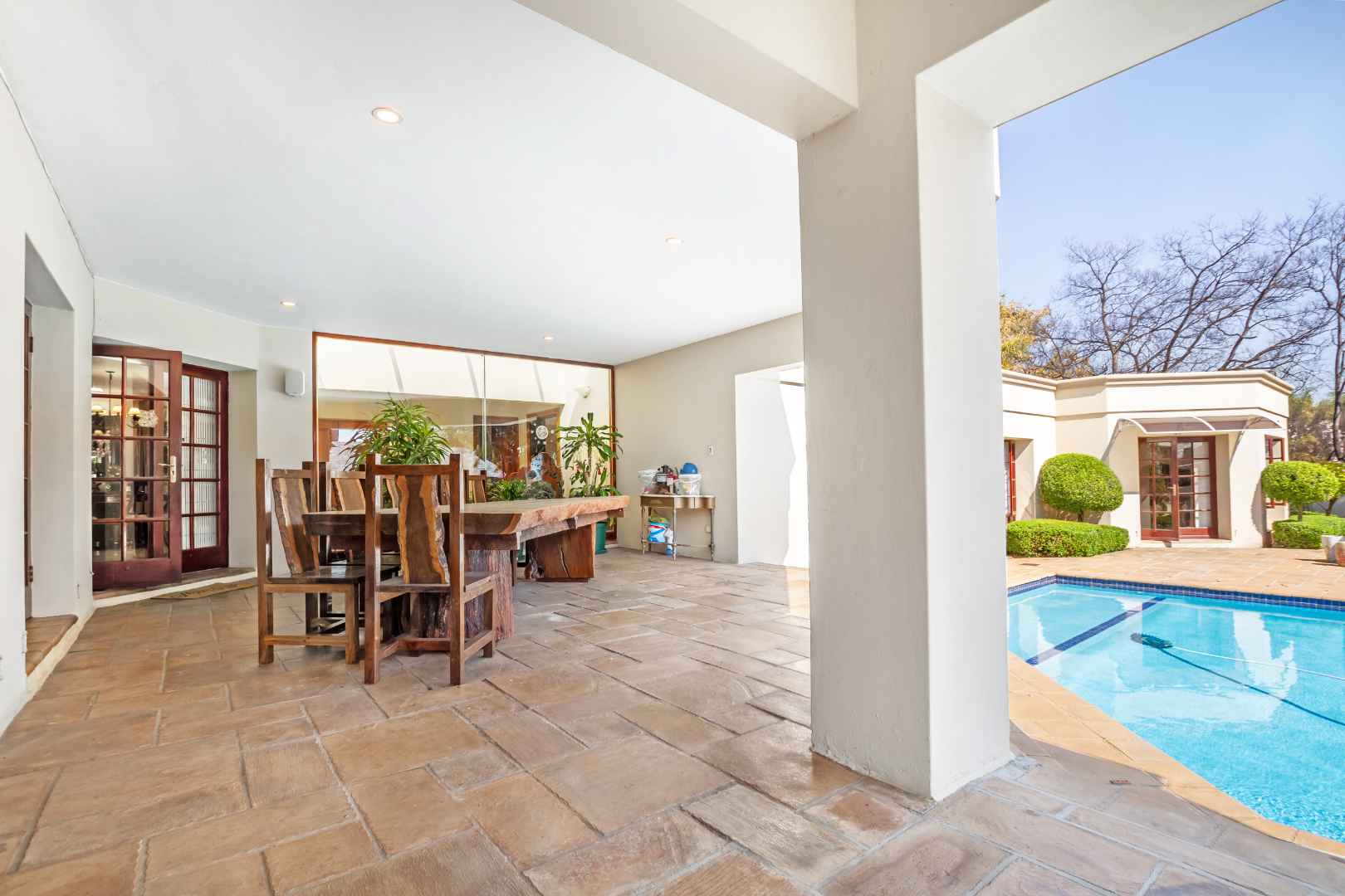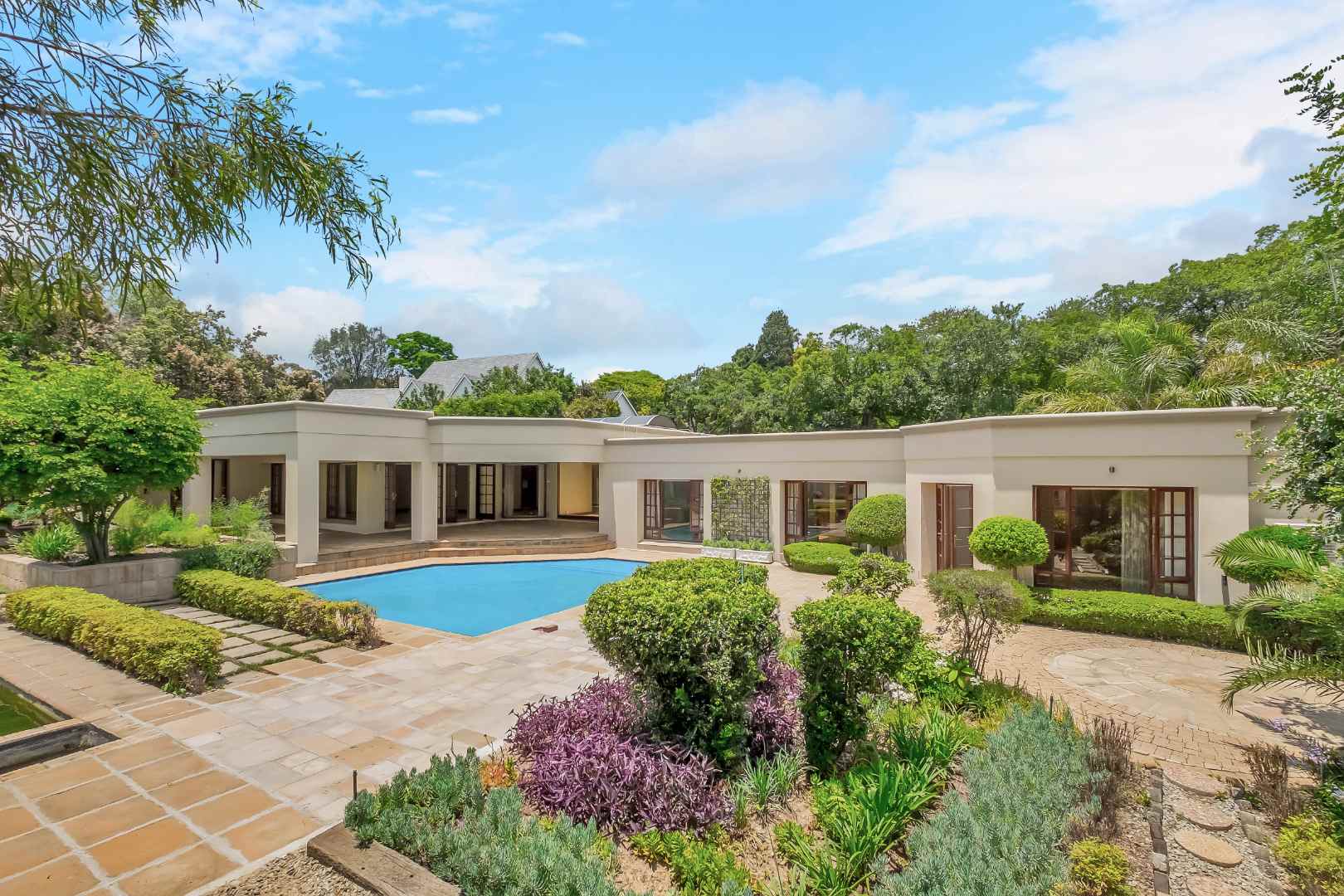 SERIOUS SELLER! TWO HOUSES on a double stand! A delight to the senses! Gorgeous single storey home on a corner double stand, adjacent to the park. This location is simply the best! Quiet with plenty of parking. Living in the secure family Estate of Fourways Gardens, and having two separate homes sharing the same garden, is truly unique. This is one of a kind in Fourways Gardens. The entrance is very elegant with natural light and a guest cloakroom. A spacious formal lounge with a wood fireplace and surround sound, overlooking the tranquil garden. The family room is very large and can accommodate a snooker table. It has a beautiful built-in cupboard and opens up onto a large, covered patio overlooking the pool and koi pond. The dining room opens onto a charming eat-in Cherrywood kitchen. There is a second “outdoor” cooking area as well as a separate laundry. The home is immaculate and there are 3 sunny bedrooms and a study/4th bedroom and 2 bathrooms. The main en-suite is very large and opens out onto the garden. The bathrooms are all classic with a high-quality finish in Cherrywood and marble. The main bedroom has a dressing room, and the other two bedrooms have walk-in closets. There is a staff room and 3 garages plus shady ports. Other features include piped sound, an inverter, an alarm system and beams, a CCTV system, a large walk-in linen cupboard, underfloor heating and partial air-conditioning.