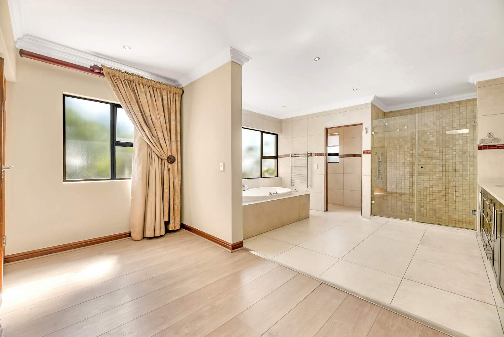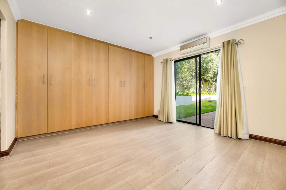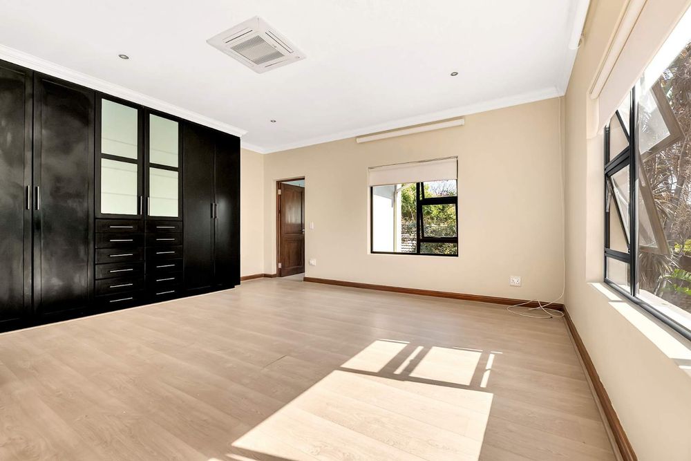 Hop, skip and jump to the park. A truly elegant home set in a lovely garden with 6 luxurious en-suite bedrooms and 5 garages. Stunning enclosed entertainment patio with stack back glass doors opening out into an established garden and sparking pool. Excellent finishes throughout the home, air-conditioning and laminate wood floors in all the bedrooms. The walk-in wine cellar is a lovely touch for the main lounge. Ultra-modern gourmet kitchen, with centre island, gas and electric hobs, loads of cupboards space and separate scullery. Small breakfast room open to the kitchen just perfect to chat to the children whilst cooking or when they eat. This home offers practical family living, 3 bedrooms upstairs plus an open pajama lounge and 3 bedrooms downstairs. Added extras the comes with all kitchen appliances, curtains and blinds, fibre, inverter and batteries for un-interrupted power supply, excellent security, and staff accommodation. Located one block from the park, this home would suit most large families.