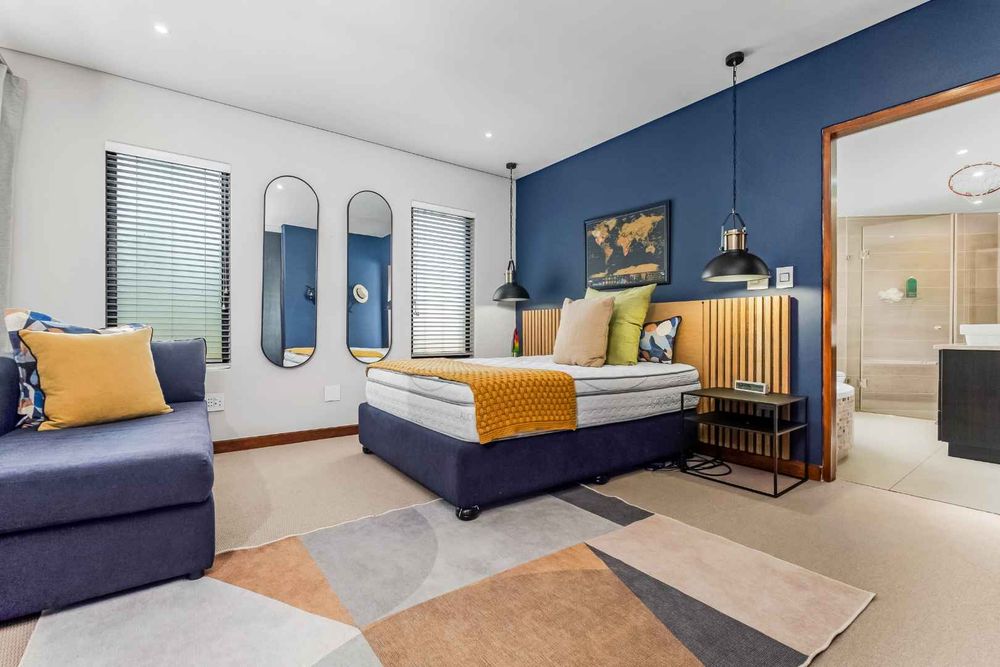The main bedroom is a “Sanctuary” having a lounge area, walk in wardrobe, luxurious spacious full bathroom and spectacular views from the upstairs patio overlooking the garden and surrounds.
