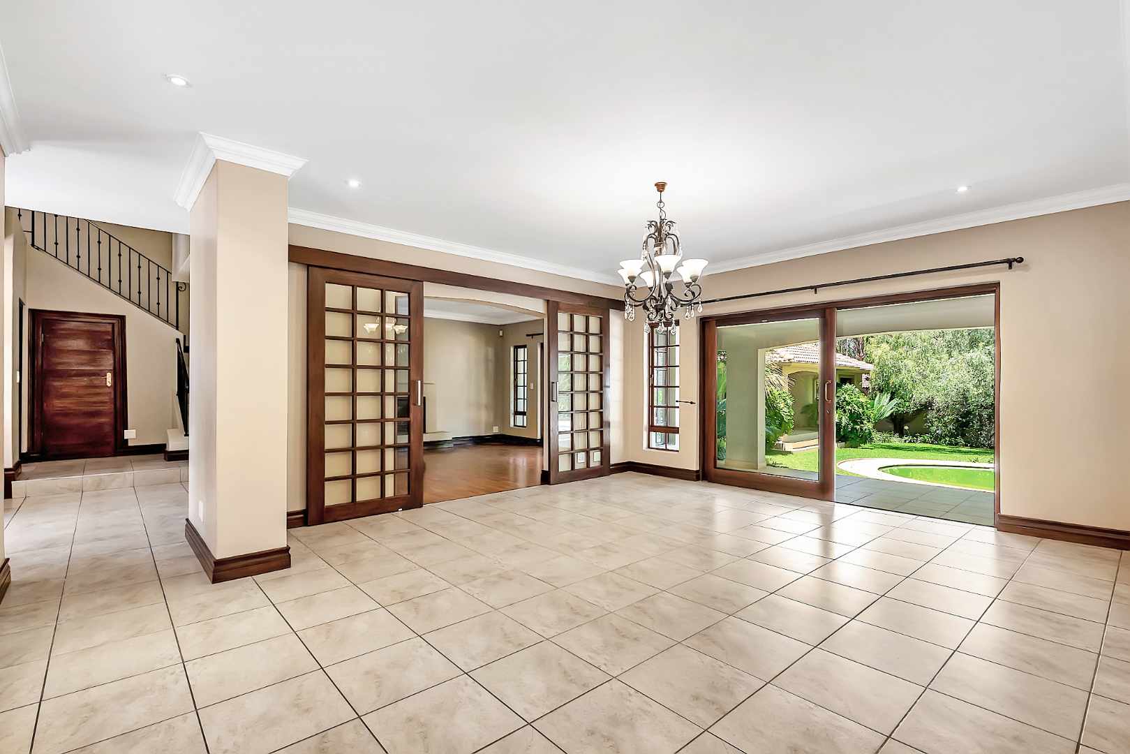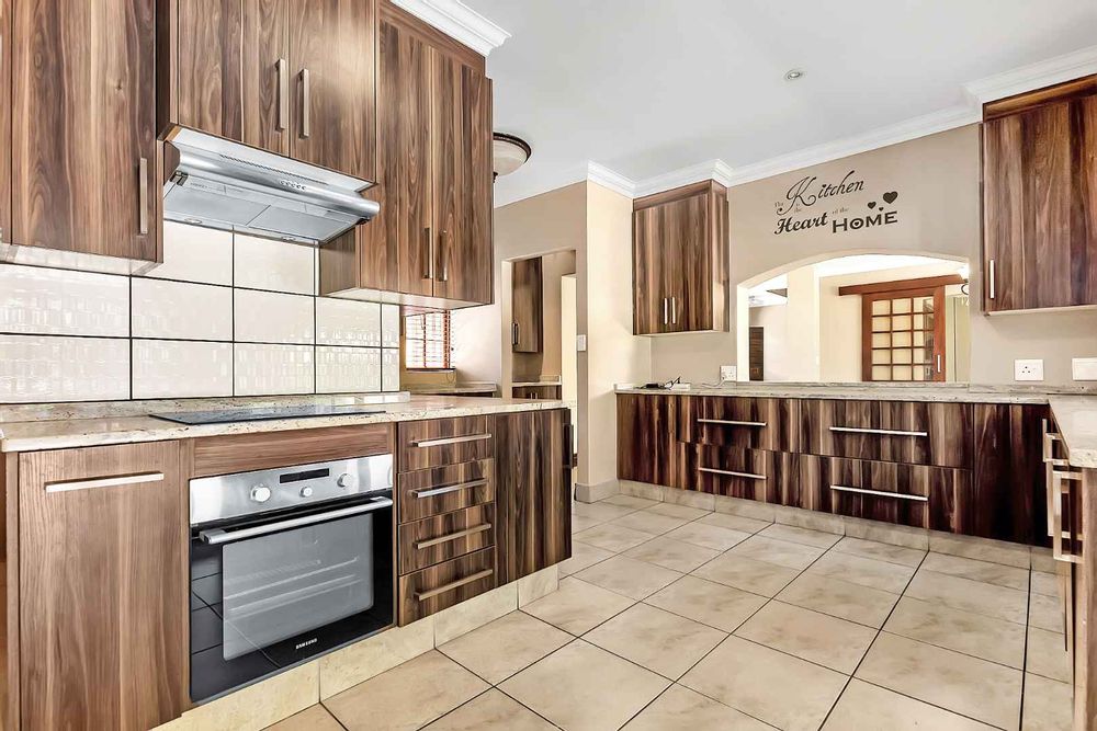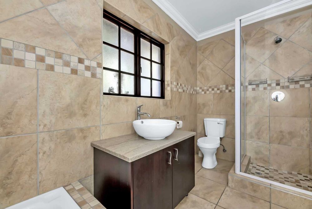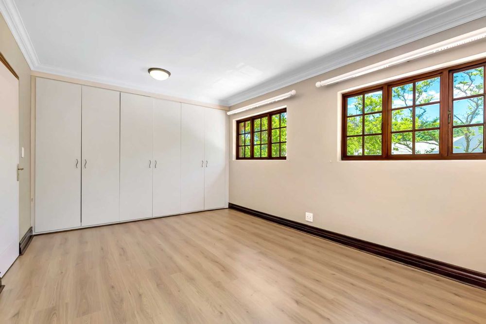 Spacious 4-bedroom home with cottage with good size private garden and large sparkling pool. Well, maintained and child friendly, this home has 3 flowing reception rooms. Family room opens onto private courtyard with water feature; lounge has wood burning fireplace. Dining room, kitchen and lounge all open onto covered patio which has ample space for entertaining friends. The spacious kitchen has solid wood cupboards, granite tops, loads of cupboards with separate scullery/laundry area.