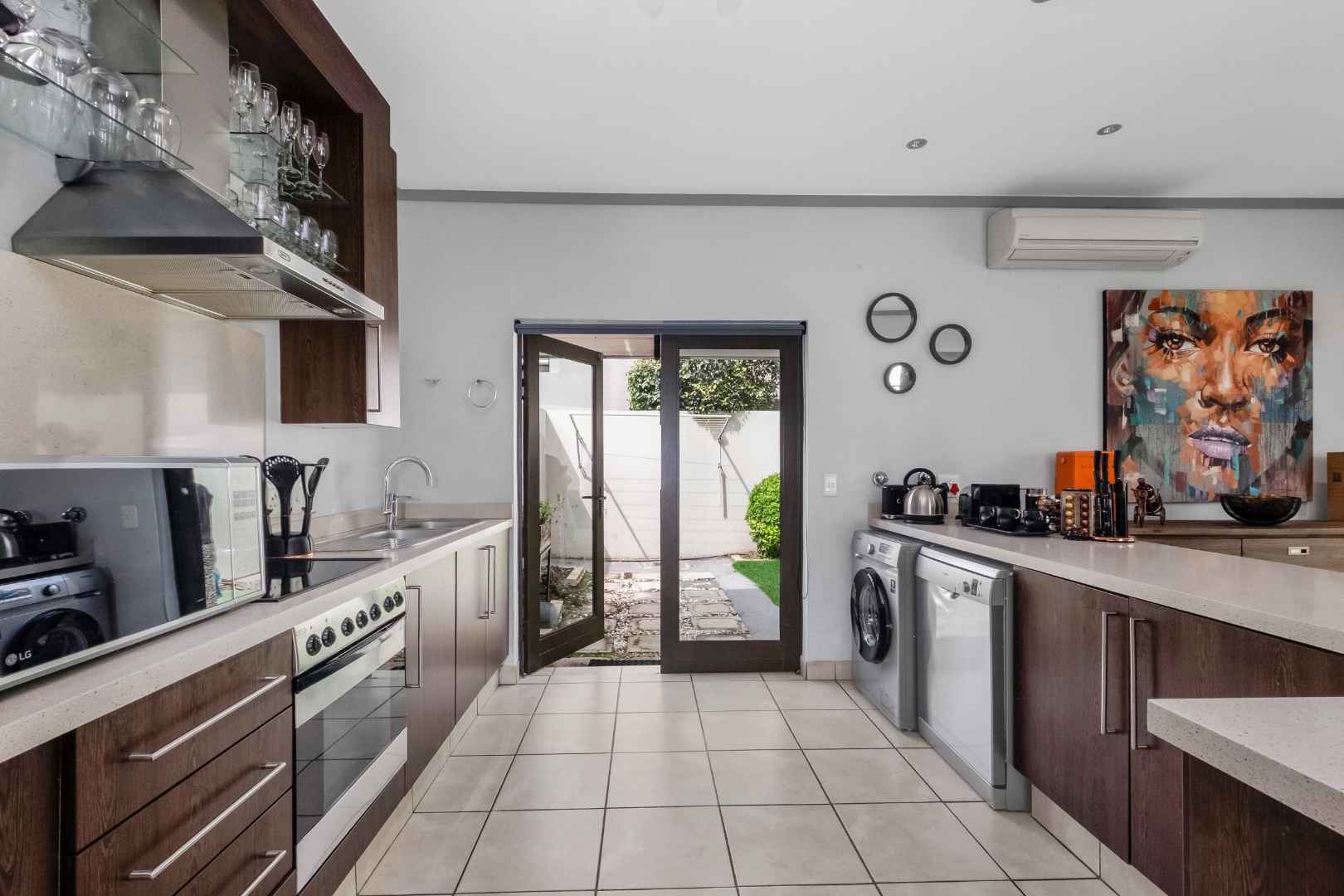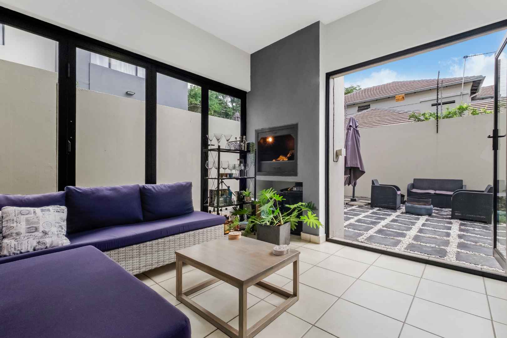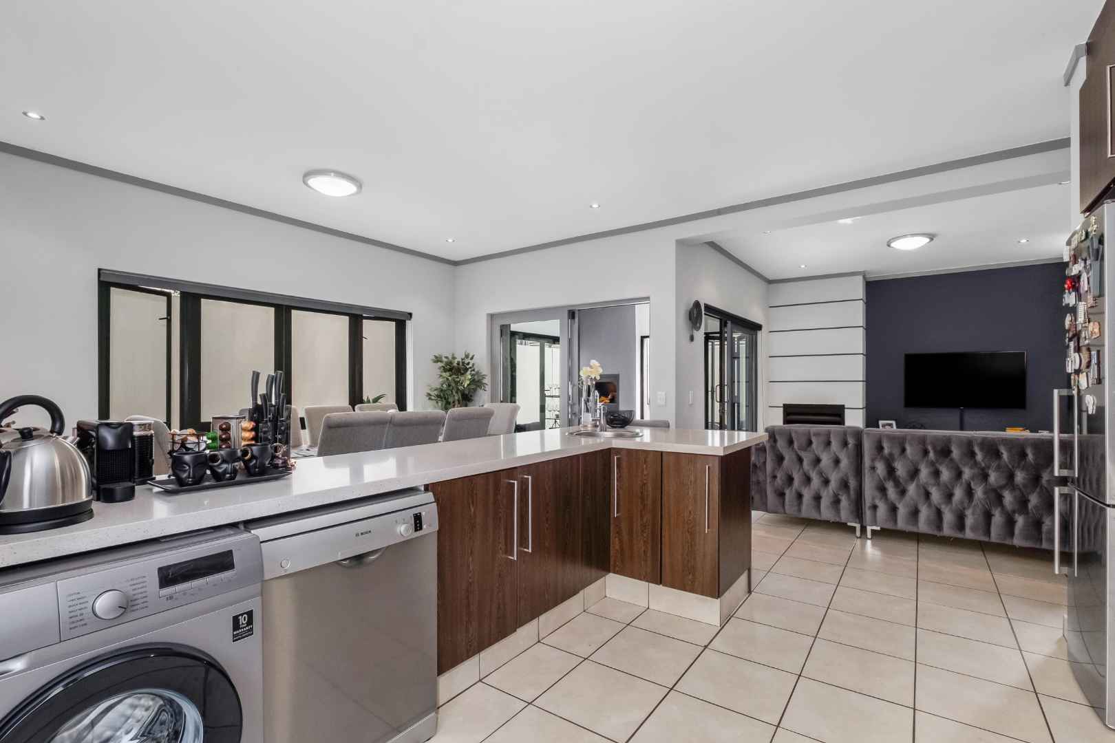 Embrace this delightful home with a modern feel throughout, in an exclusive and secure Tezula Lifestyle Estate in Fourways. The lovely entrance leads to the open plan family lounge with a feature fireplace and dining room flowing well onto a lovely fully enclosed patio with glass stackable aluminum doors and built in braai opening to a well-manicured garden with lawn for children and pets to enjoy. The modern chic style kitchen has Cesar-stone counter tops, a breakfast bar, ample cupboard storage, space for 2 appliances and access to the back garden.