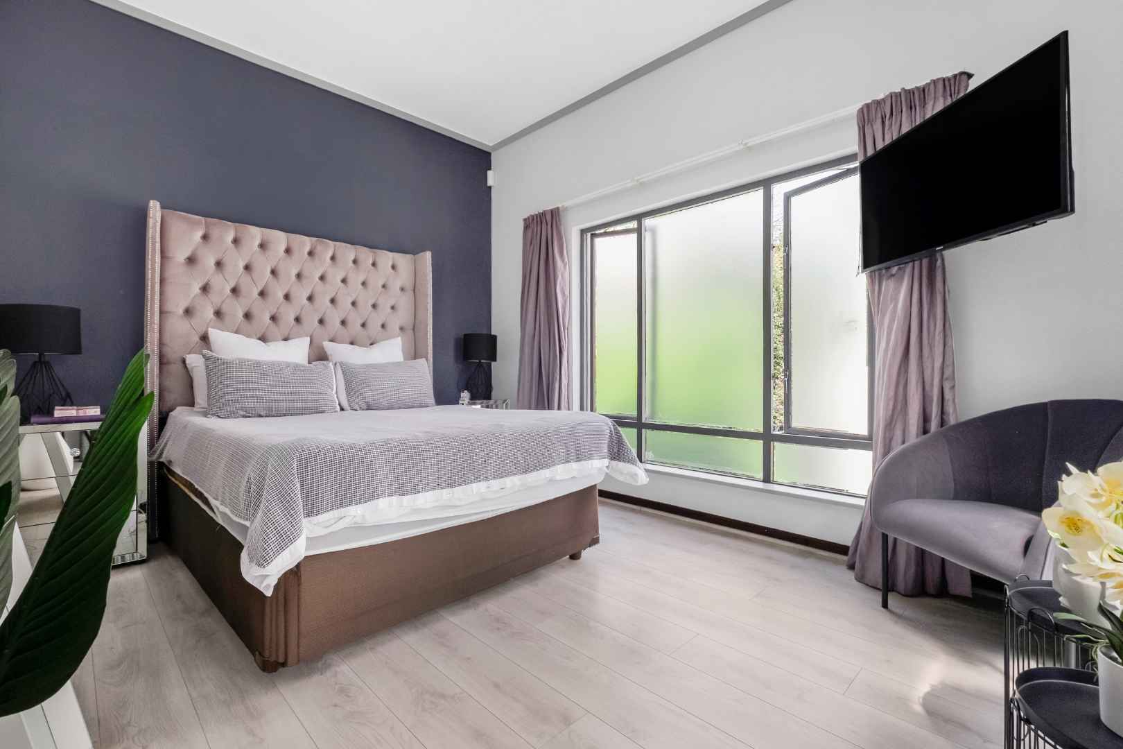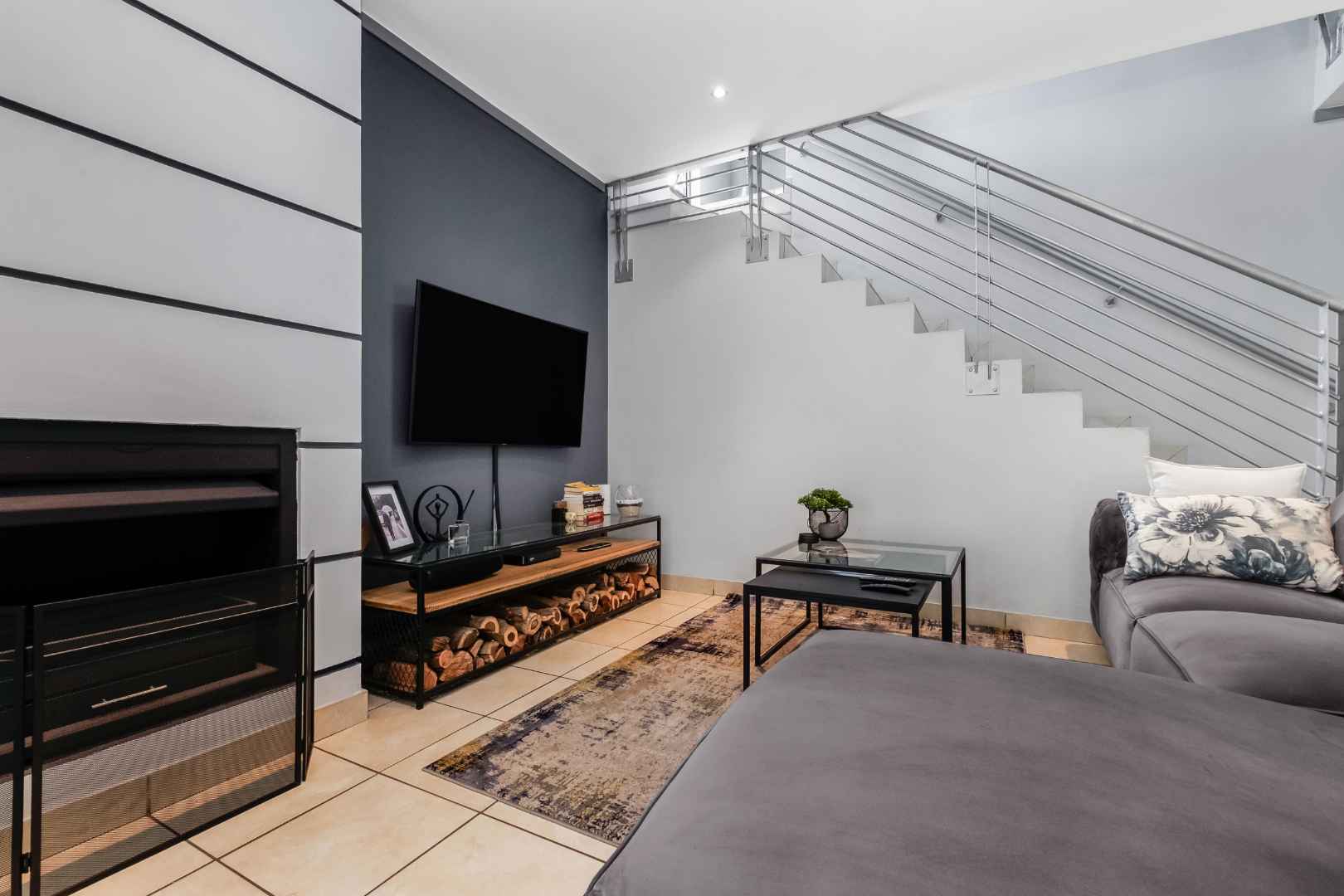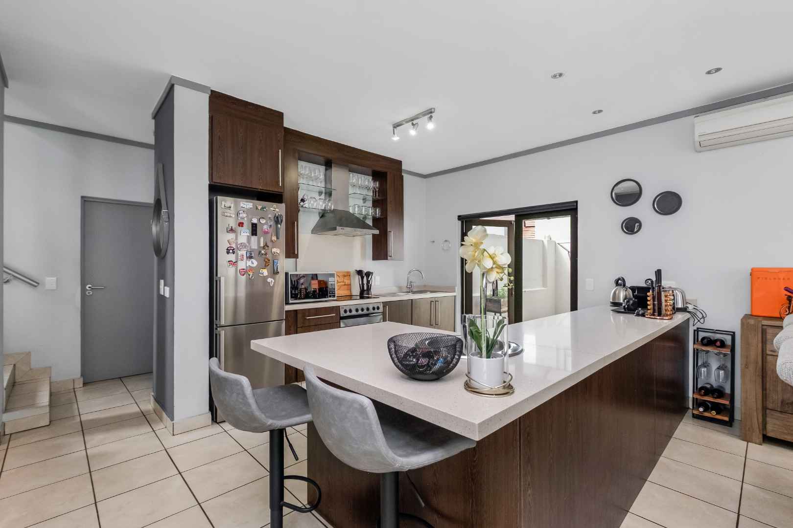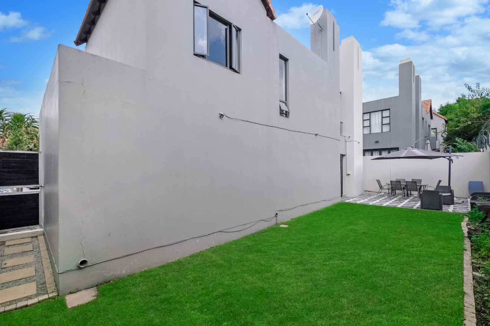 Embrace this delightful home with a modern feel throughout, in an exclusive and secure Tezula Lifestyle Estate in Fourways. The lovely entrance leads to the open plan family lounge with a feature fireplace and dining room flowing well onto a lovely fully enclosed patio with glass stackable aluminum doors and built in braai opening to a well-manicured garden with lawn for children and pets to enjoy. The modern chic style kitchen has Cesar-stone counter tops, a breakfast bar, ample cupboard storage, space for 2 appliances and access to the back garden.