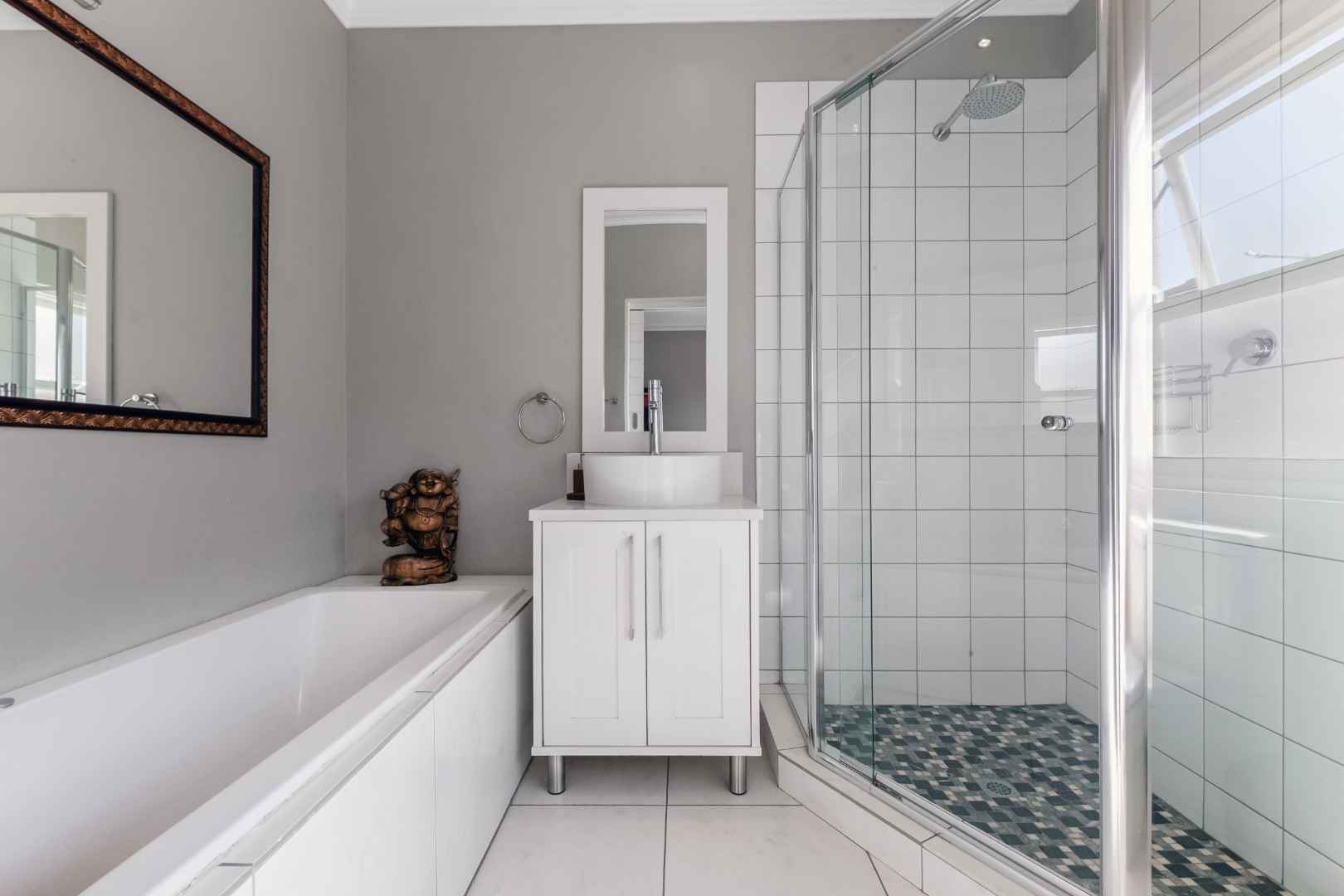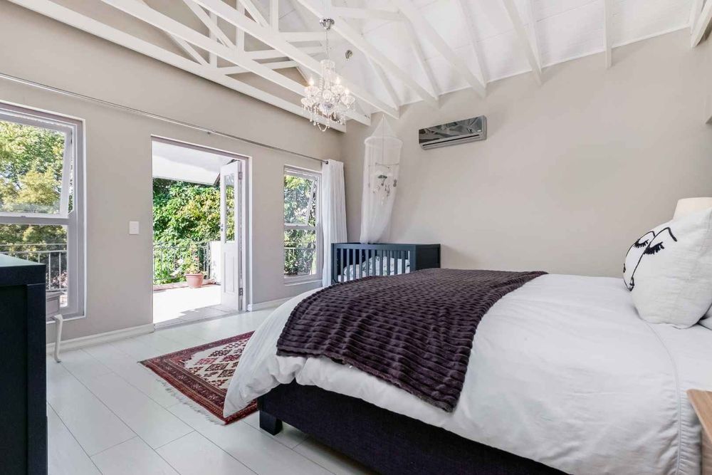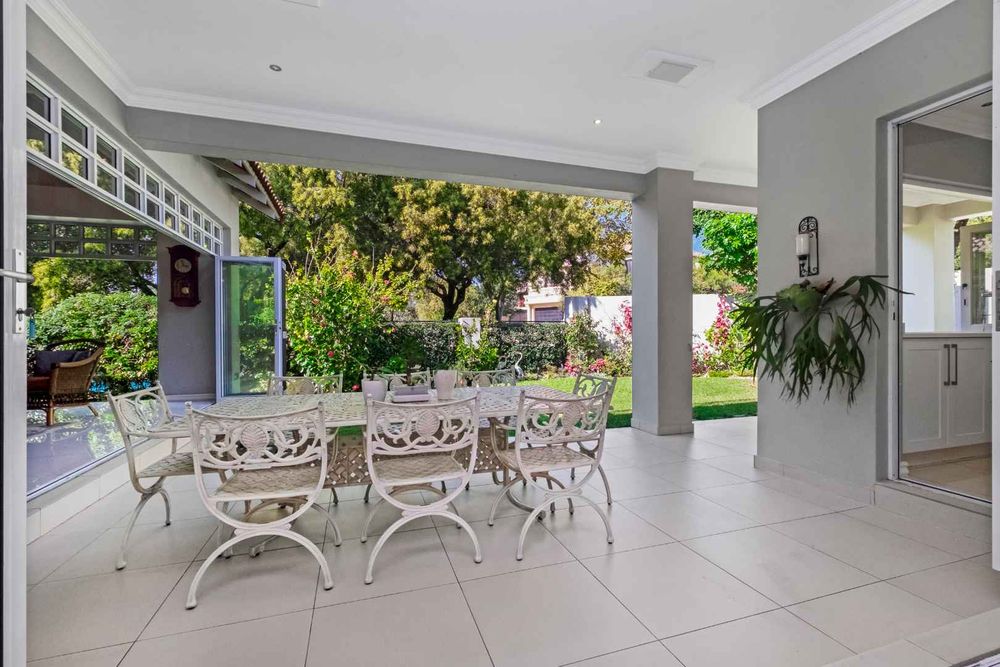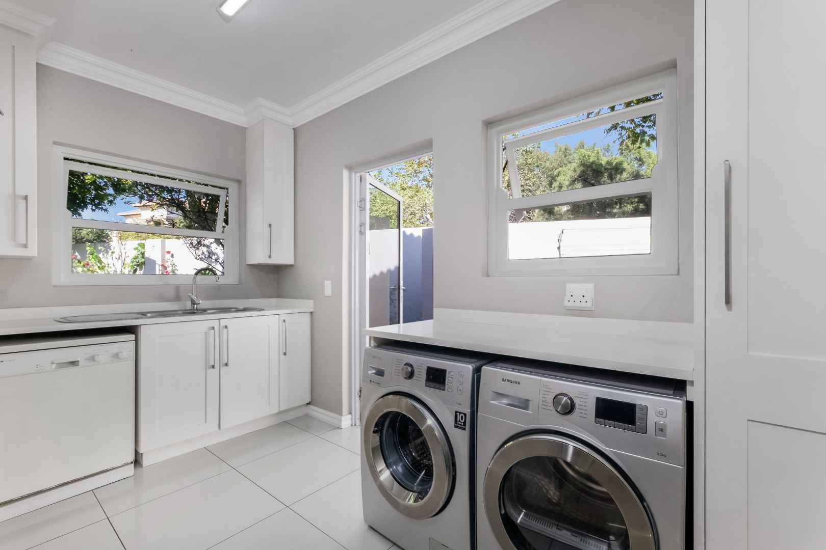 Inviting double volume entrance hall will set the tone of what’s ahead, it spills onto the open plan formal/family lounge and dining area all boasting surround sound - these reception areas together with the enclosed patio are designed for entertaining, hosting those parties and get togethers, opens onto a covered patio with gas braai, overlooking the manicured private garden. The upgraded modern kitchen is designed for convenience and has Caesarstone countertops, a massive breakfast bar / middle-island with a, gas hob, an electric oven and extractor fan, filter tap prep bowl, double door fridge space, separate scullery area which can accommodate all your under counter appliances, plus ample built in cupboard space. The kitchen scullery opens onto a backyard with JOJO water tanks that boost into the home with a pump. The downstairs floor plan also consists of a classy air-conditioned wine cellar, plus a guest suite which enjoys its own private garden and en-suite bathroom.