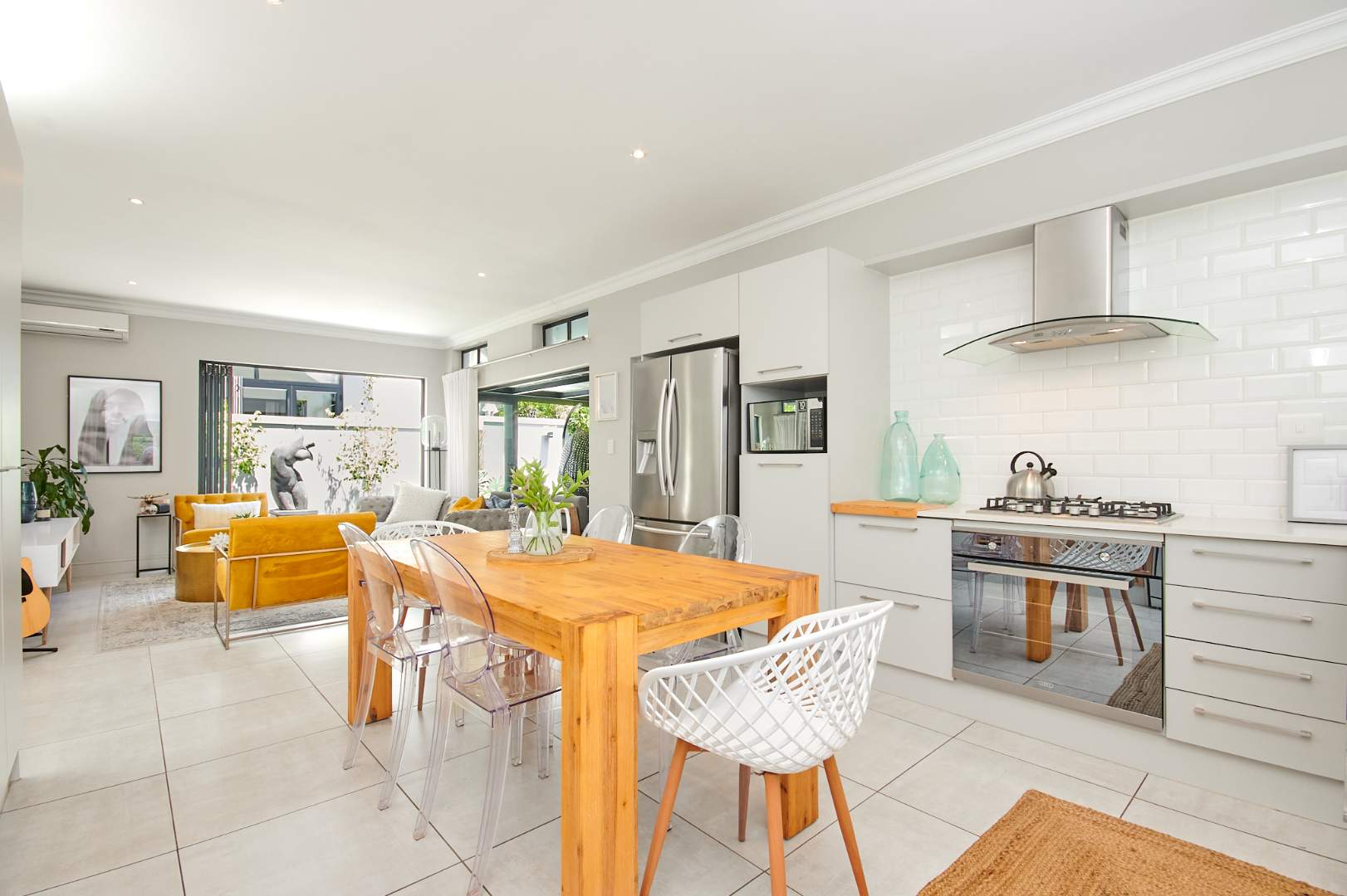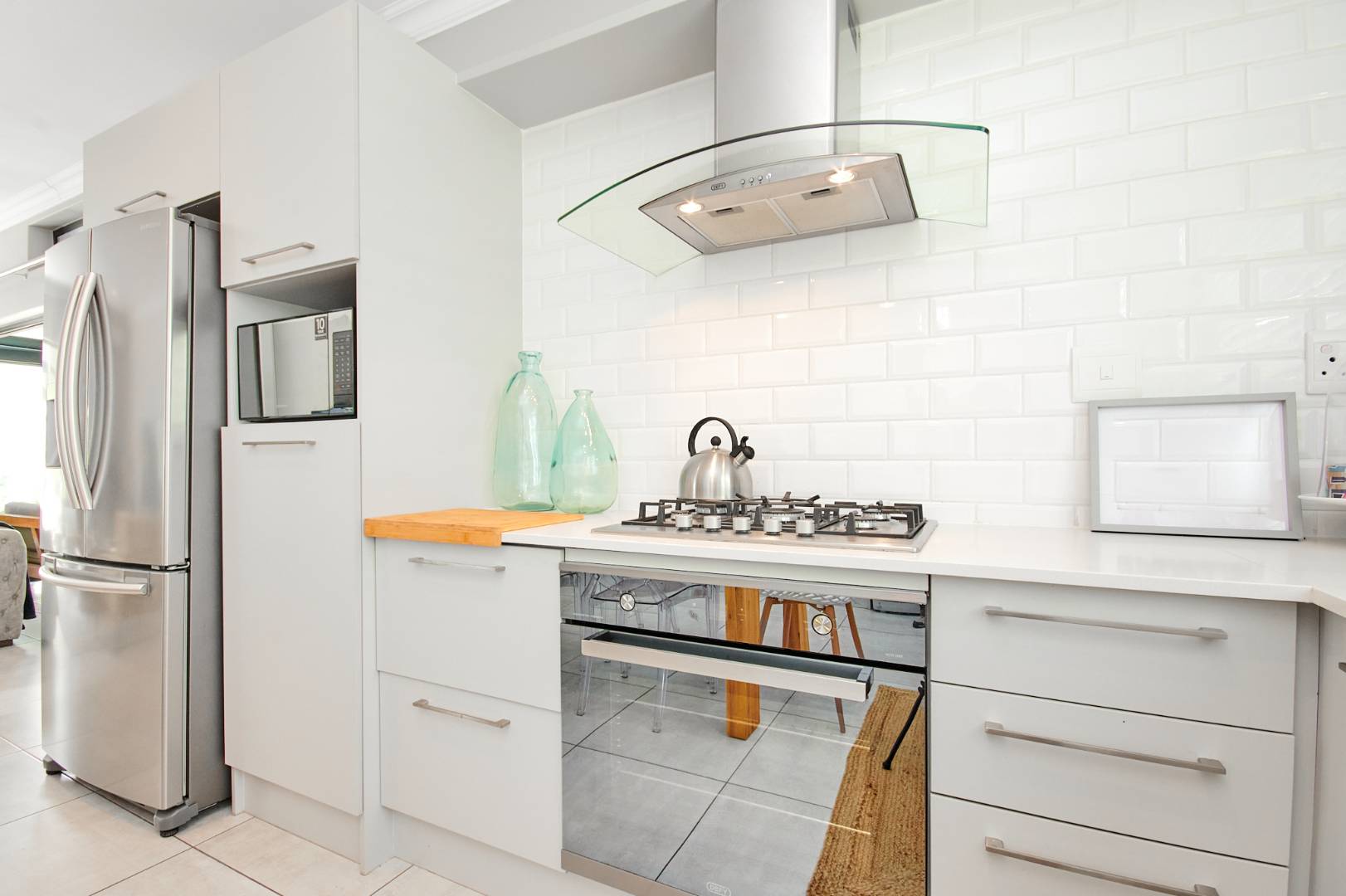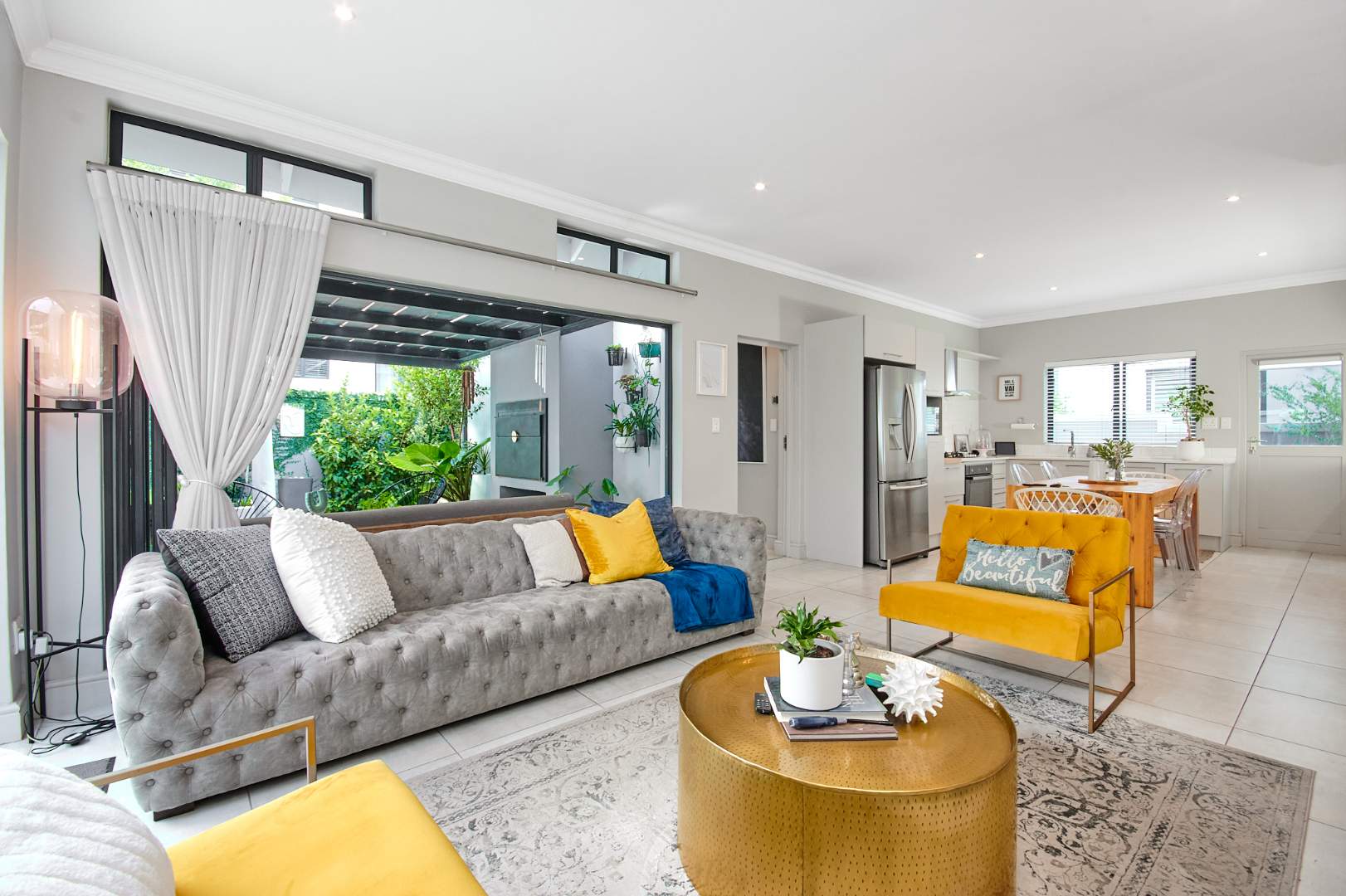 In a class of its own this stunning home defined by its attention to detail and quality modern finishes is situated in secure The Avenues on Broadacres located in the popular upcoming Broadacres area. Upon entering this delightful home, the welcoming entrance hall takes you to a light and bright air-conditioned reception room with stacking doors opening to a covered patio with a built-in braai overlooking a lush garden. The well-appointed open plan modern kitchen offers a clutter free space to relax and entertain and has a gas hob and oven, Cesar-stone tops, space for 1 appliance, ample cupboard storage and space for a double-door fridge.
