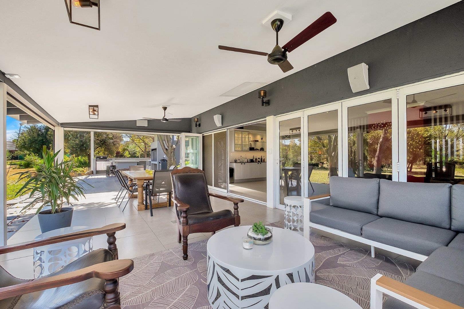 This family treasure trove offers the following: Triple automated garages with direct access into the kitchen, 11 shaded carports, ample parking space for your visitors, partial air-conditioning and underfloor heating, LED lighting throughout, double glazed windows in the bedrooms and entertainment area, solar geyser in the main home, full alarm system with 15 cameras linked to your smart devices and TV, external beams in the garden, 40 KVA generator, 15000 liter water backup storage, grey-water recover system used to irrigate the garden, 2 deluxe staff suites, 3 income-generating cottages plus the entire property is fibre-enabled.