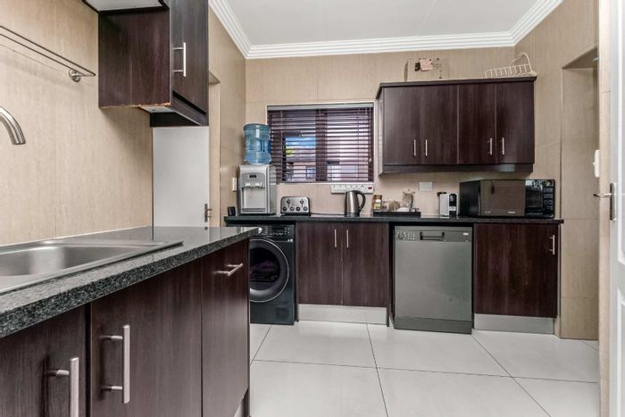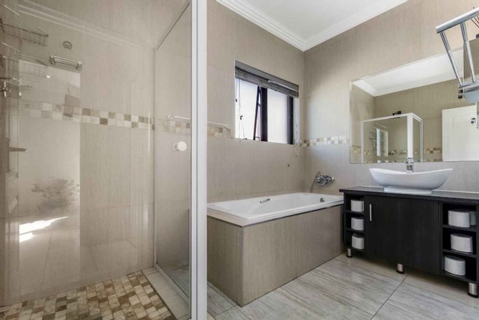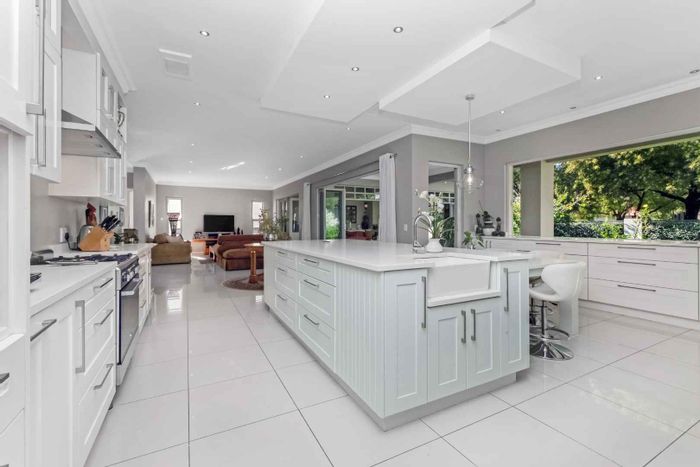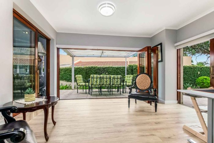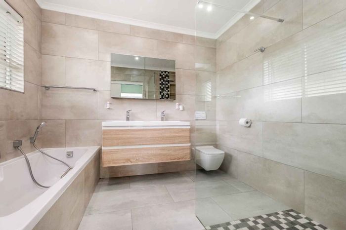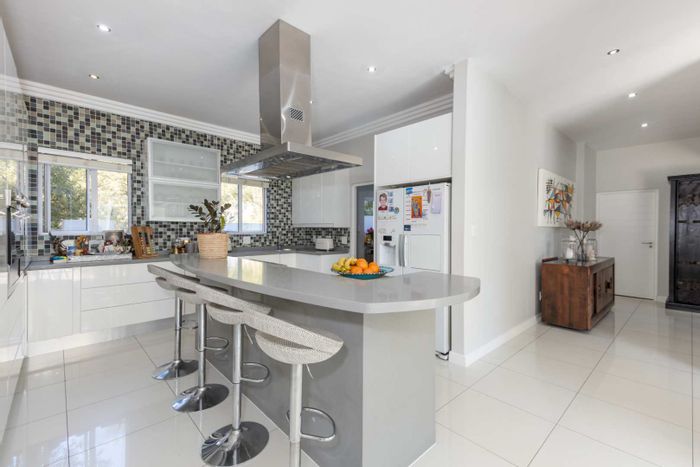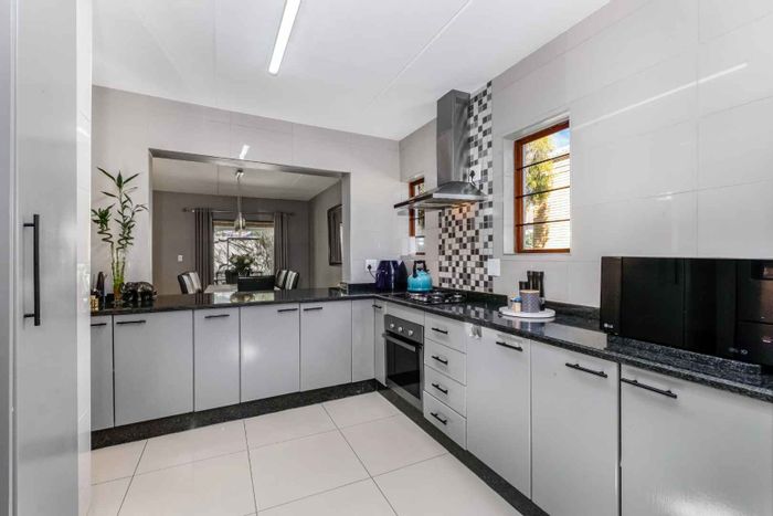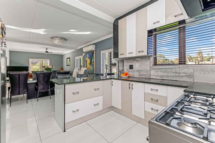 Entertainer's haven in family-friendly Dale Gardens, featuring a wrap-around irrigated garden, braai patio and Caesarstone island kitchen; 4-bedroom, 3.5-bath home includes solar panels, AC and automated double garage.