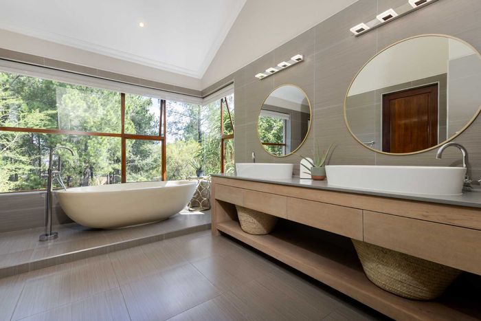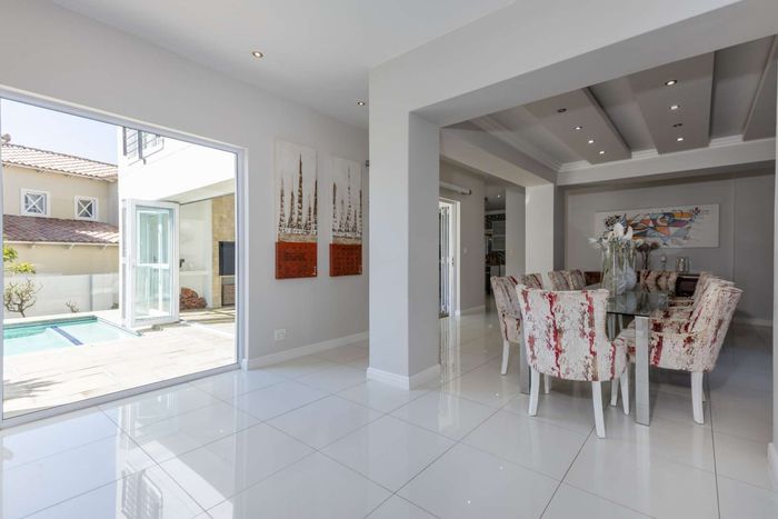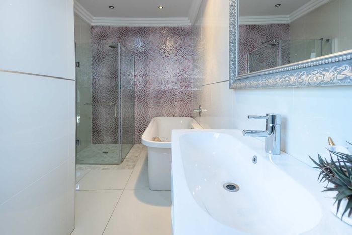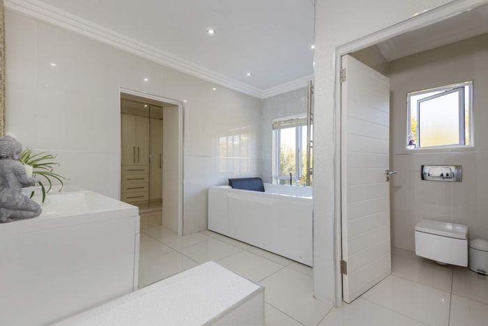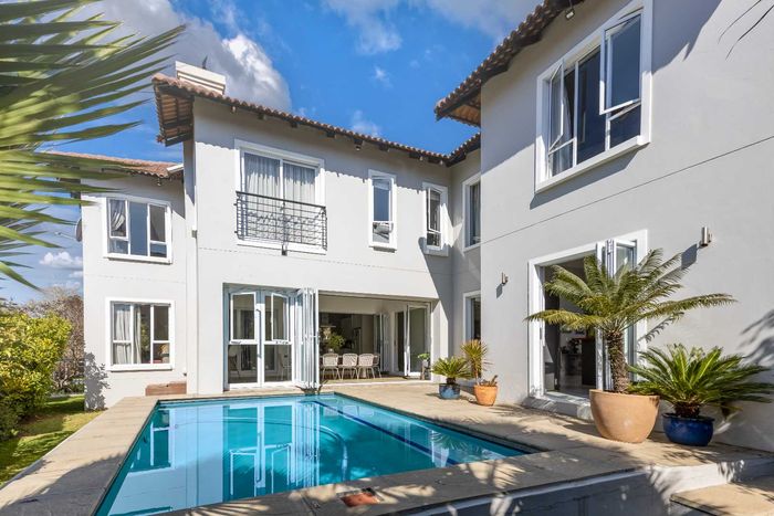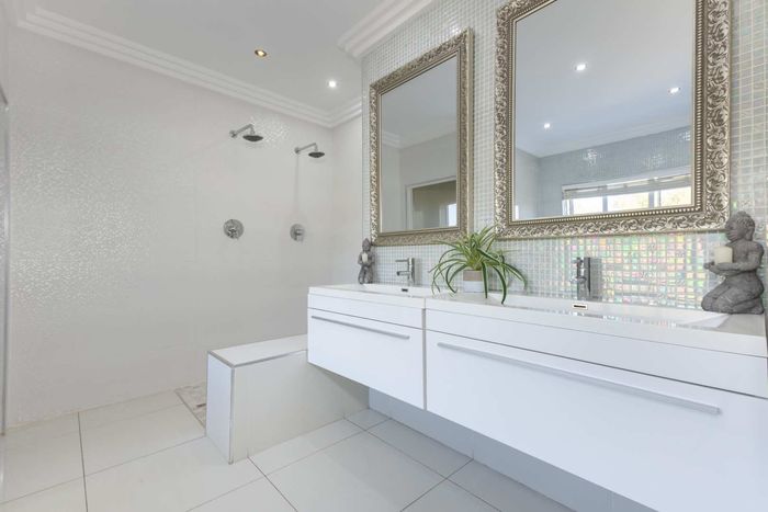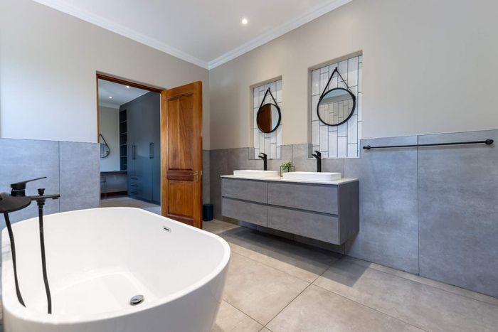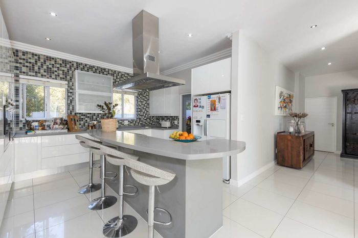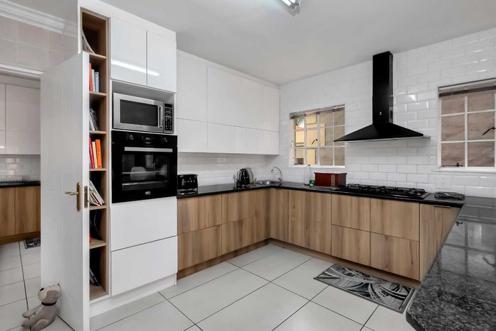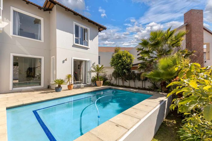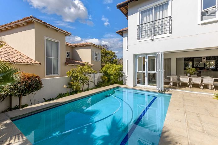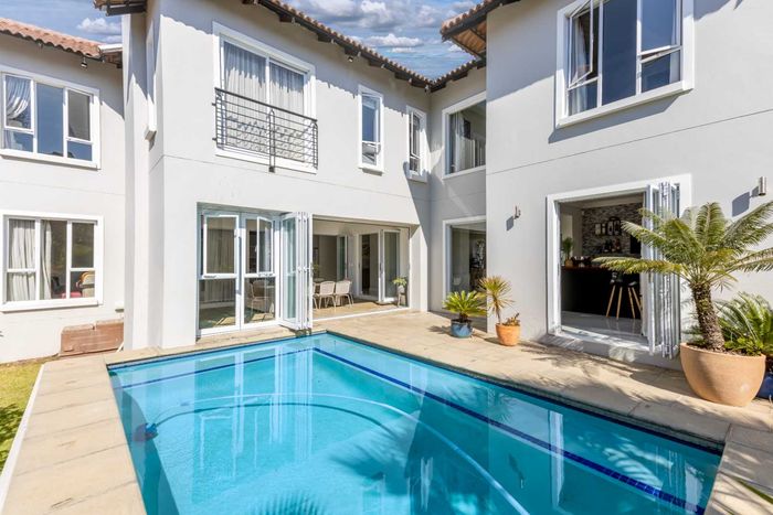 Entertainer's dream in Hawthorn Village secure estate, with parks and family amenities — gourmet Caesarstone kitchen, fitted pub, wrap-around garden and pool; four bedrooms, 4.5 baths, double garage.