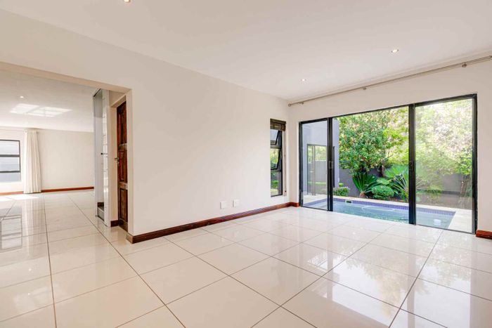 Freestanding property in Bryanston with three en-suite bedrooms, spacious garden, pool, and secure features. Ideal family home.