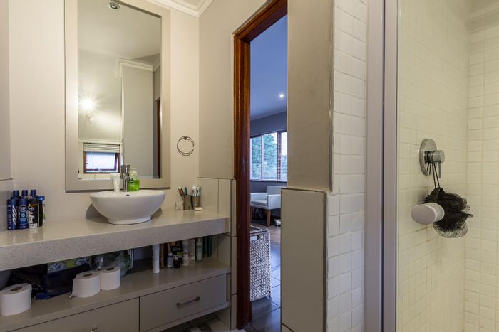Resort-style family living in The Fields South Estate, steps from Dainfern Square; open-plan living with gourmet kitchen, dedicated staff accommodation, three en-suite bedrooms, 3.5 baths and double garage.