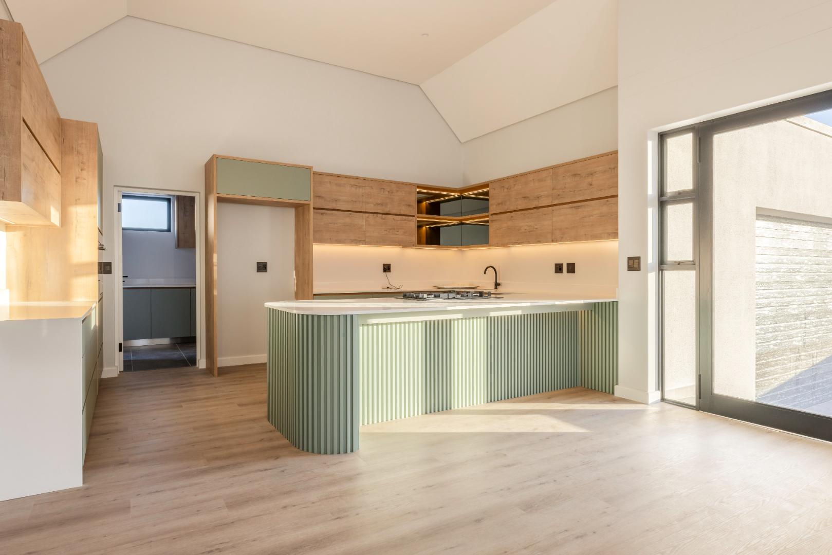 Designed with modern family living in mind, the home features three spacious en-suite bedrooms that all open to the outside, a separate study that can easily be converted as a fourth bedroom, and a fourth bathroom for added flexibility. The open-plan living areas create a seamless flow between the kitchen, dining room, and lounge, ideal for entertaining and everyday living. A separate scullery and double garage with direct access into the home offer practicality and convenience. The kitchen boasts a large centre island with gas hob, two eye level ovens, double door fridge space and prep bowl. The scullery includes three under counter appliances, a walk in pantry and access to the back garden.