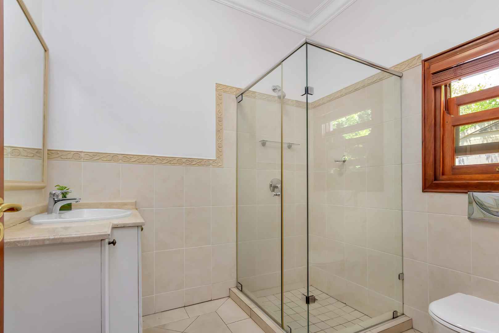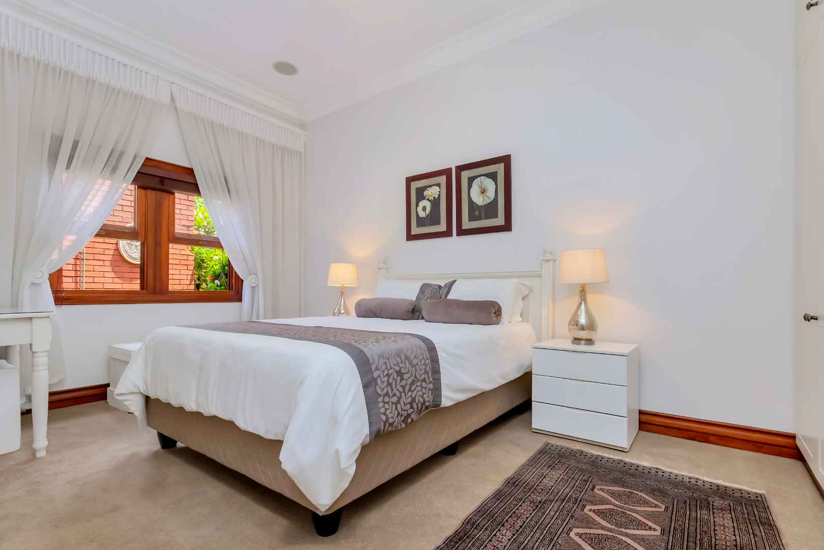 Down the passage to the bedrooms you will be amazed by the size of the 4 bedrooms, each enjoying their own en-suite bathrooms. The sun shine filled master bedroom is eye-catching and intimate with a gorgeous outlook of the pool and garden. The master en-suite bathroom will give you the ultimate sense of peace and relaxation, plus a well organised walk-in dressing area - any couple would wish for.