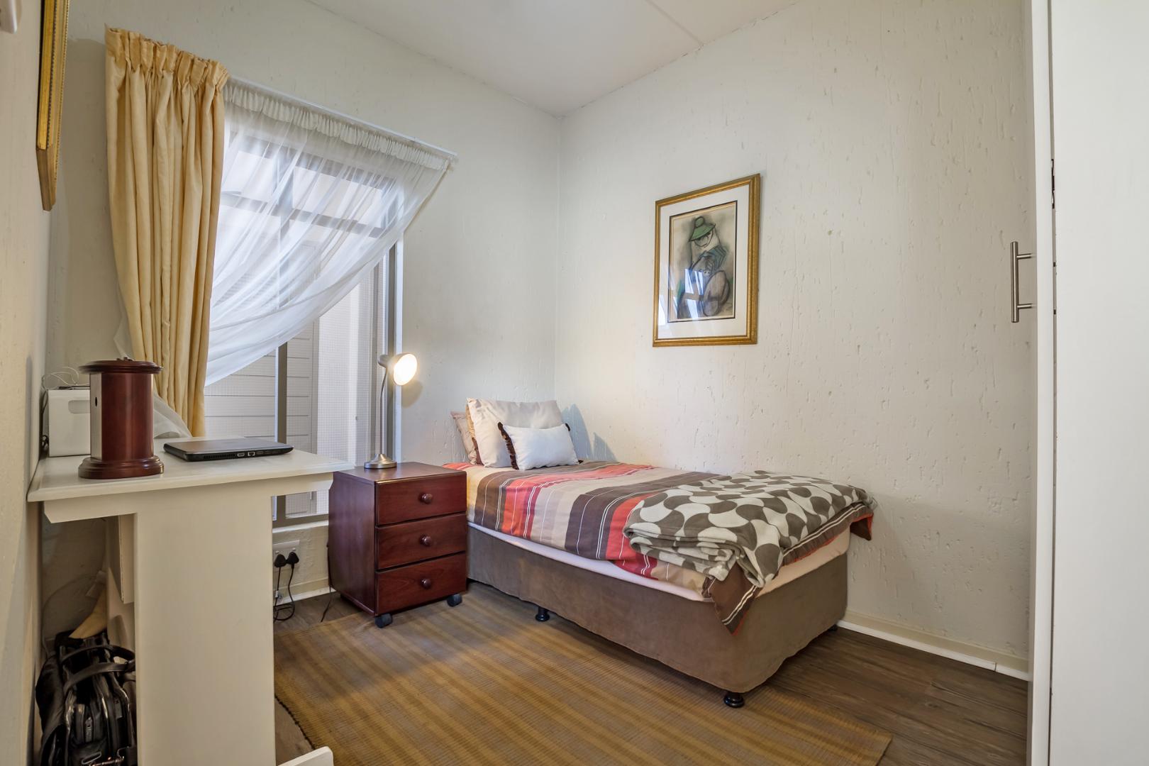 This lovely spacious and immaculate unit in an upmarket complex, offers an open plan lounge that opens up onto a balcony. The modern eat-in open plan kitchen with granite counter tops has space for 2 under-counter appliances and single door fridge. 2 Light and bright bedrooms plus a full bathroom.
