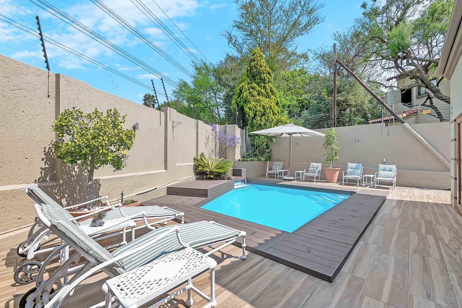 This beautiful residence offers the following: Double automated garage with direct access into the home, ample parking space for your visitors, inverter battery backup system to assist the home during power outages, staff accommodation, rain water harvesting water tank, garden tool shed, storeroom / laundry room plus the home is fibre enabled with 5G fibre.