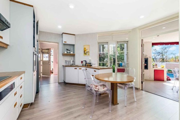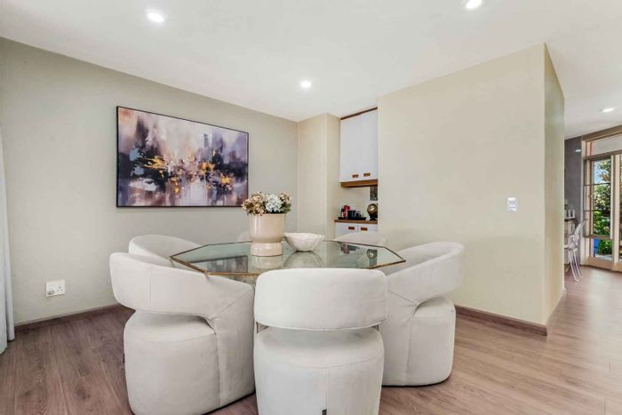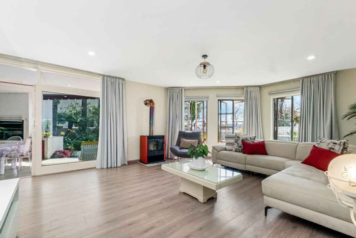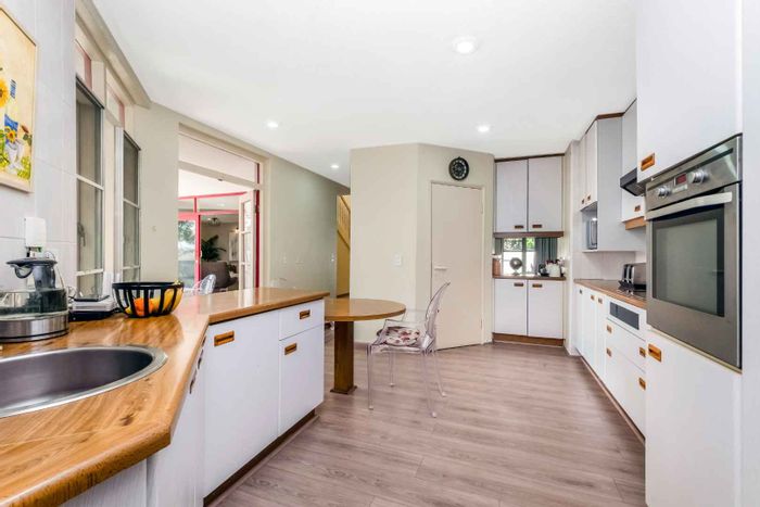 Step inside and you will instantly fall in love, this home has great spaces, loads of natural light oozing in and a feeling of being HOME......... An inviting entrance lures you onto a open plan formal lounge and dining area, spilling onto a covered patio which faces the established manicured garden and sparkling swimming pool – an ideal home for both indoor and outdoor living and entertaining. A cosy and spacious family lounge is a room to simply relax and unwind. Awe-inspiring open plan kitchen boasts Caesarstone countertops, breakfast bar, prep-bowl, a walk-in pantry cupboard, 4 plate gas hob with electric oven and extractor fan, double door fridge space, a separate scullery that can accommodate 3 appliances, plus ample built cupboards. The scullery opens on a kitchen courtyard – a great spot to get your herb garden going. A guest cloakroom is neatly tucked away.