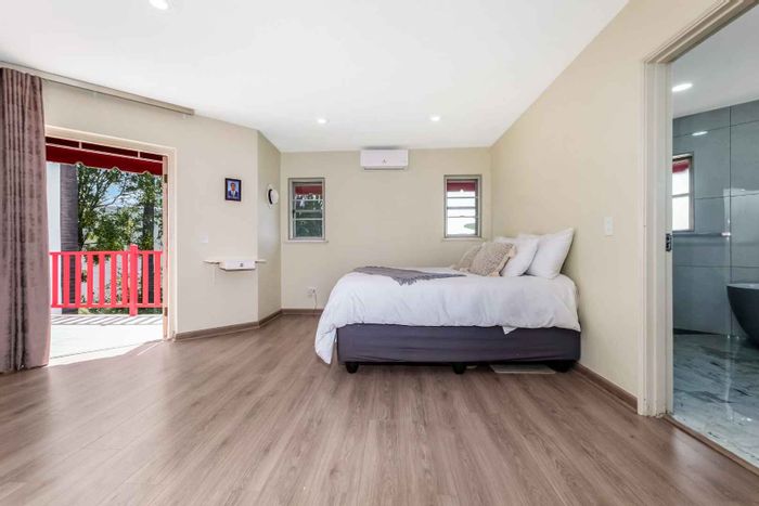 This beautiful residence offers the following: Double automated garage with direct access into the home plus ample parking space for all your visitors, deluxe staff accommodation (could also be utilised as a studio pad / office), partial air-conditioning, TESLA invertor with solar panels, security alarm system plus the home is fibre enabled.