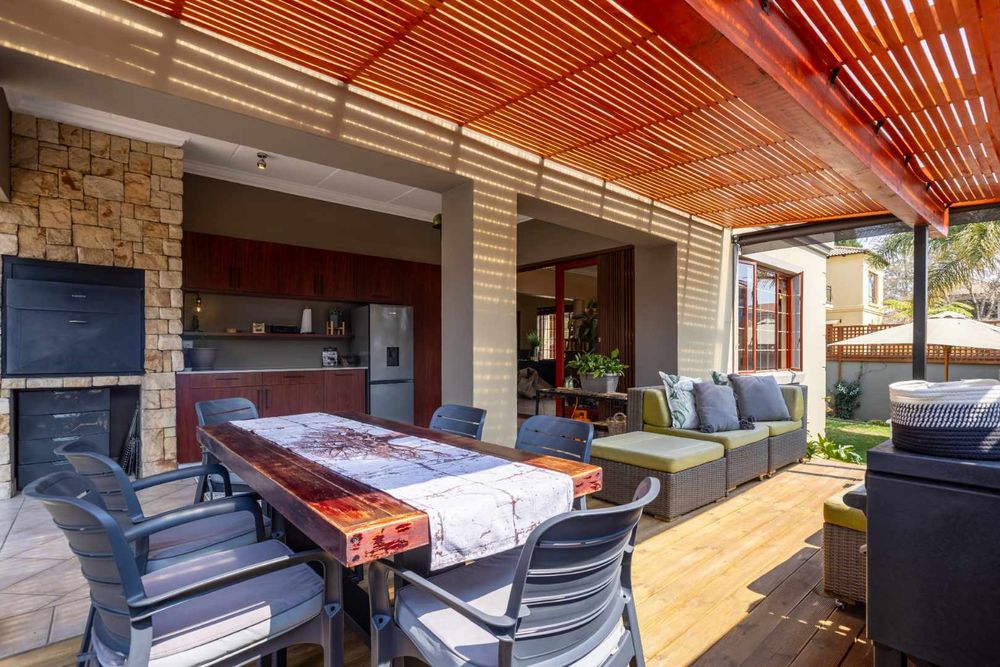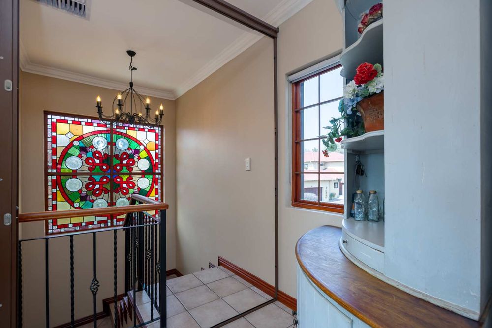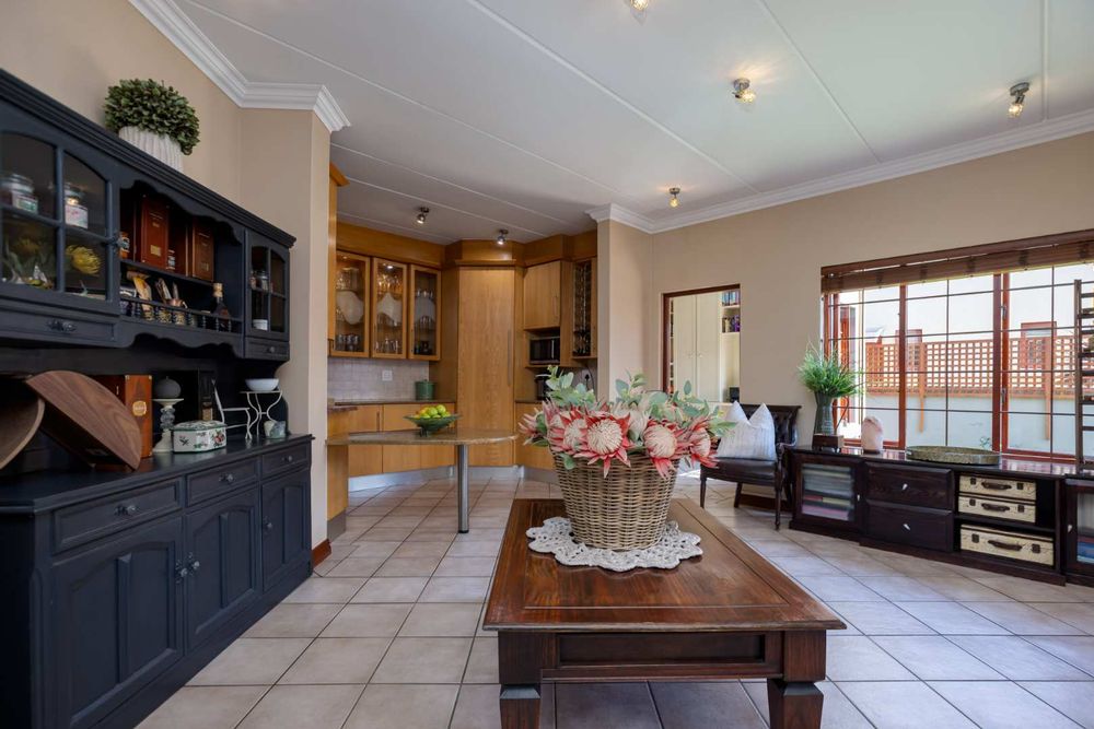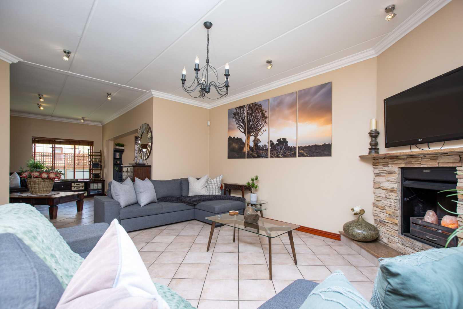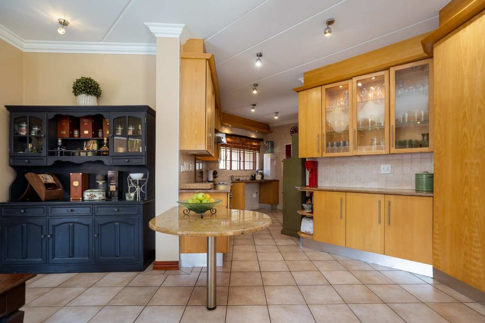 This dream residence will make you feel warm, fuzzy with a little bit of butterflies as you enter , where you will very quickly understand the love and pride the current owners have for their home. Welcoming entrance hall flows onto the open plan formal lounge with wood burning fireplace. The family lounge and dining area spills onto the covered patio with built-in braai, overlooking the sparkling heated swimming pool and irrigated garden. A fabulous home for indoor and outdoor entertaining all year round. Awe-inspiring open plan kitchen with granite countertops, breakfast nook, double door fridge space, electric stove, oven and extractor fan, walk-in pantry, separate scullery with under counter space for your appliances, plus ample built-in cupboards. A fitted study with 2 work spaces is ideal for a work from home office, allowing you the uninterrupted quiet time you need to get through your work load. The guest cloakroom is neatly tucked away and completes the downstairs floor plan.