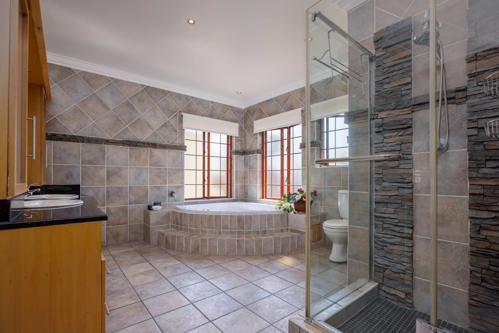This beautiful residence offers the following: Double automated garage with direct access into the kitchen scullery, double covered carport, ample parking space for your visitors, UPS with batteries to assist with power outages, 2 backup water tanks, partial under floor heating, evaporative cooling system, attic space in the garage for extra storage, deluxe staff accommodation or laundry space, 5 built-in linen cupboards, plus the home is fibre enabled.