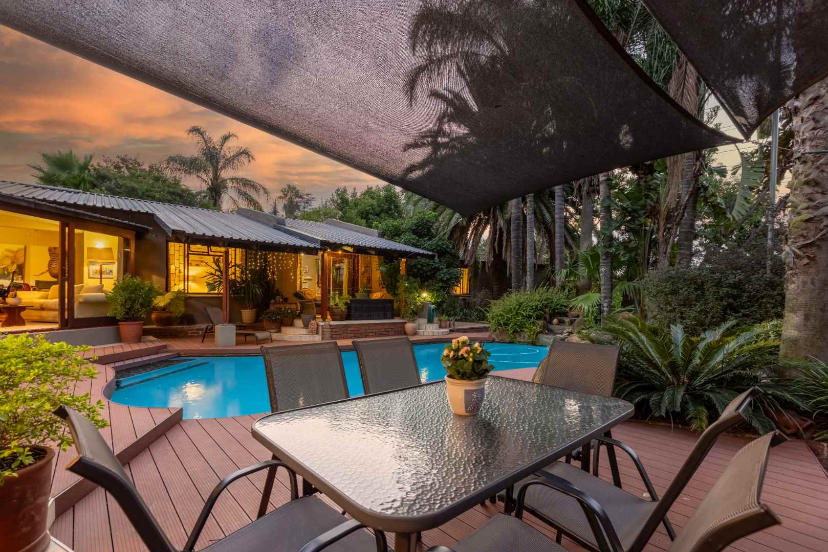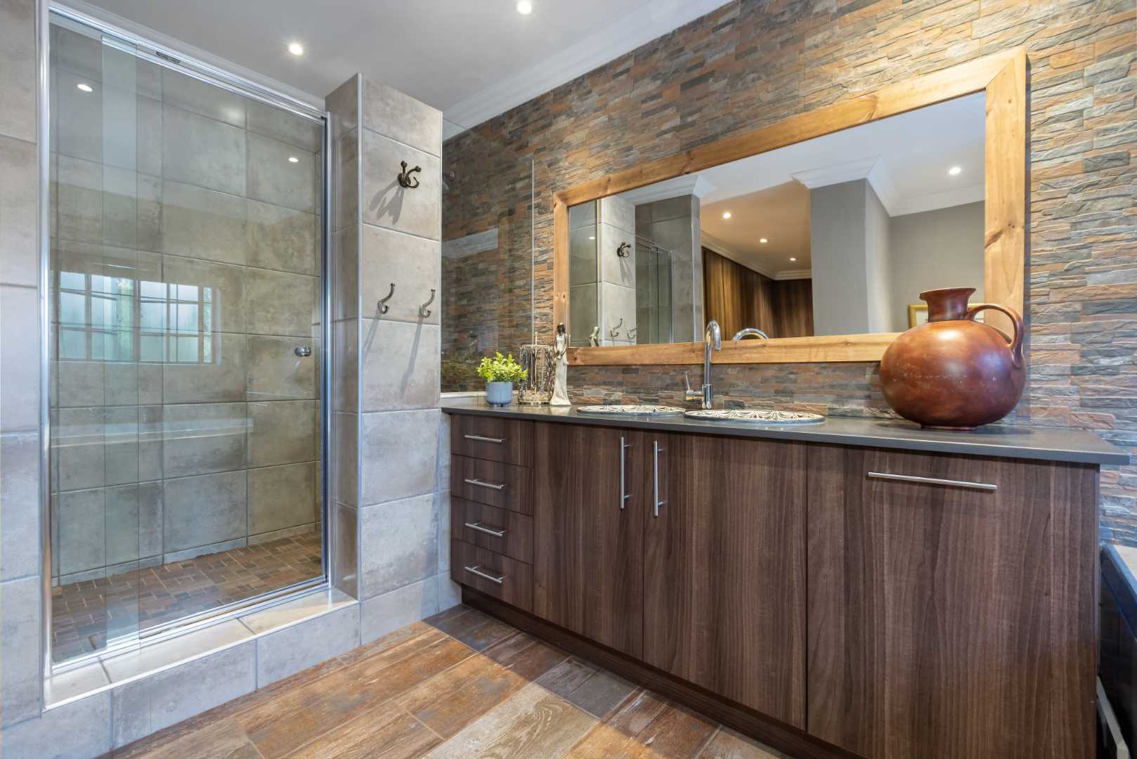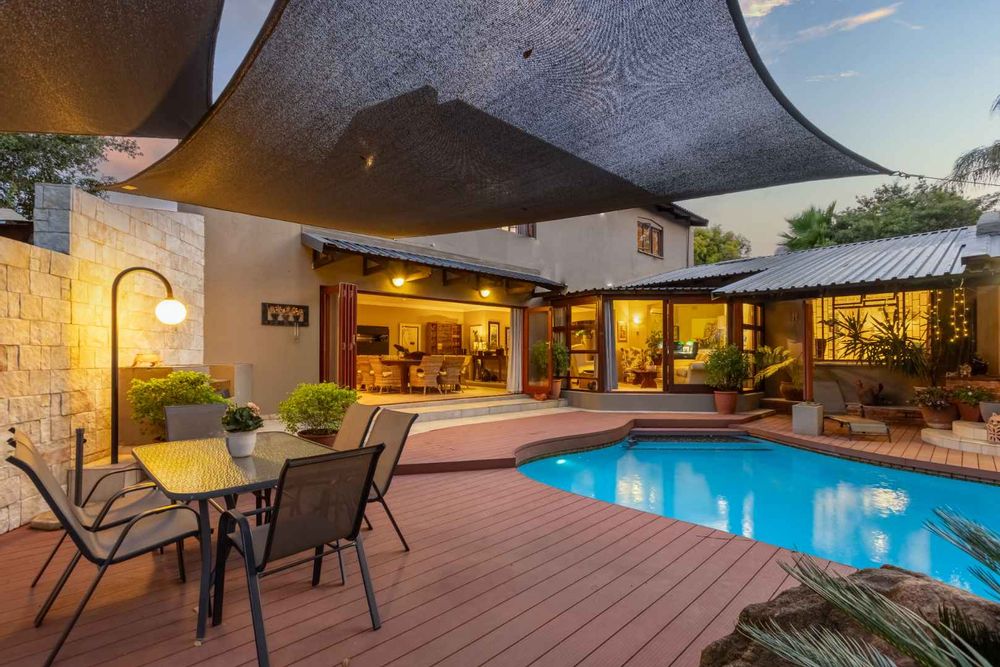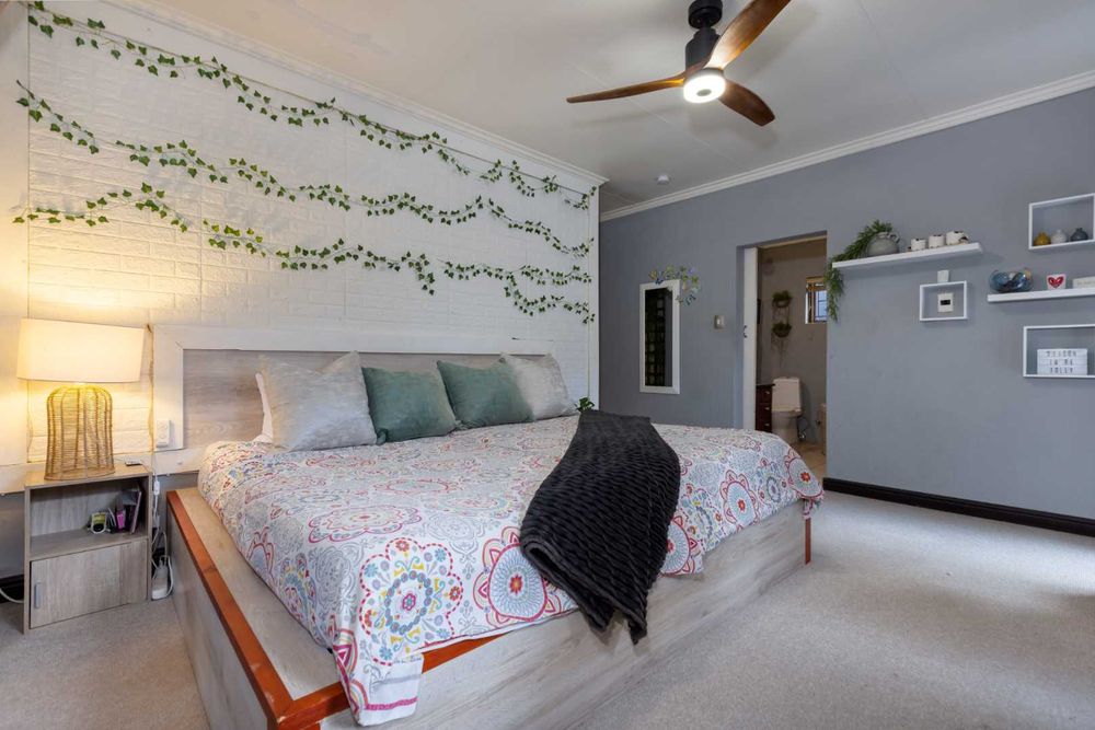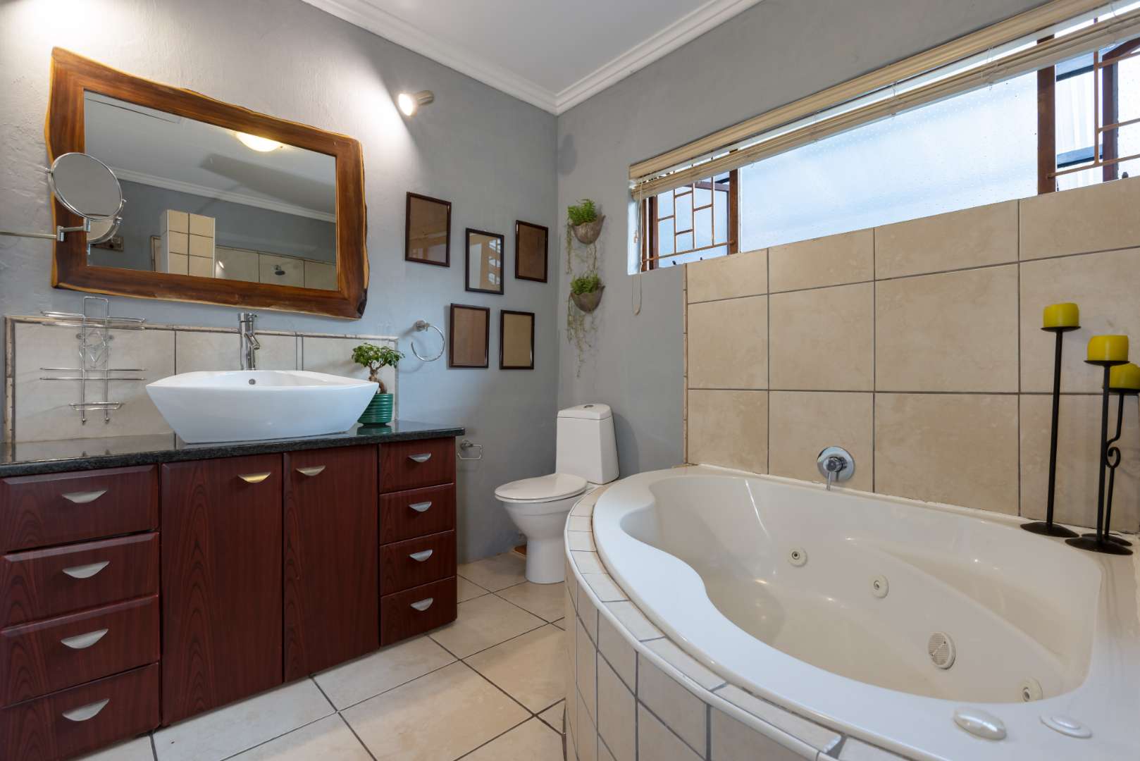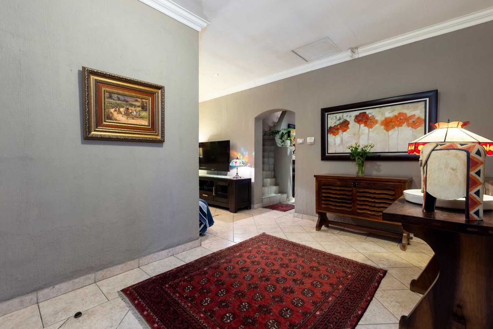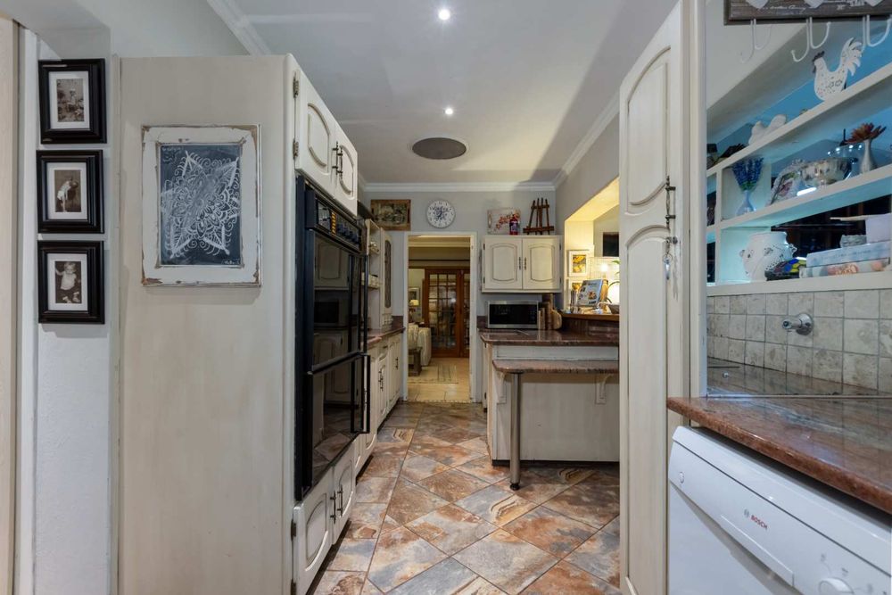 This must-see residence offers the following: Double automated extra-length garages with direct access into the home, ample parking space for your visitors, attached workshop/extra storage space onto the garage, double covered carport, inverter battery backup system with 10 solar panels and 1 lithium battery which assists the home during power outages, jacuzzi, deluxe staff accommodation plus gardeners loo, solar and electric geyser, storage/tool space plus the home is fibre enabled.