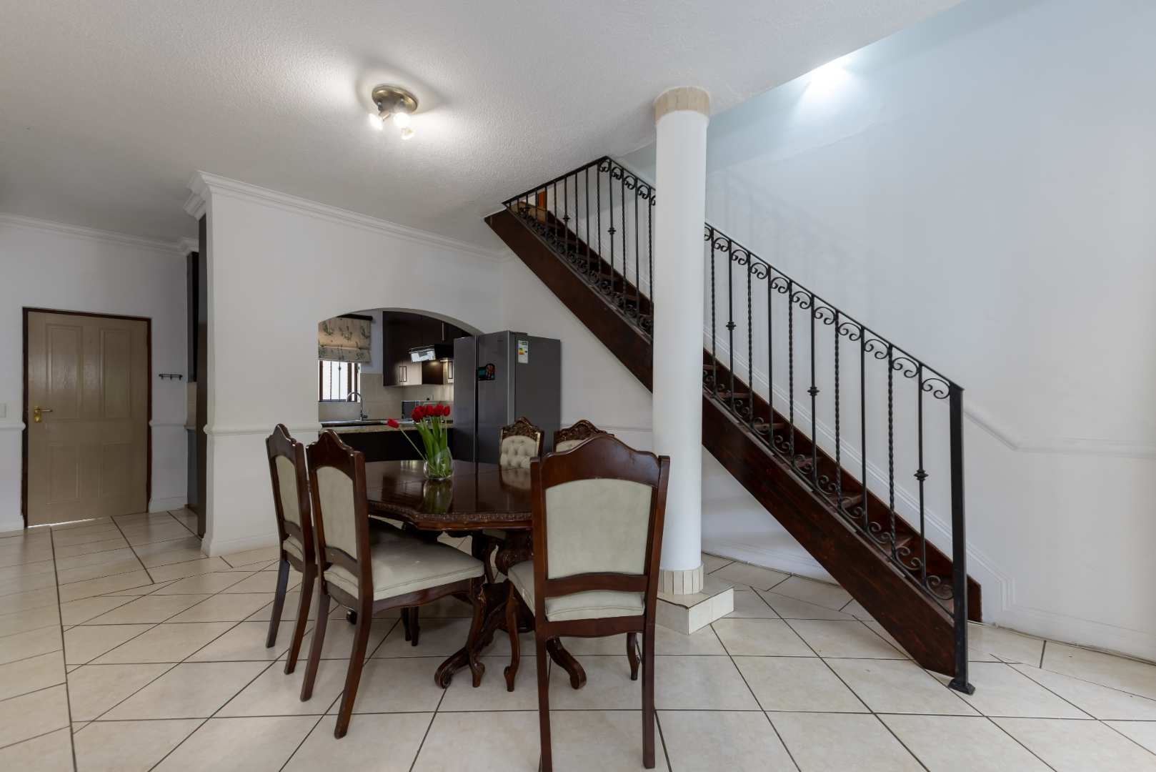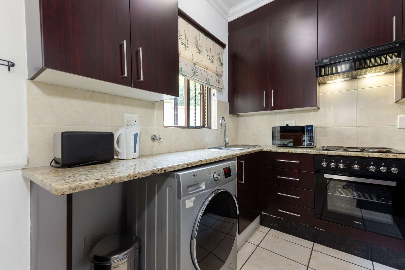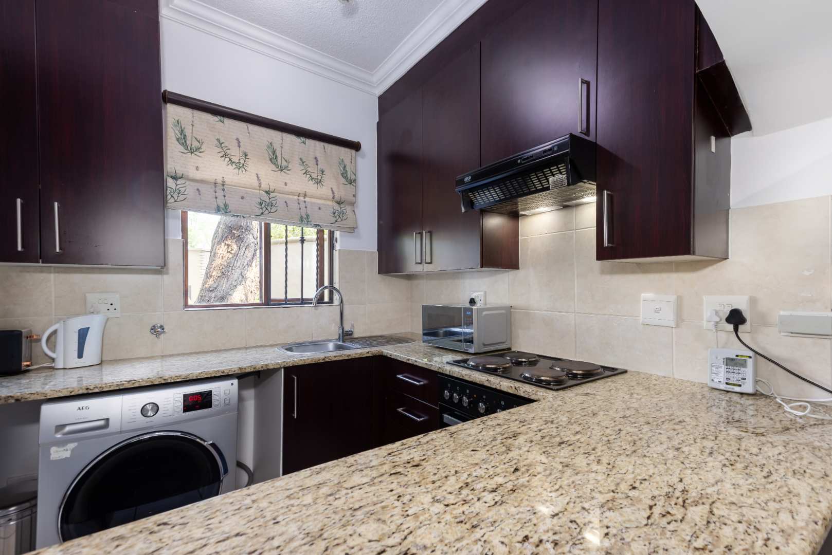 A welcoming entrance walking up to the unit, opens onto an open plan lounge that opens onto an outside atrium. The dining area spills onto the covered patio, overlooking the private garden. A sizeable kitchen with breakfast bar, single door fridge space, electric stove and oven plus extractor fan, under counter space that can accommodate 2 appliances, plus ample built-in cupboards. The downstairs floor plan is complete with a sun-filled bedroom with a bathroom with a shower. This bedrooms opens onto the garden.