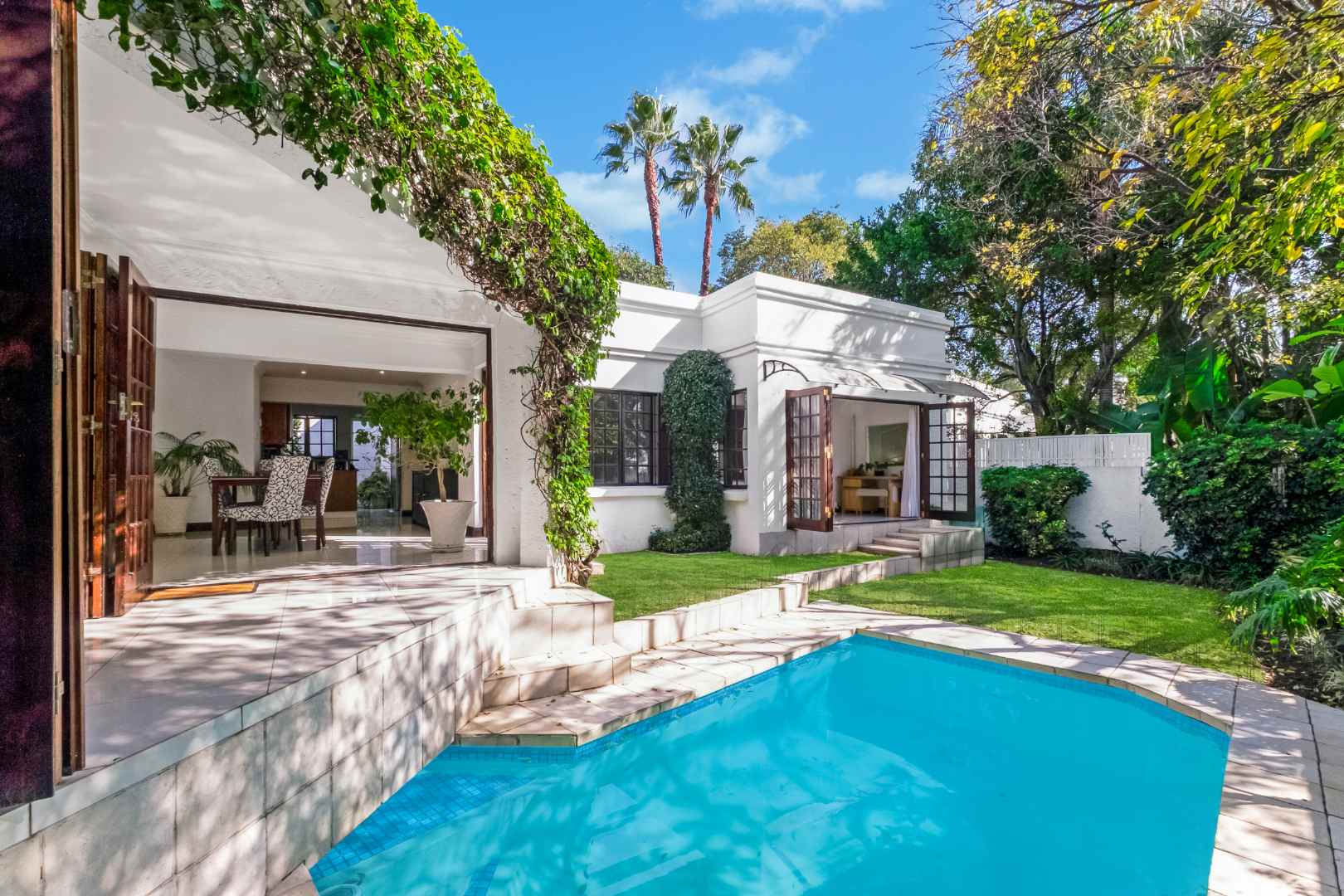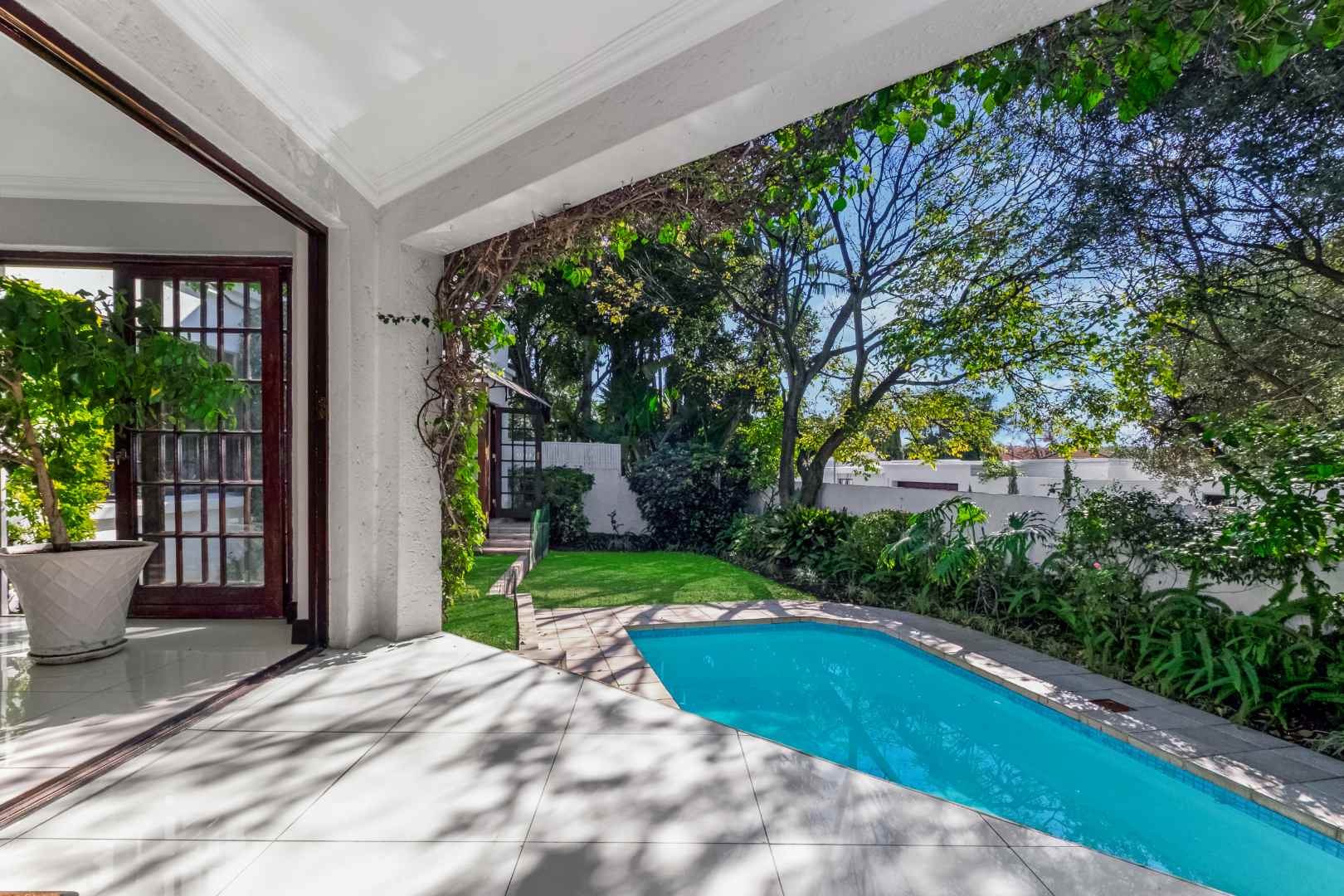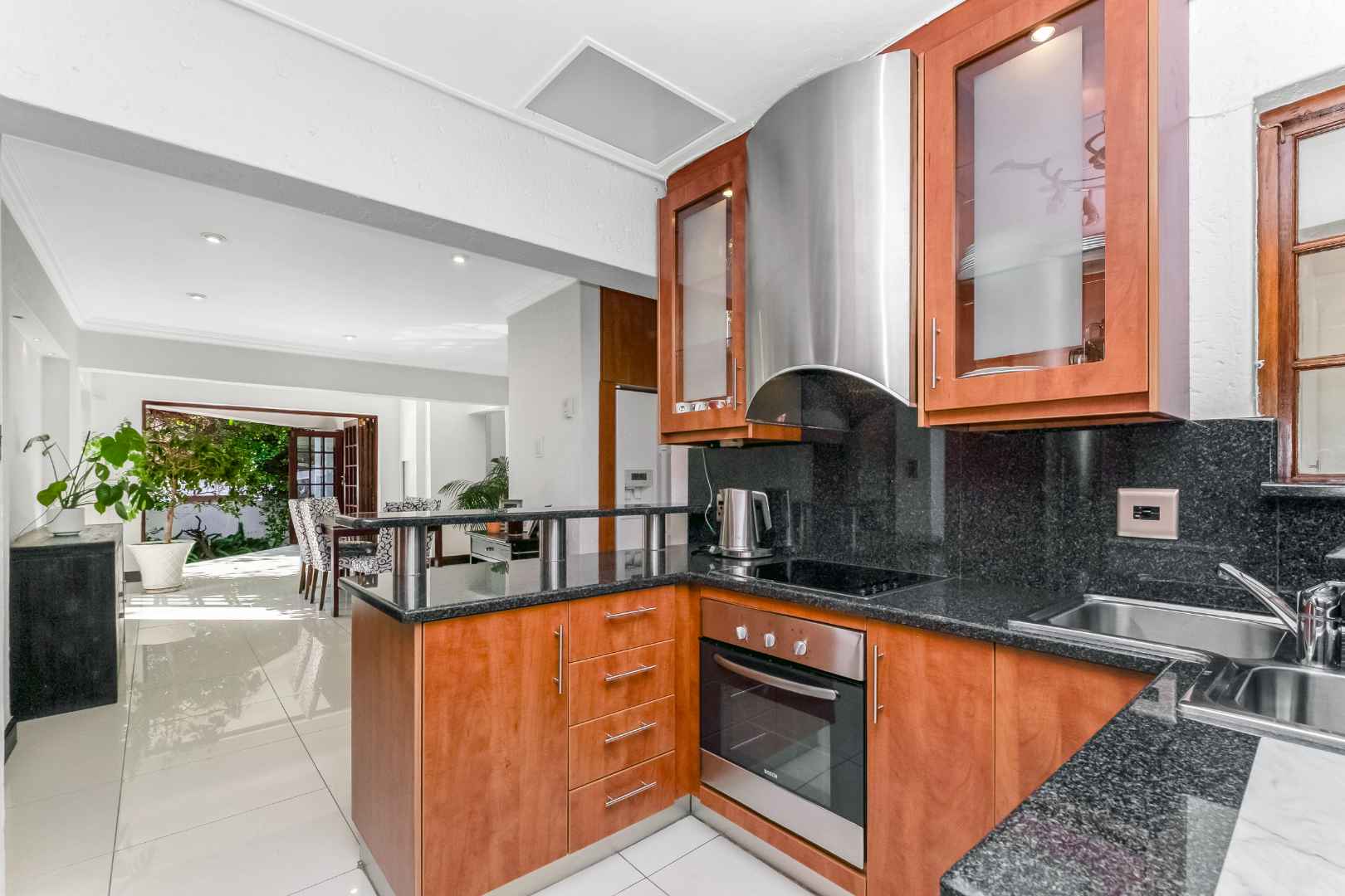 A welcoming entrance flows onto a sizeable open concept family lounge, formal lounge and dining area boasting big sliding g doors spilling onto private sections of the garden - these area’s enjoy an open patio, overlooking the peaceful wrap-around garden and sparkling swimming pool. The dining area is conveniently located adjacent to the open plan kitchen. This home is brilliantly flexible for both indoor and outdoor living and entertaining. Open concept granite countertops, a breakfast bar, electric stove and oven plus extractor fan, under counter space for 2 appliances, a double door fridge space, separate laundry plus ample built-in cupboards.