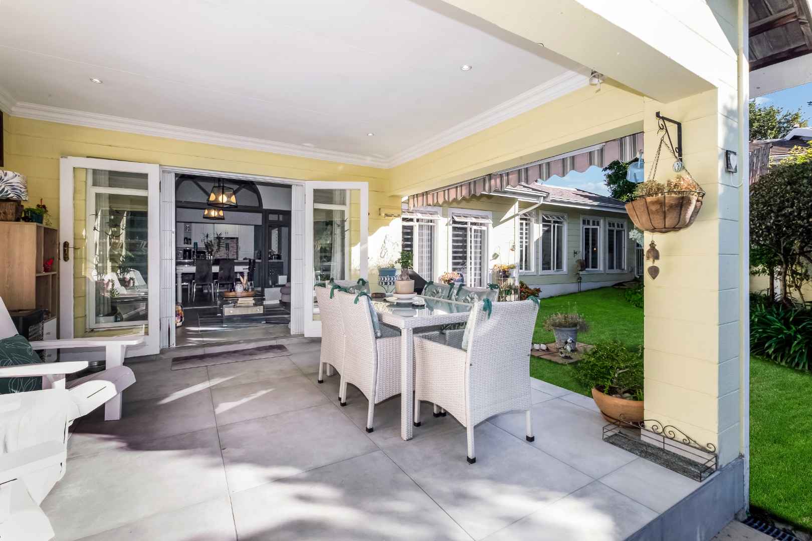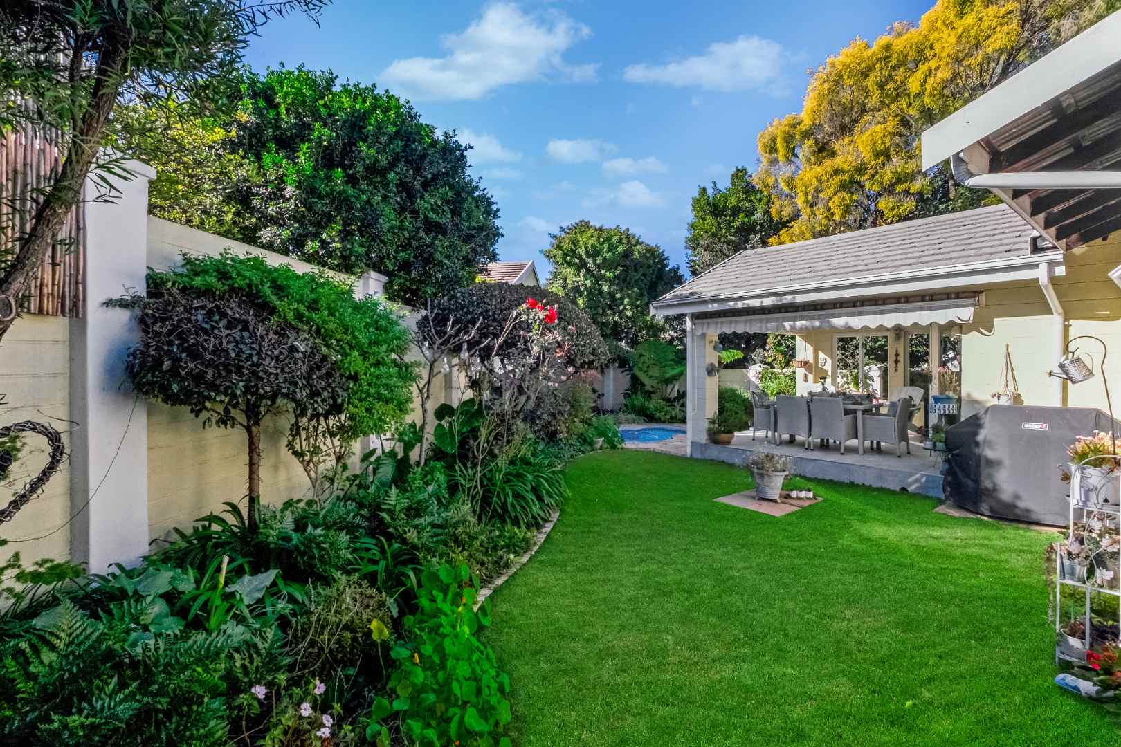 Inviting entrance into this property gives you a feeling of a happy and homely space for your family. Open plan formal and family lounge with high ceilings and exposed wooden trusses, spills onto a covered patio overlooking the sparkling pool and private wrap around garden. Lovely dining area situated adjacent to the newly renovated cutting-edge kitchen, making entertaining a dream. Open plan modern kitchen with gorgeous countertops, gas hob and electric oven plus extractor fan, breakfast bar under counter space for your appliances, double door fridge space, pantry cupboards, plus ample built-in cupboards space.