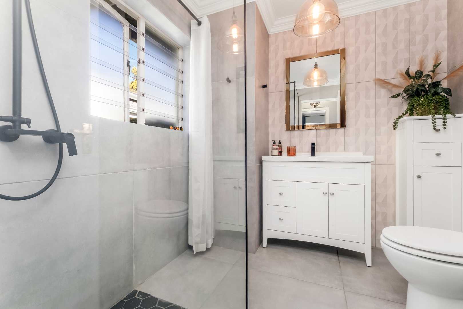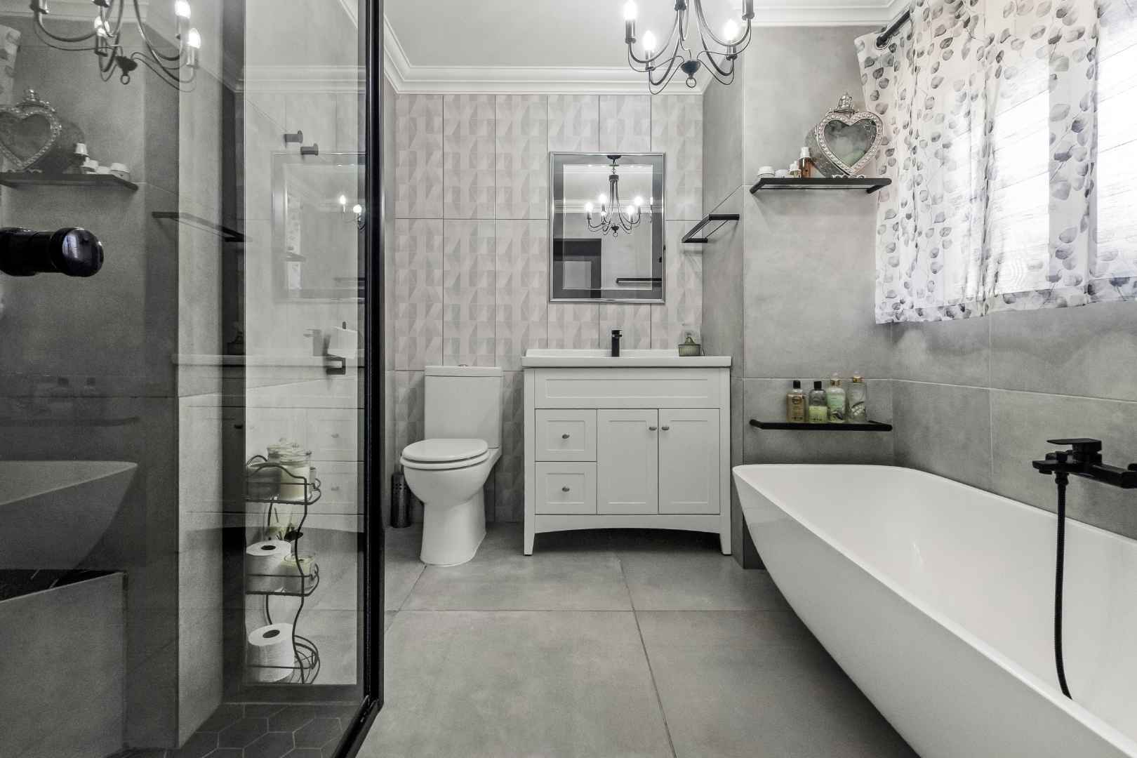 3 Delightful sun-filled tiled bedrooms and 2 modern bathrooms (MES). The master bedroom is a lovely space with loads of built-in cupboards space with an en-suite bathroom with double vanities. The 3rd bedroom can be utilized as a study/work from home space.