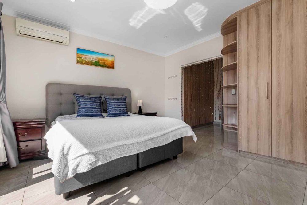 A welcoming entrance sets the tone for what’s to come – a residence that’s loved by the owners and this shines through immensely. Open plan formal lounge and dining area, both spilling onto the covered patio, overlooking the manicured garden- a great space to entertain all year round. Awe-inspiring open plan kitchen with granite countertops, breakfast bar, electric stove and oven and extractor fan, double door fridge space, under counter space to accommodate your appliances, a sizeable pantry cupboard, plus ample built-in cupboard space. The family lounge is a fabulous spot to relax and unwind. A quaint reading corner / study work from home space plus a guest cloakroom are tucked away and completes the downstairs floor plan.