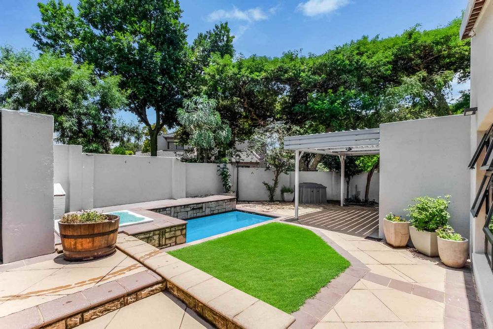 A welcoming entrance flows onto a sizeable open concept family lounge and dining area boasting a light and bright space - this area spills onto an open and covered patio, overlooking the peaceful wrap-around garden and sparkling swimming pool and jacuzzi. The dining area is conveniently located adjacent to the open plan kitchen. This home is brilliantly flexible for both indoor and outdoor living and entertaining. Open concept cutting-edge kitchen boasts Caesarstone countertops, SMEG gas hob with electric oven, under counter space for 2 appliances, a single door fridge space, plus ample built-in cupboards.