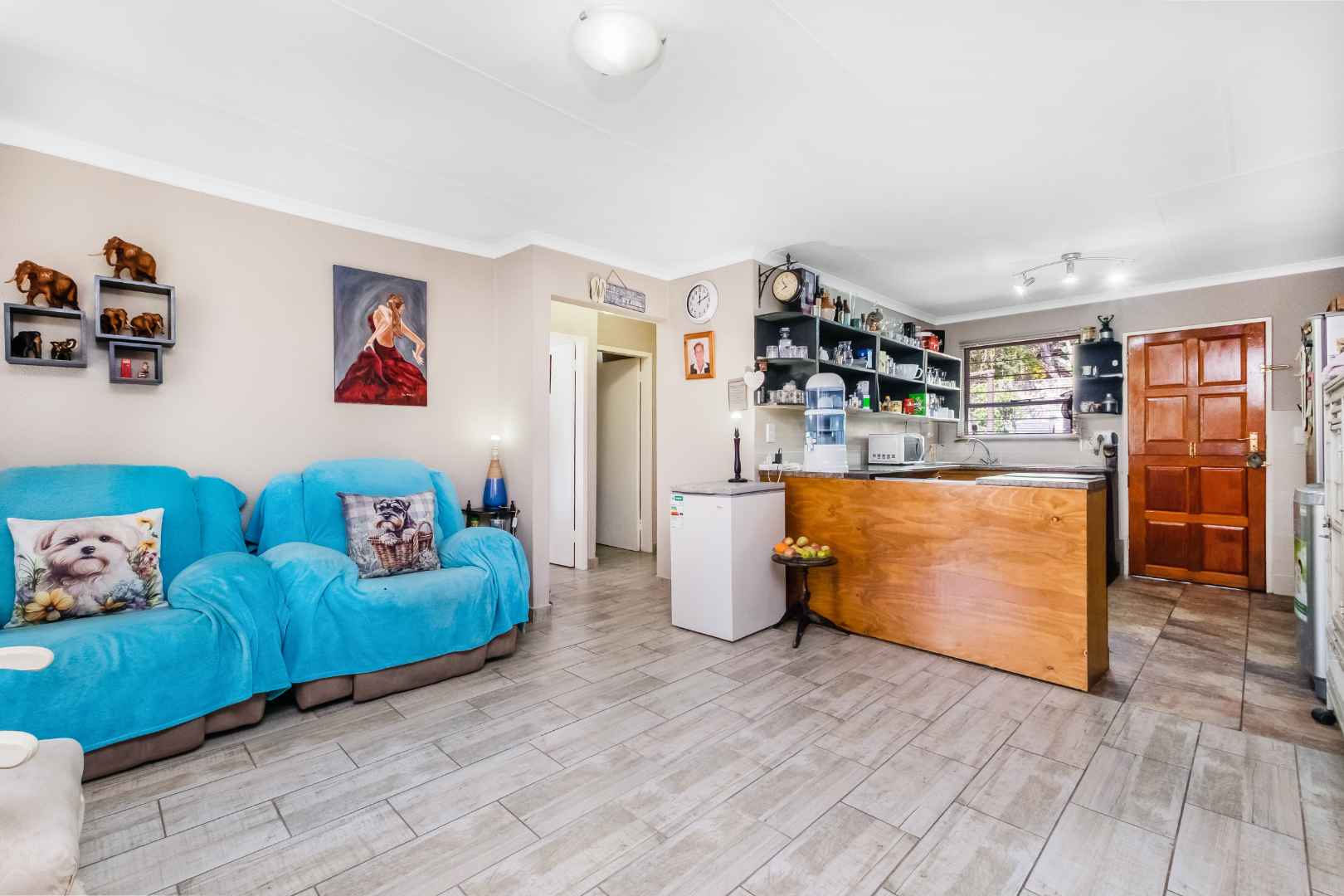 A welcoming entrance into the home flows onto the open concept lounge spilling onto a covered patio, overlooking the wrap around garden. The open plan kitchen boasts a gas hob with electric oven under counter space for your appliances, single door fridge space, double sink plus ample built-in cupboards. The kitchen opens onto a back garden section that’s a great size.