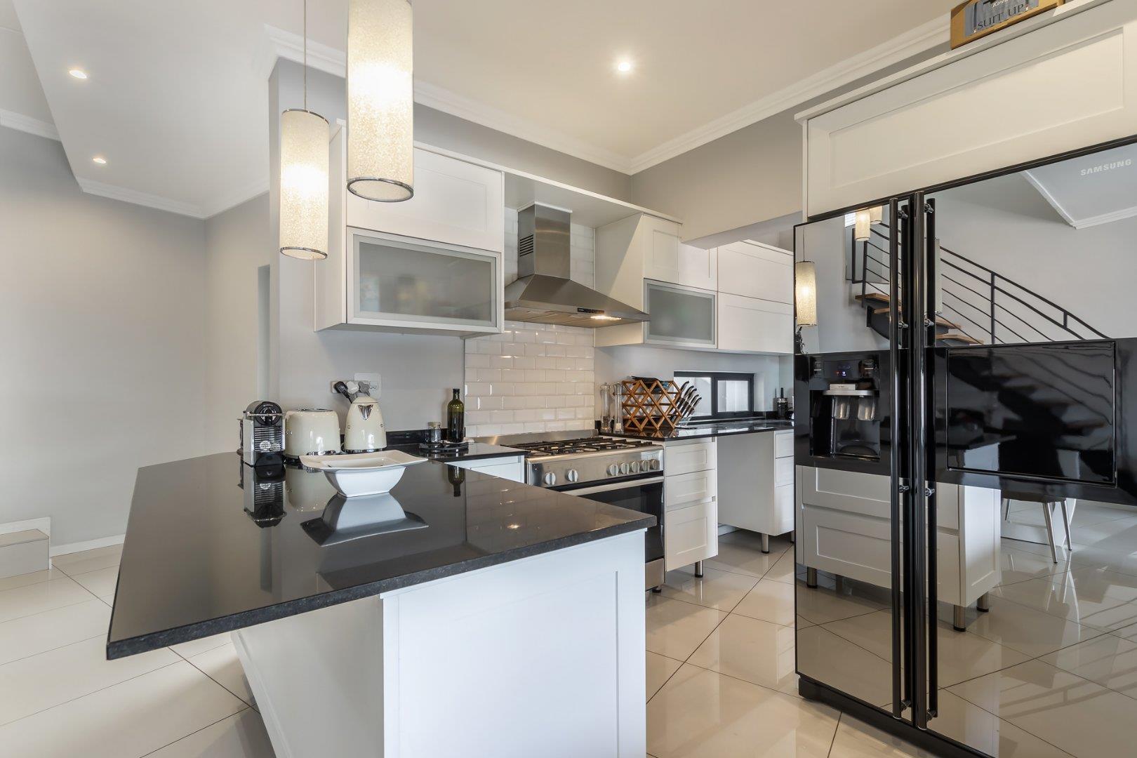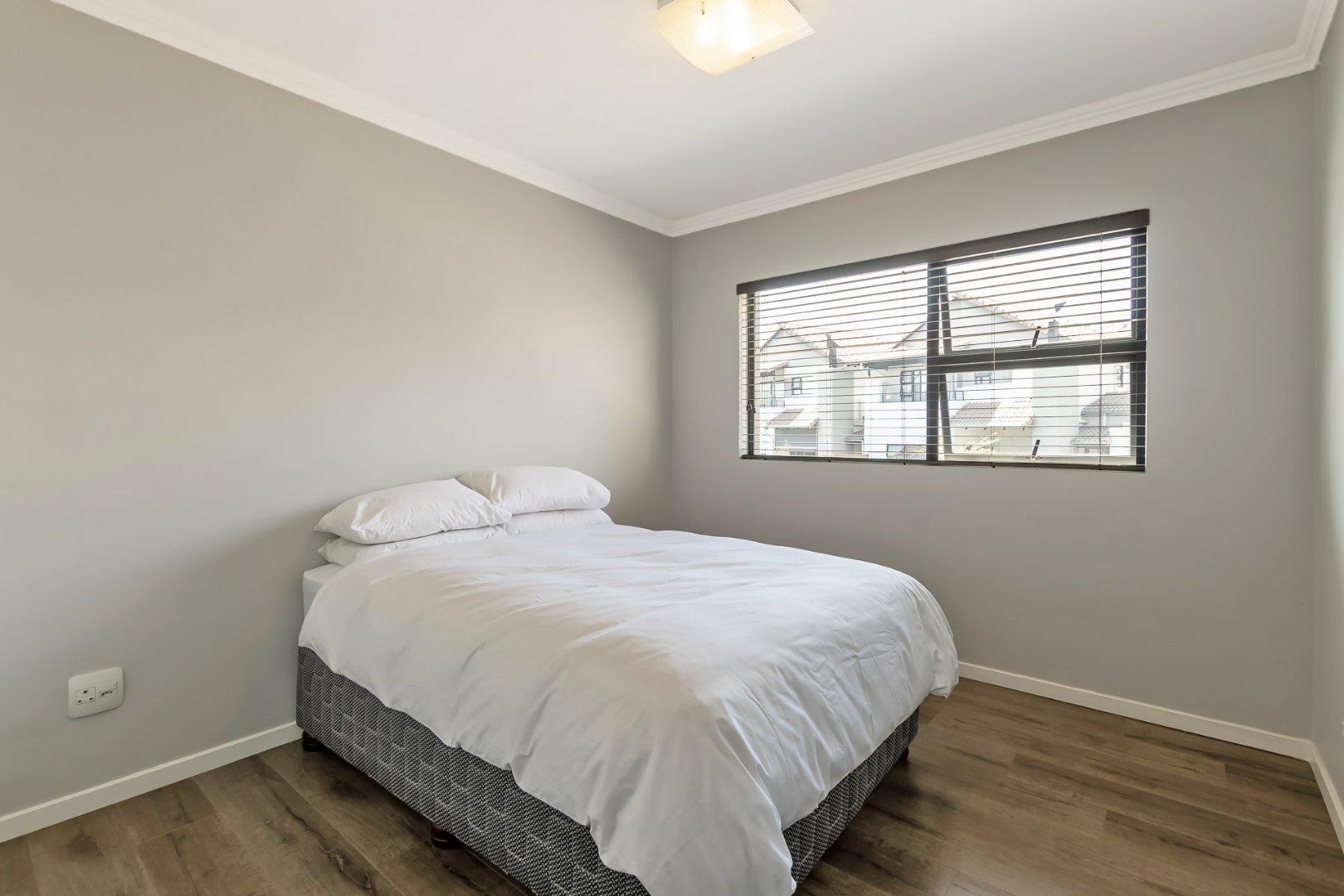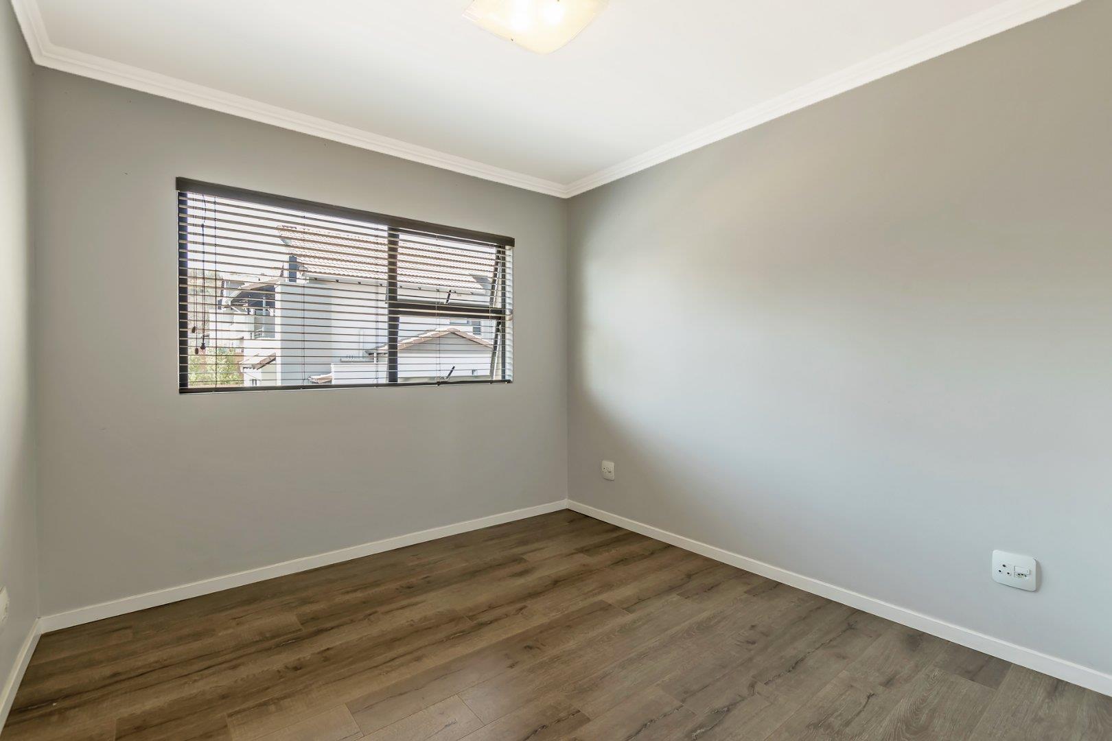 This freestanding cluster in the highly desirable complex of Villa Sao Pedro offers secure-estate living while still being able to enjoy a private home. The top floor boasts three spacious bedrooms, two sleek bathrooms and a work from home study space. The ground floor offers an open-plan living and dining area with a real heart of the home kitchen, and for the entertainers, a fully enclosed patio with a built-in gas braai that leads out onto a spacious wooden deck area. A real layer of luxury over an already charming and modern 3 bedroom unit of rare quality, and to top it all off; there is a 5KVA inverter that can power the home for 5 days, American shutters throughout as well as a gas braai, gas stove and gas geysers so load shedding won't be a problem and finally a double garage with additional storage space.