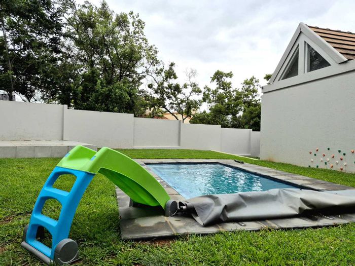 Perfect for young families in Fourways Gardens estate, this single-storey home offers indoor-outdoor living with covered patio, established garden and pool, granite kitchen, four bedrooms, double garage.