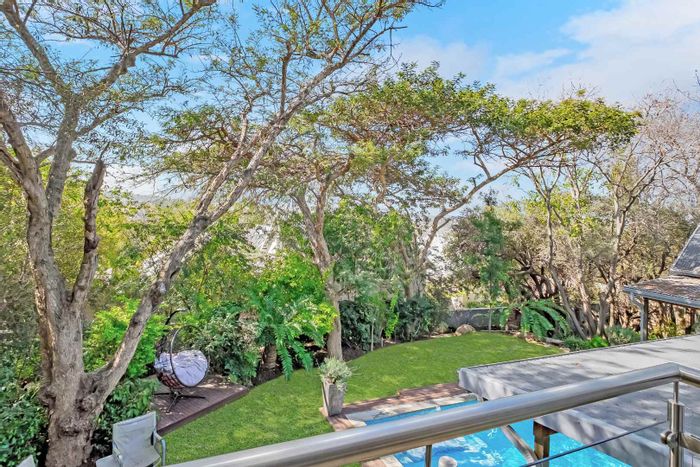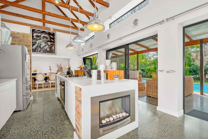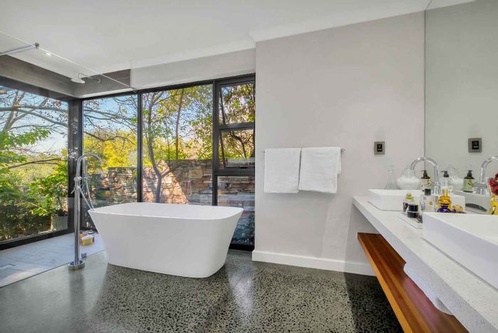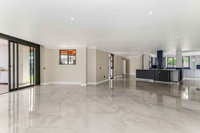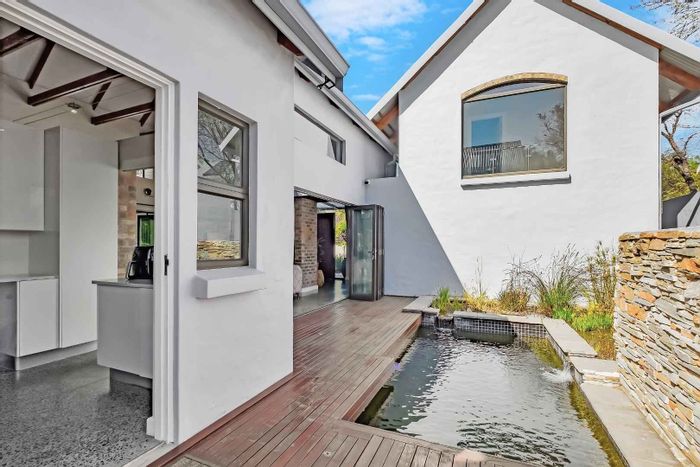 Entertainer's single-level retreat in quiet Dainfern Golf Estate with seamless indoor-outdoor flow, covered entertainment pagoda with heated Jacuzzi and fire-pit. Four bedrooms, three baths, double garage.