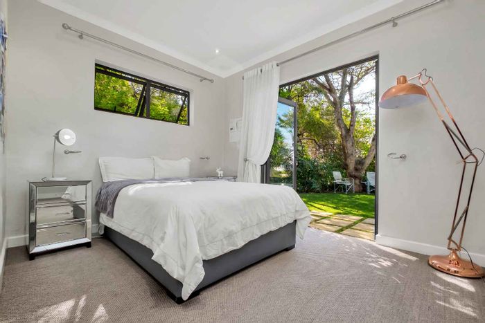 Entertainer's dream in secure Dainfern Valley, elevated on a corner stand with private putting green; light-filled living flows to covered patio and modern kitchen — 3 beds, 2.5 baths, double garage.