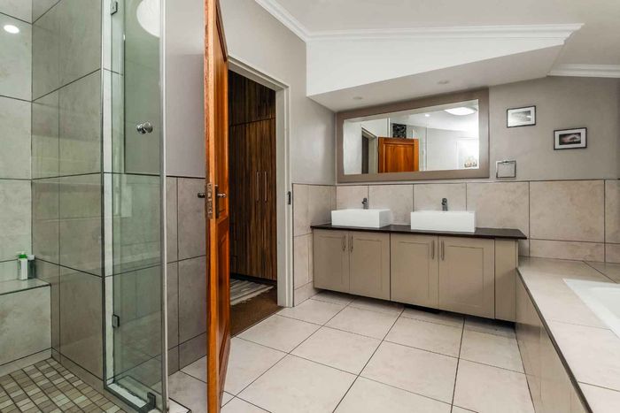 Entertainer's retreat in Cedar Creek estate on a cul-de-sac beside a greenbelt, featuring a fully enclosed braai patio with pizza oven and pool. Five bedrooms, 5.5 baths, double garage.